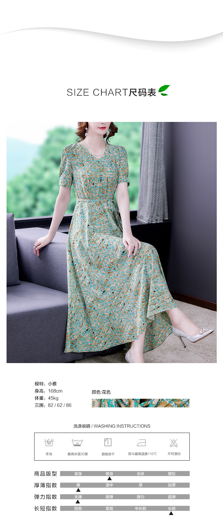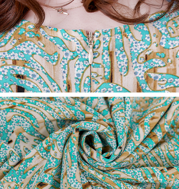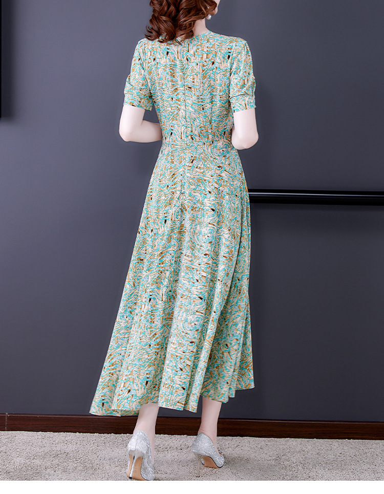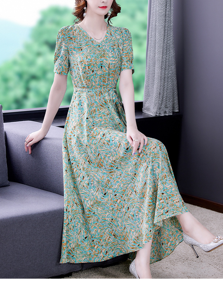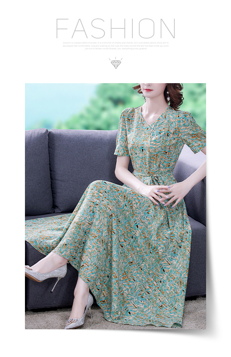 时尚女神范V领收腰显瘦大摆印花雪纺连衣裙AHM-mmjp8267