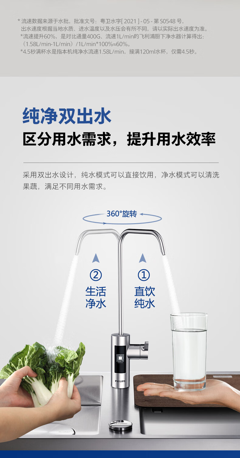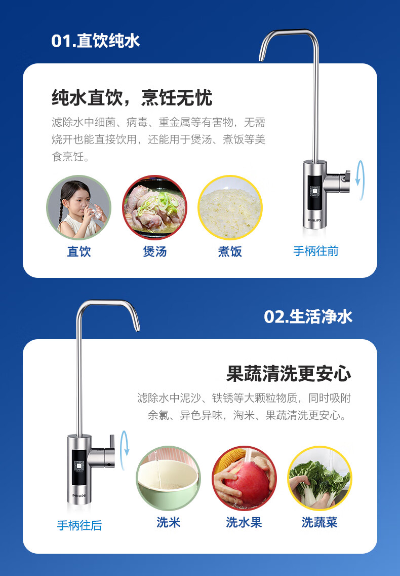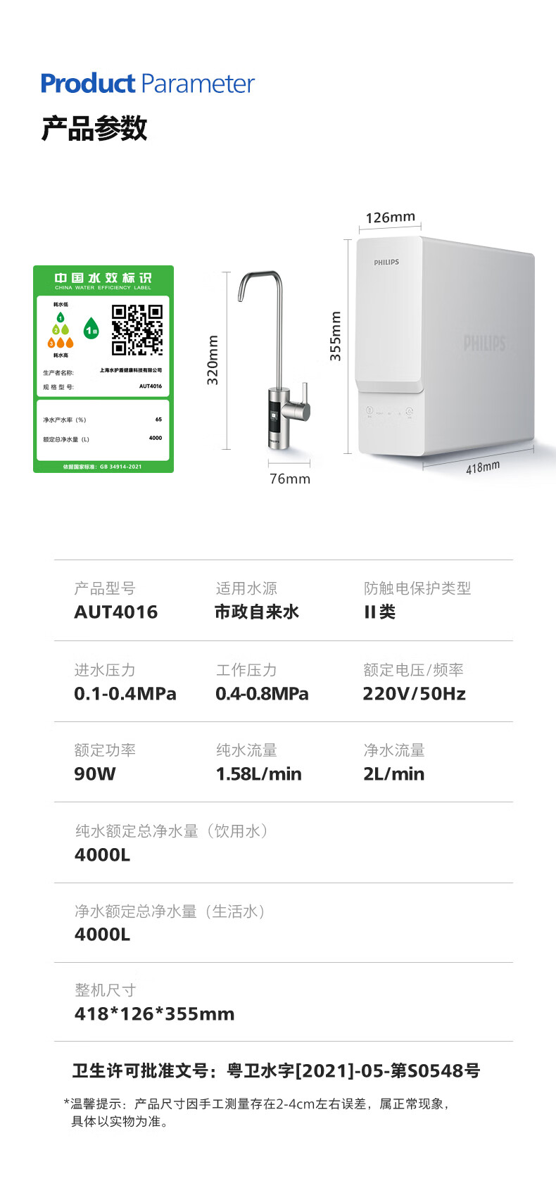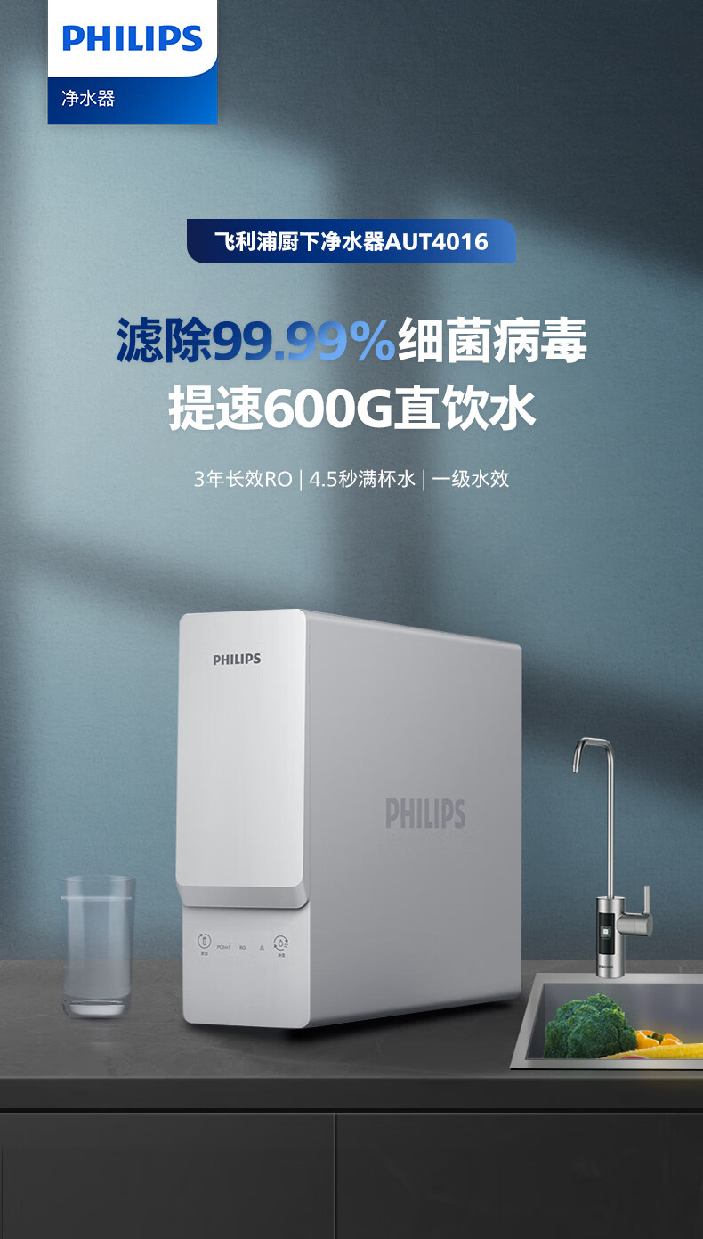 飞利浦(PHILIPS)家用净水器 RO反渗透净水机 AUT4016