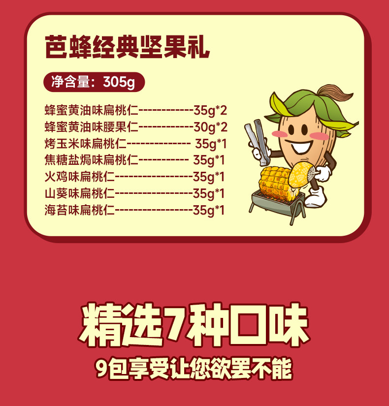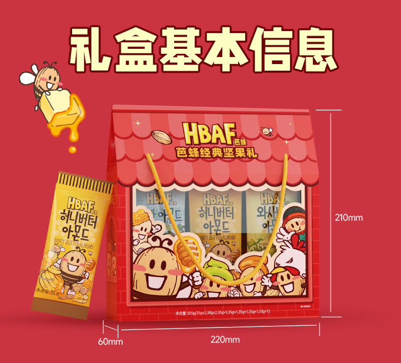 韩国芭蜂坚果经典礼盒305g/151096 经典7种口味大颗坚果饱满酥脆