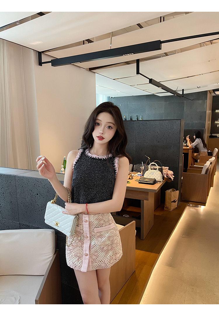 清仓捡漏 LINCHAOZHANG【blackpin】七夕胶囊款LH240095 小香挂脖 LQ240363 半裙时尚套装