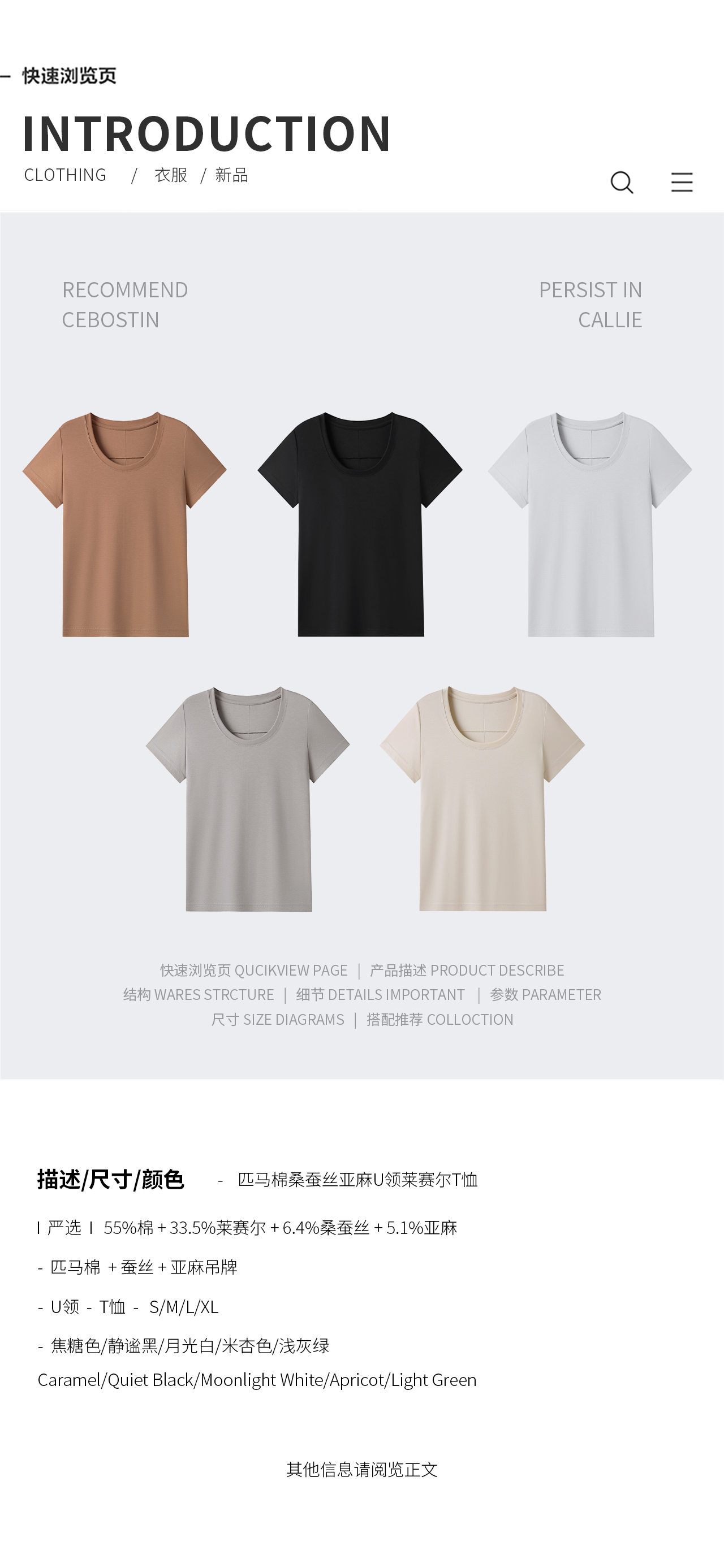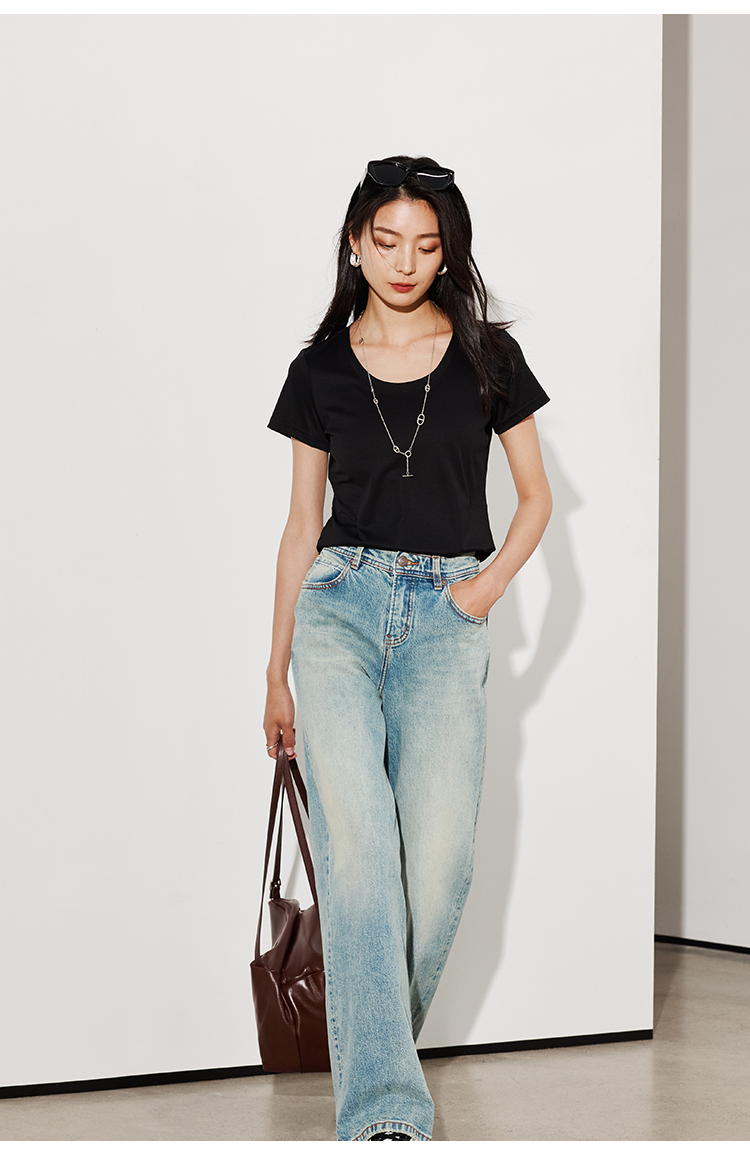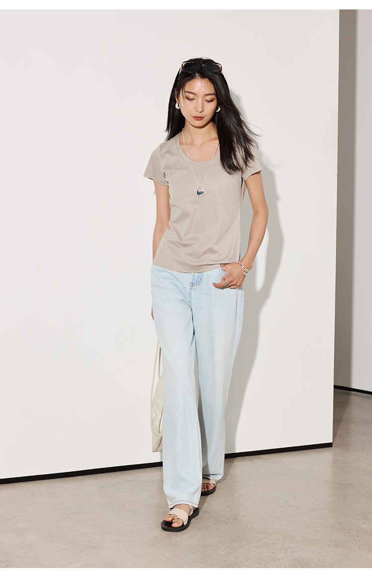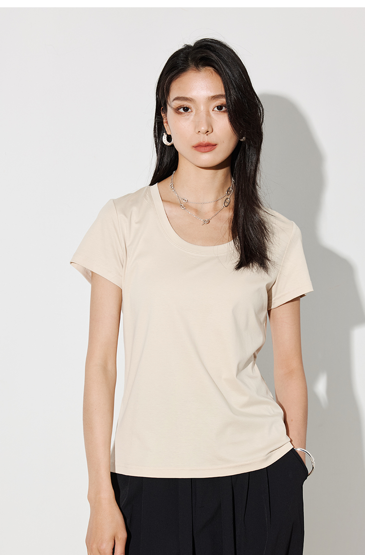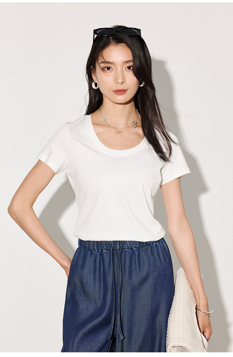 LILYMOON【匹马棉U领T】桑蚕丝亚麻莱赛尔T恤