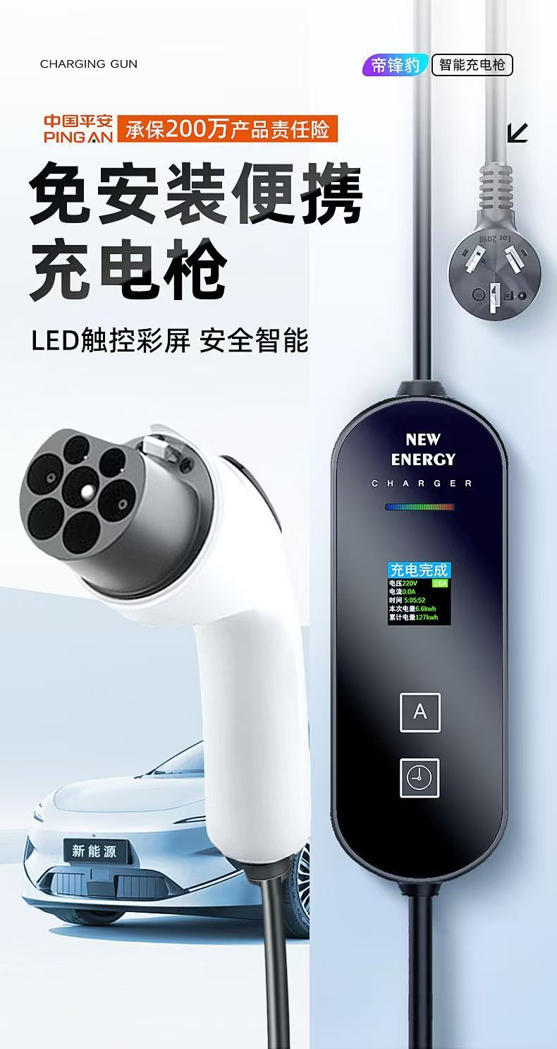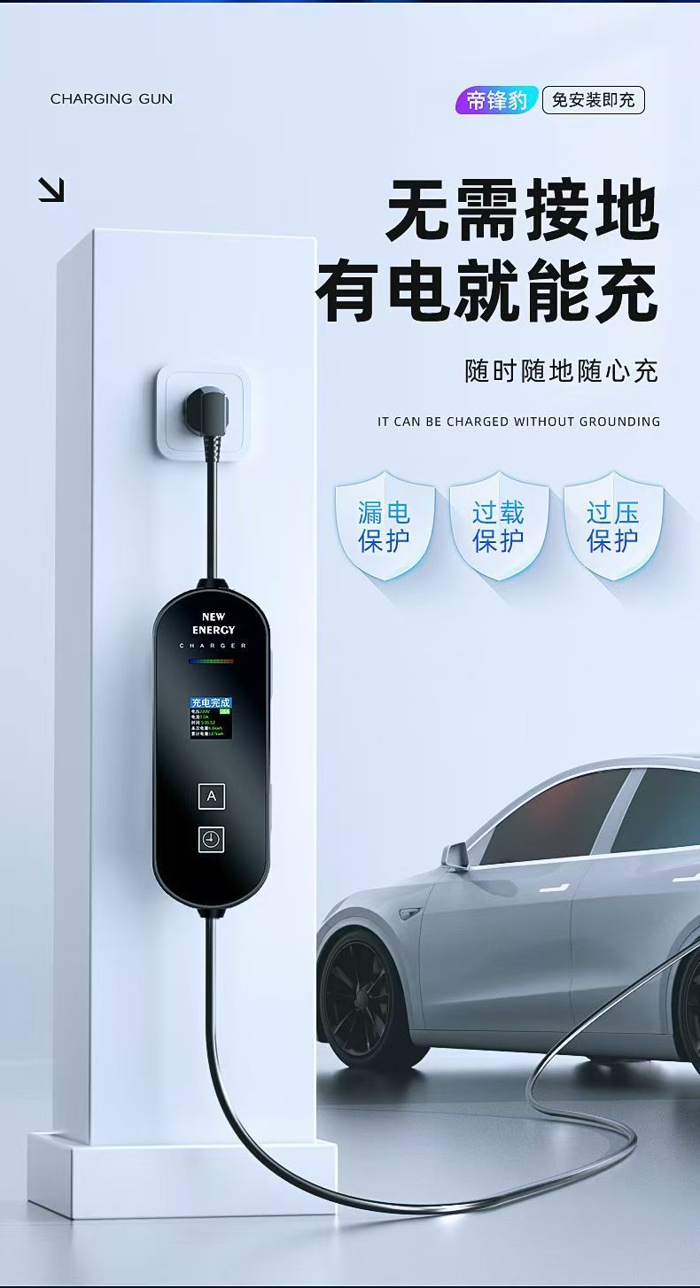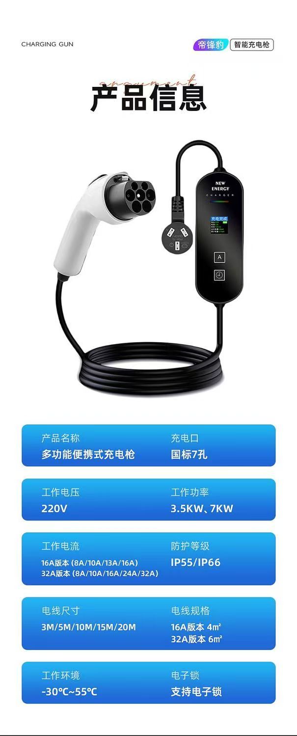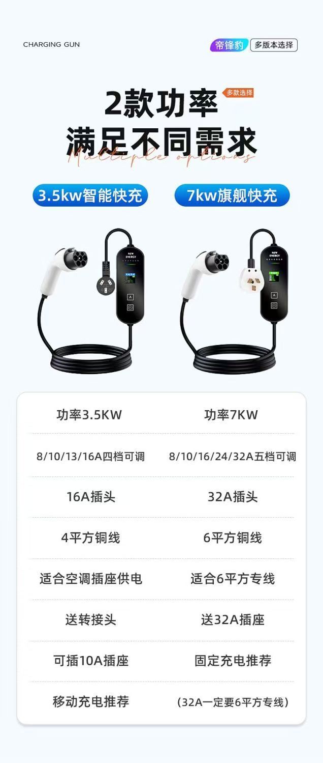 新能源电动汽车充电枪家用便携式随车充电器3.5kw/7KW快充免接地