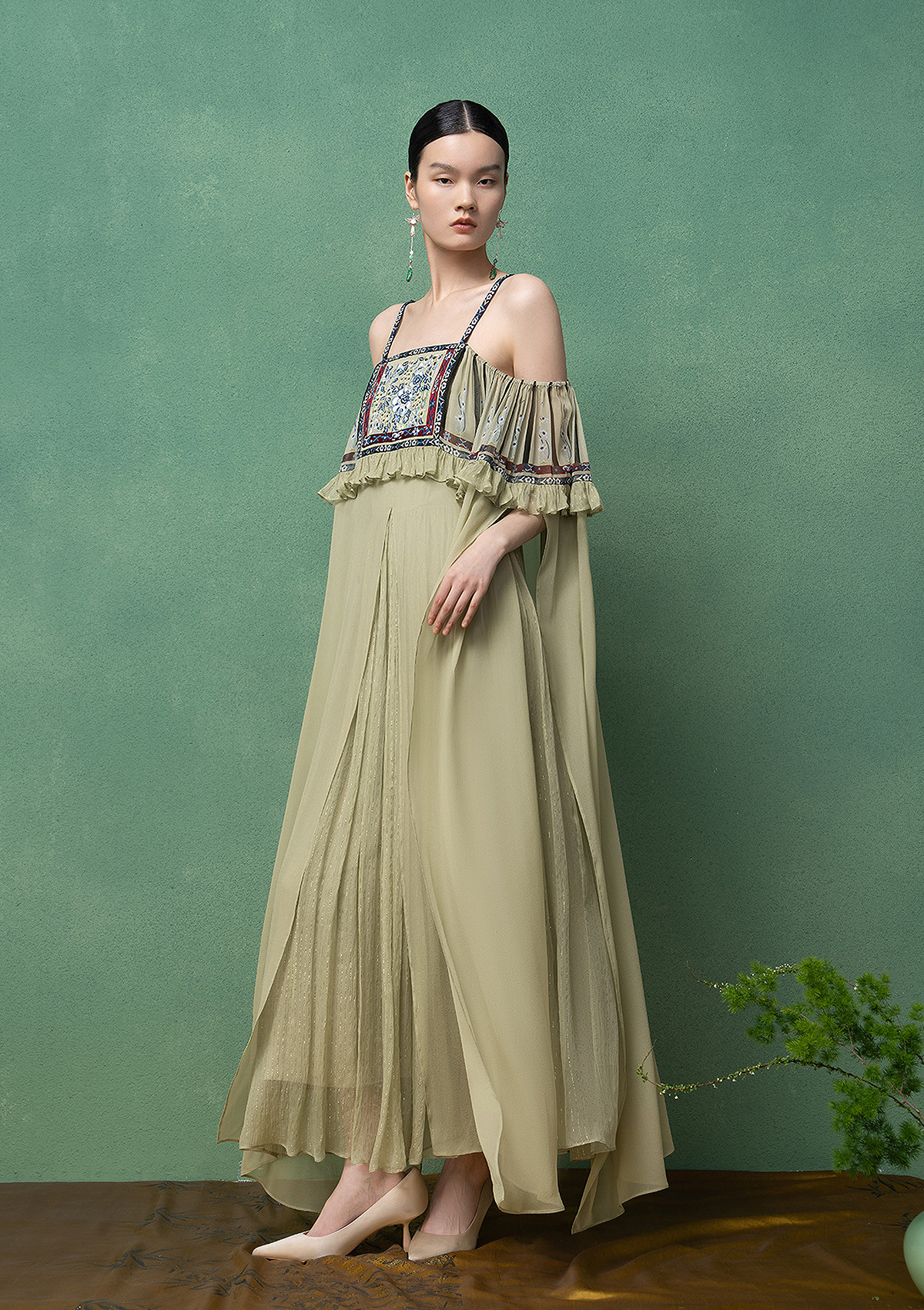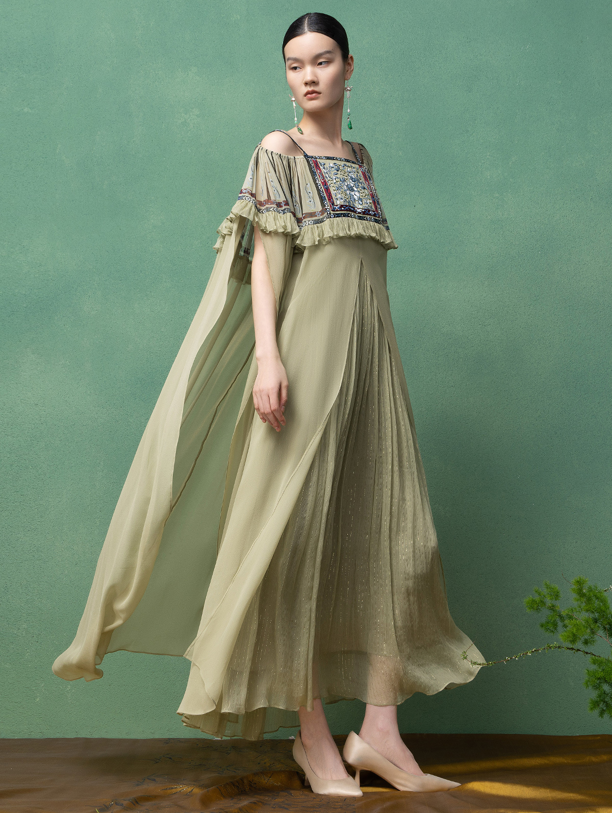 【林栖设计小店】马面裙元素吊带连衣裙真丝绣花优雅2025夏季新品长裙女1952125