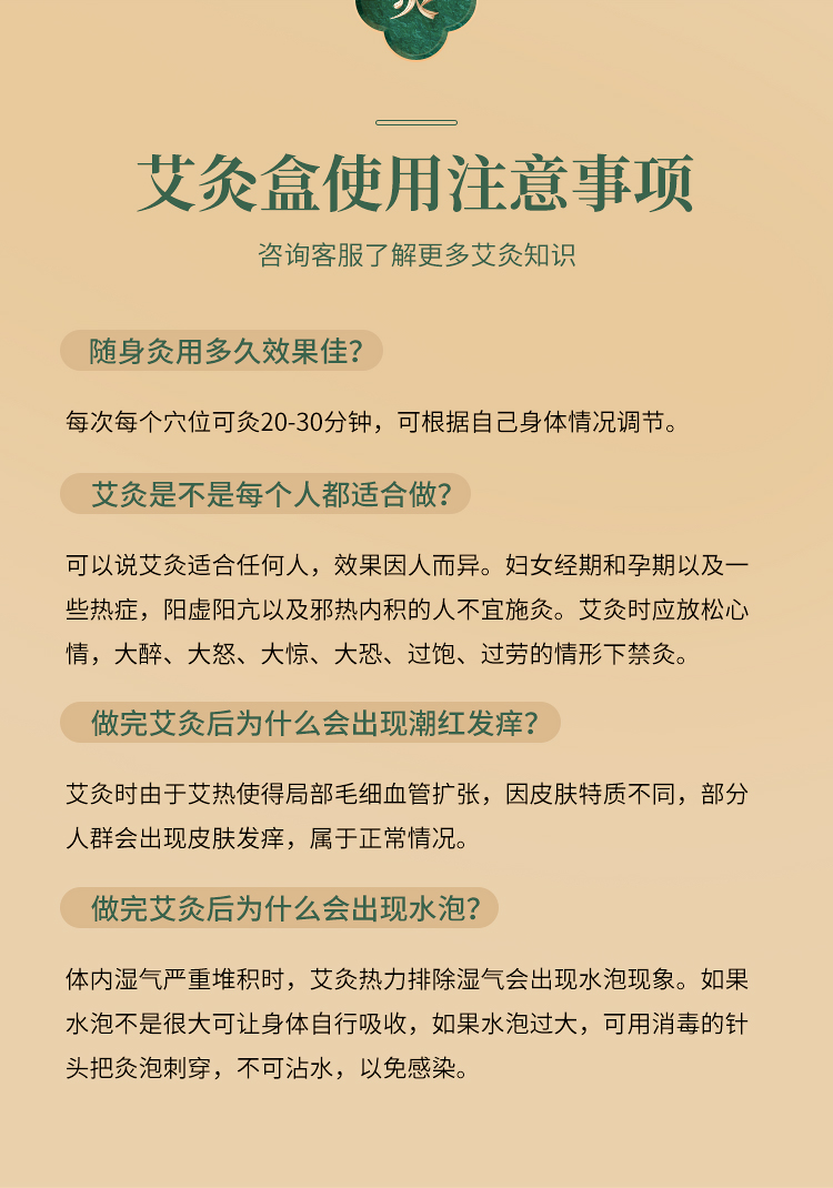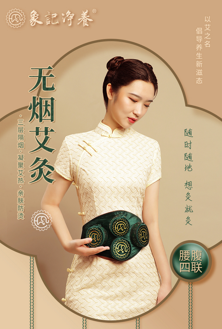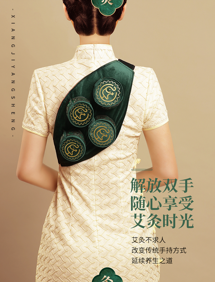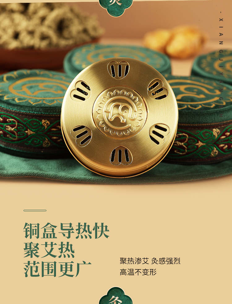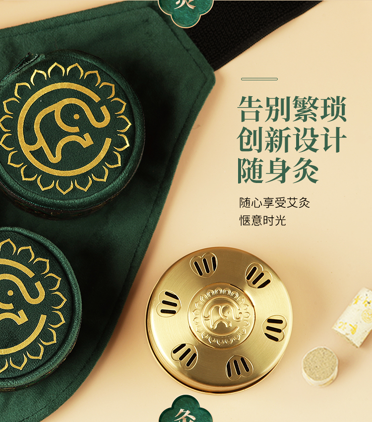 分销【腰腹四联】艾灸盒/套装--54柱艾柱+铜盒+布套+穴位图/无烟艾灸套装/随身灸