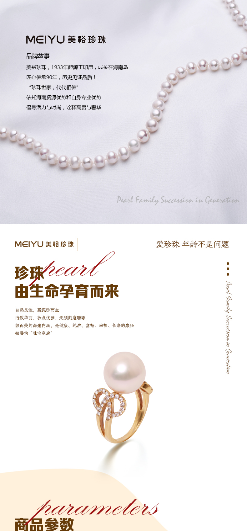 - 珍珠世家,代代相传。美裕珍珠,1933年起源于印尼,成长于海南岛。依托海南资源优势和自身专业优势,以经营南珠、南洋珠为主,专注于珍珠文化的挖掘和传播,把珍珠代表的爱意,永不间断地传承下去。