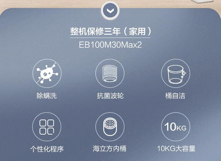 海尔 EB100M30Max2 10公斤除螨洗抗菌家用全自动波轮洗衣机