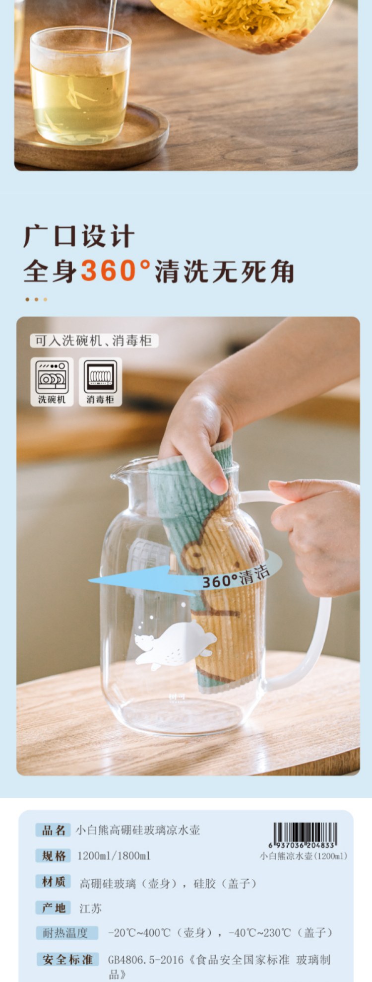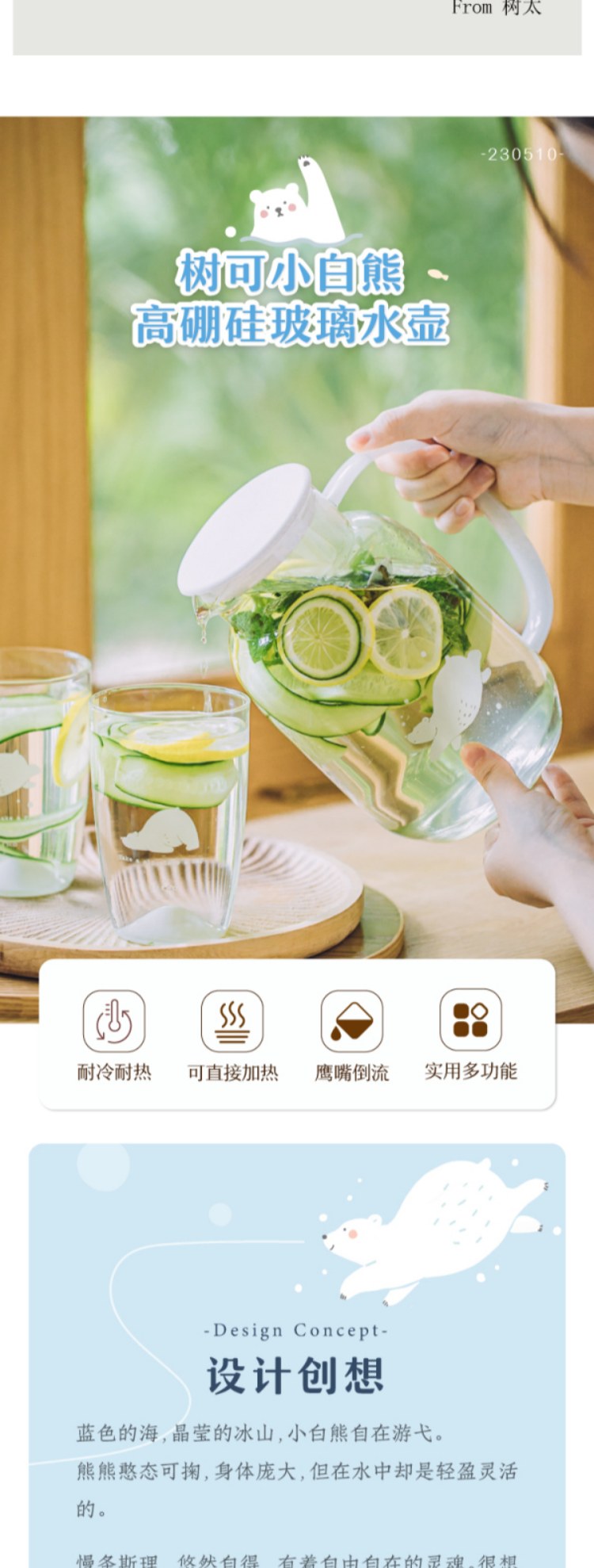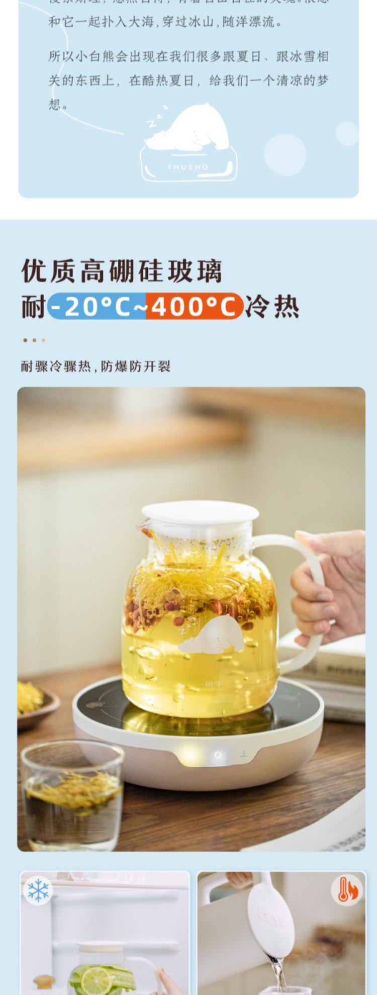 树可小白熊玻璃冷水壶家用凉水冰箱大容量水壶冷泡茶壶耐高温扎壶
