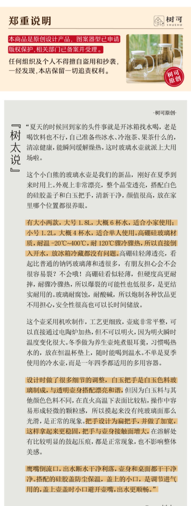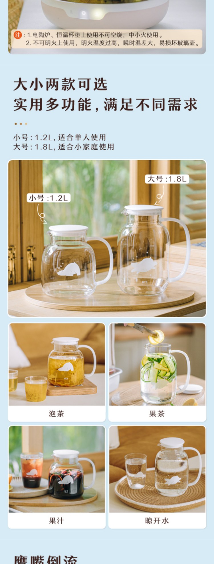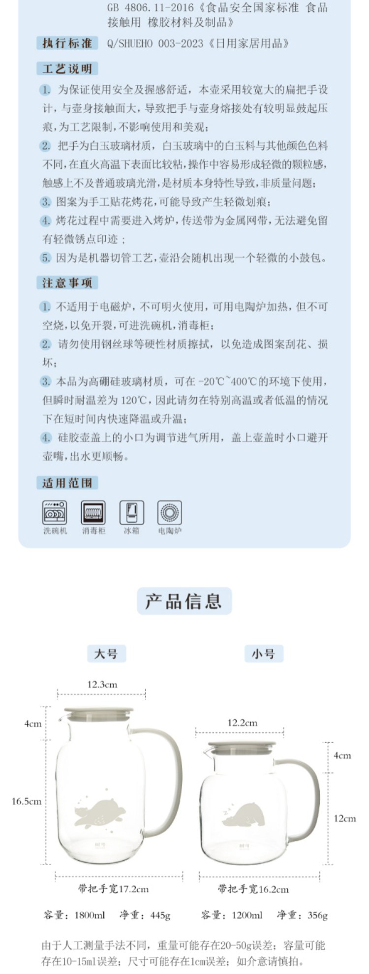 树可小白熊玻璃冷水壶家用凉水冰箱大容量水壶冷泡茶壶耐高温扎壶