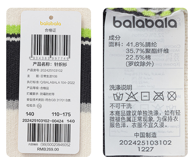 【商场同款】巴拉巴拉童装男童毛衫儿童2025冬新款毛衣条纹针织衫