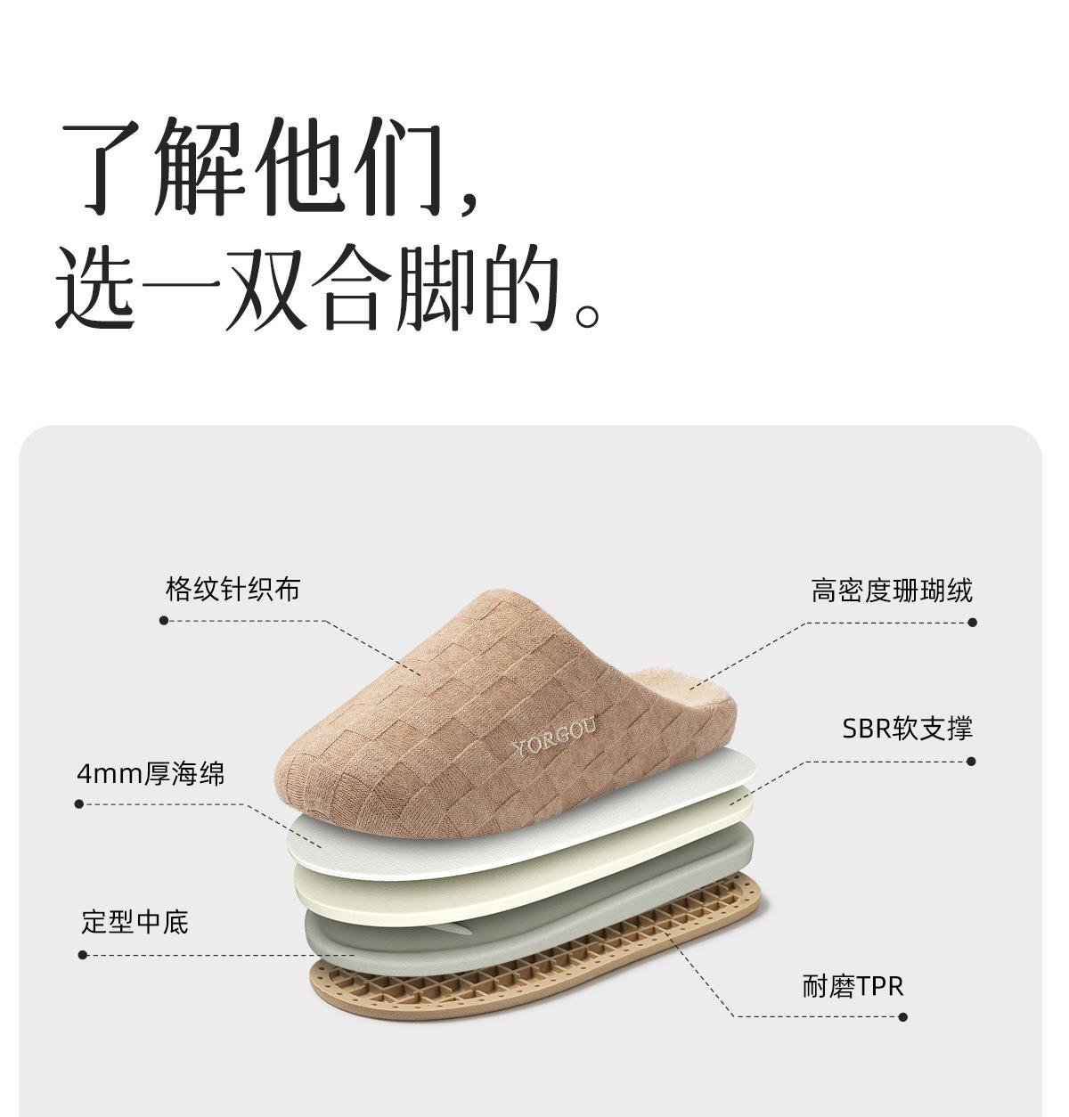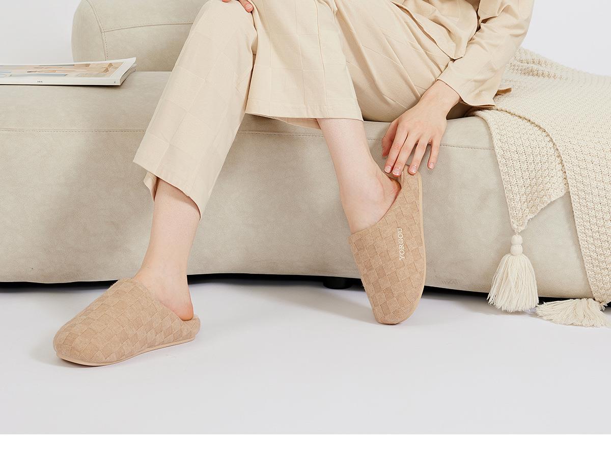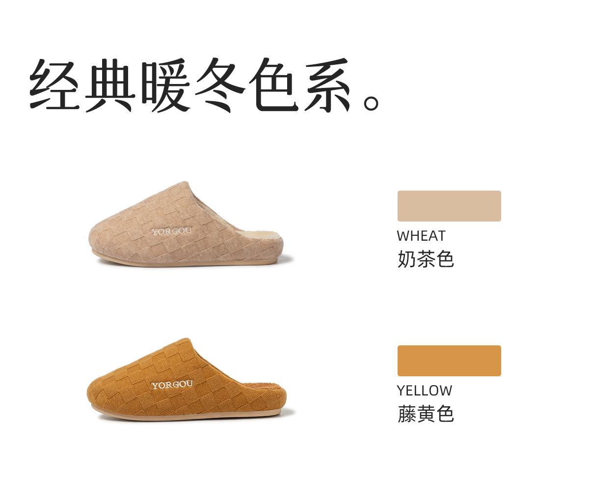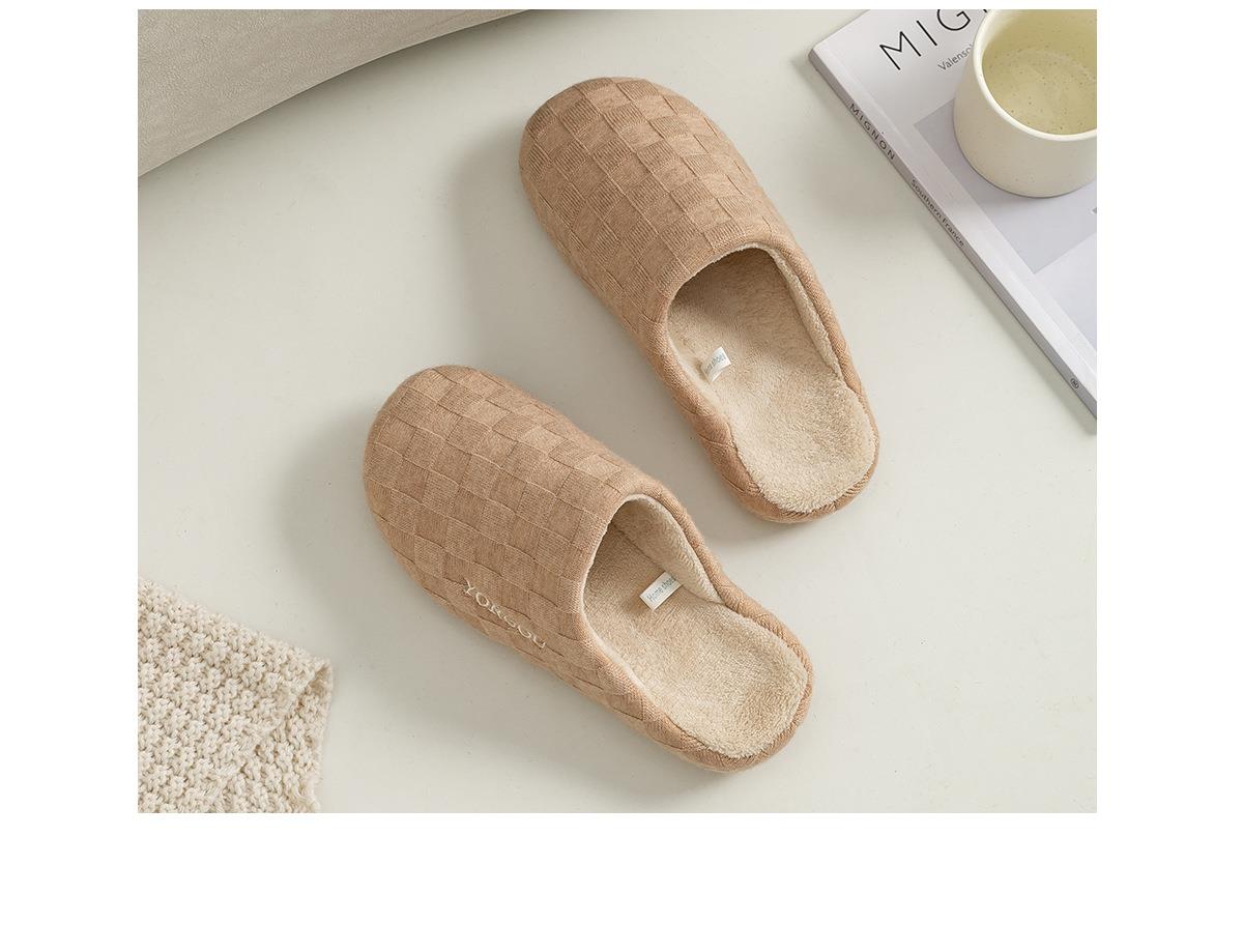 远港2025新款棋盘格棉拖鞋女秋冬季保暖加绒室内居家用地板拖鞋男