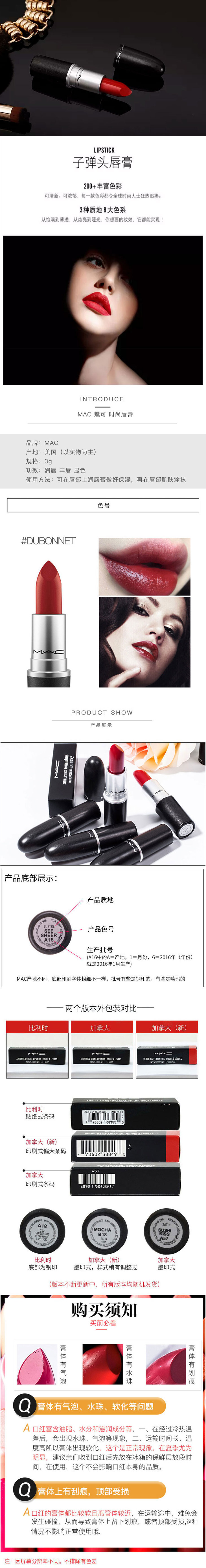 美国MAC魅可子弹头口红108#DUBONNET牛血红 版本随机发货