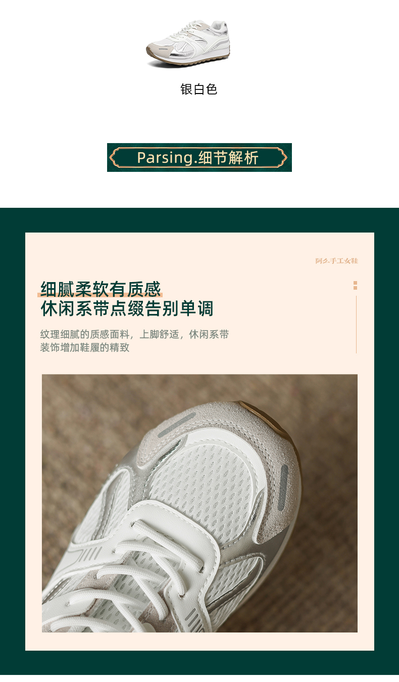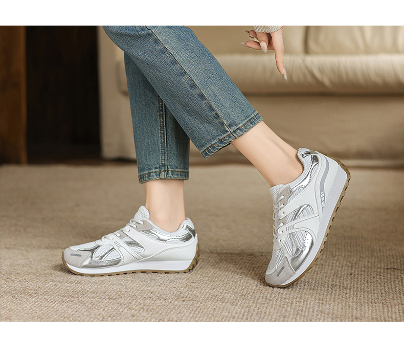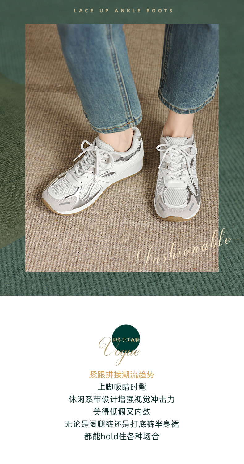 【大码女鞋】阿么手工女鞋银色运动鞋2025秋网面透气阿甘鞋女款3CM