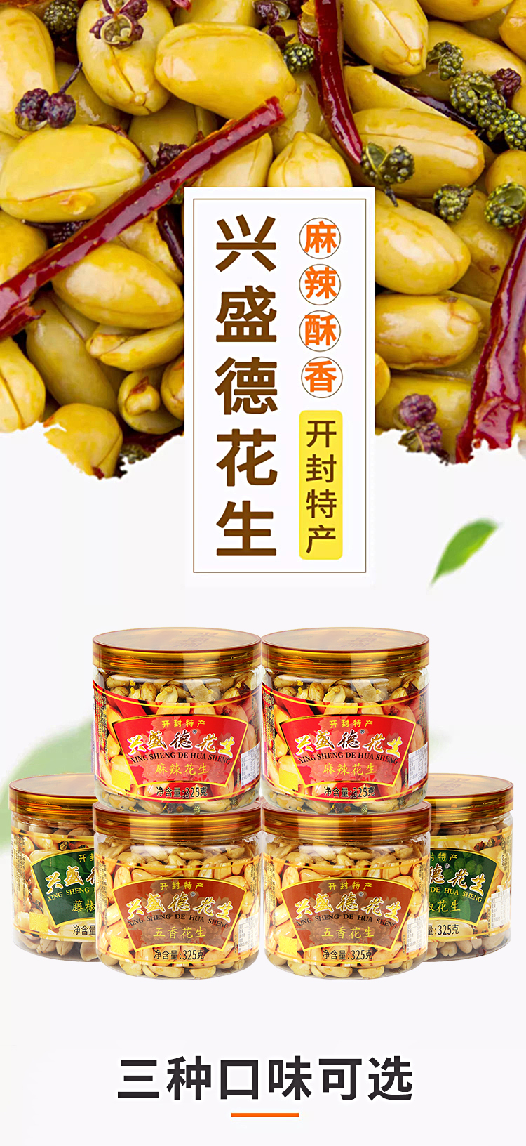 兴盛德麻辣花生325g*6桶m麻辣五香藤椒开封礼物特产A