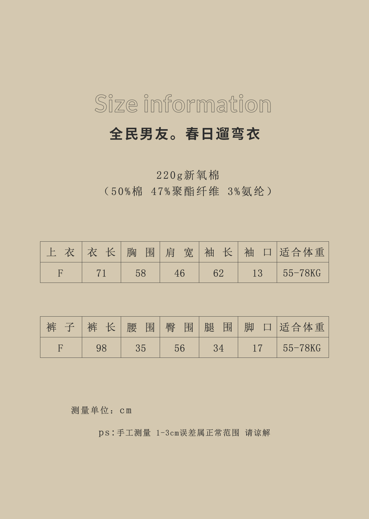 {爆款捡漏}【YW】无忧购杜妮尔自带懒宅属性休闲通勤全民情侣春日遛弯衣D-2316-7(预售15天发货)25年清仓捡漏