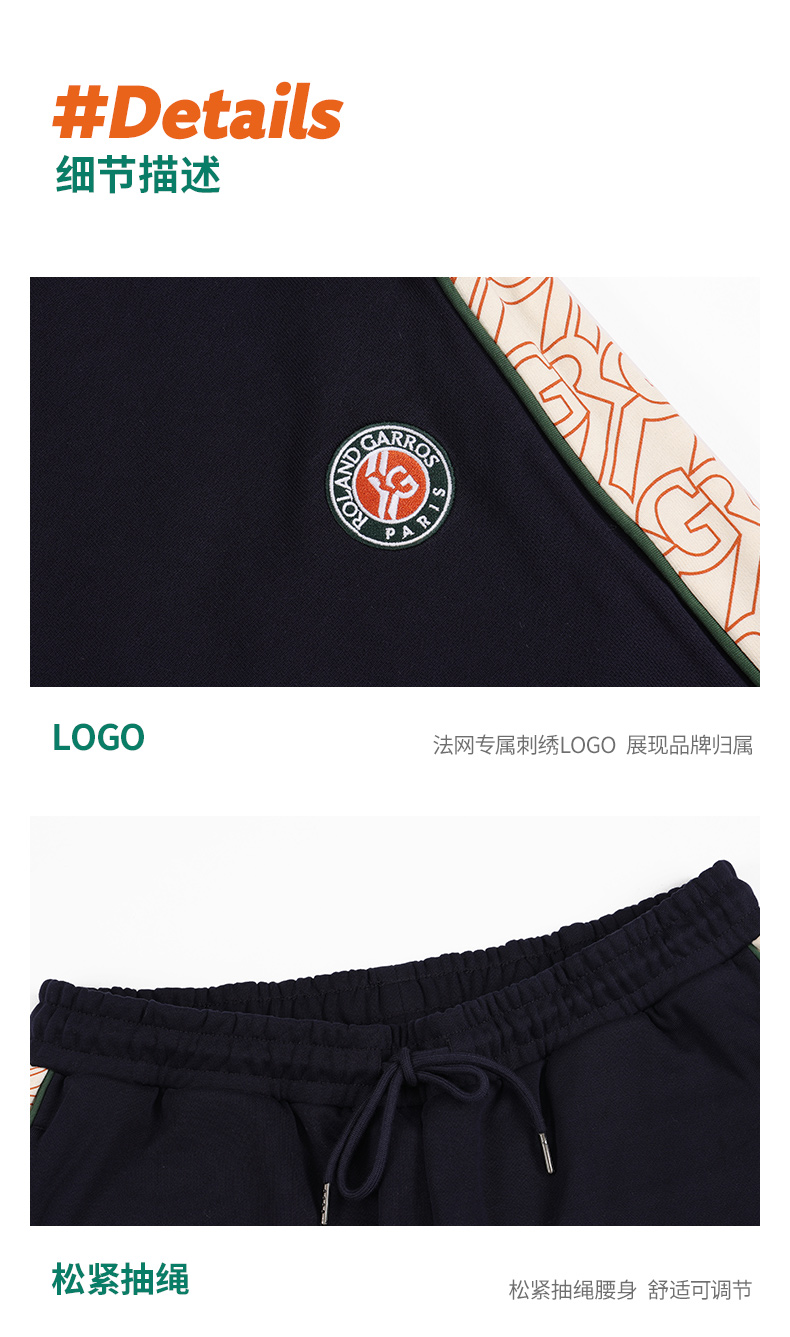 罗兰加洛斯法网休闲运动裤男秋冬季新款直筒加绒加厚卫裤网球套装