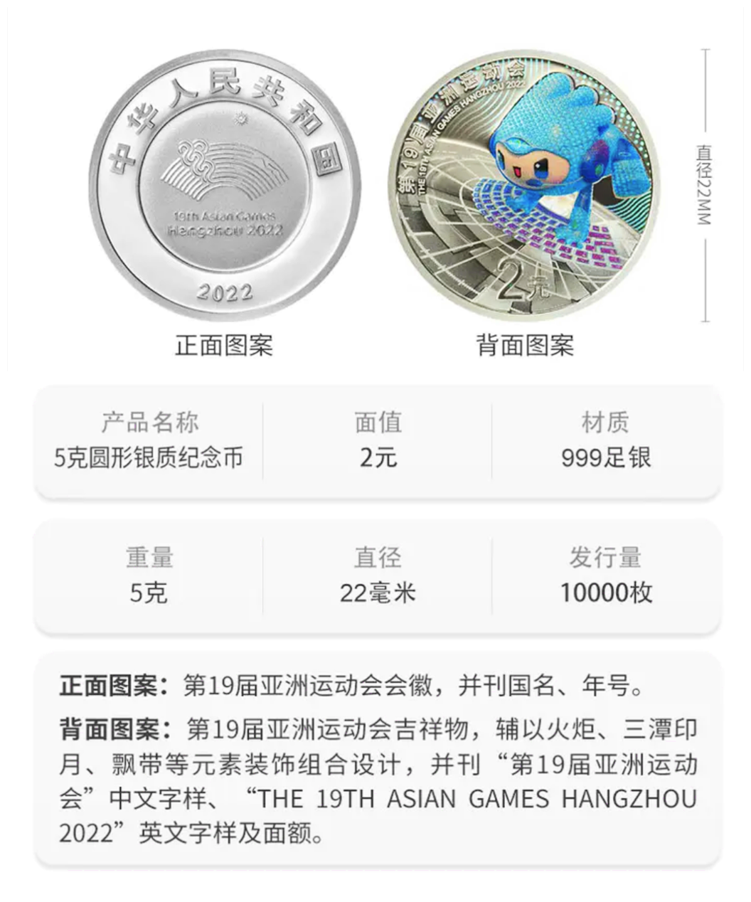 2022年亚运会5克银币