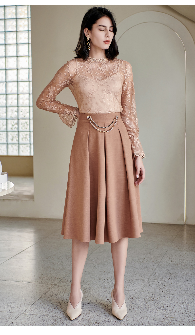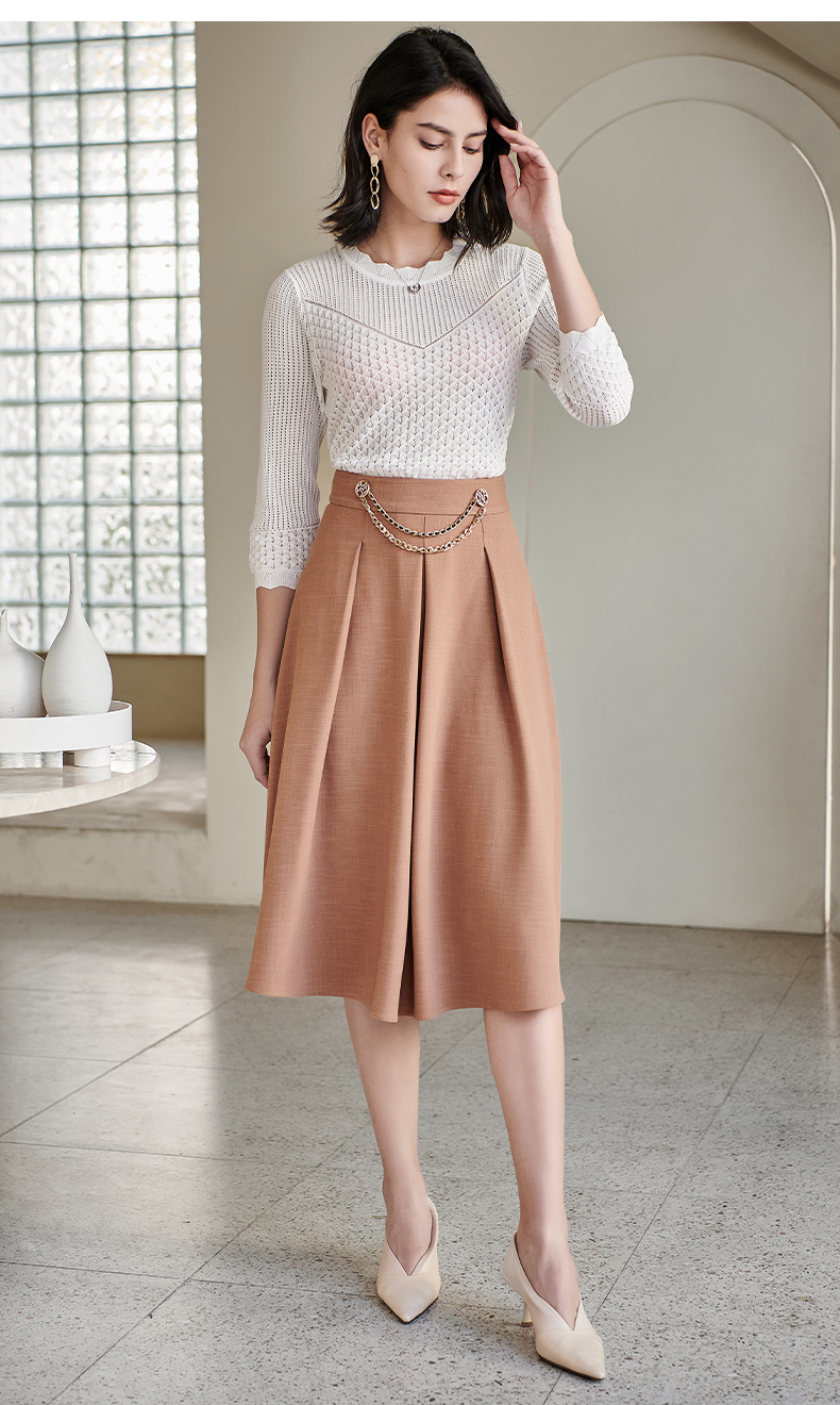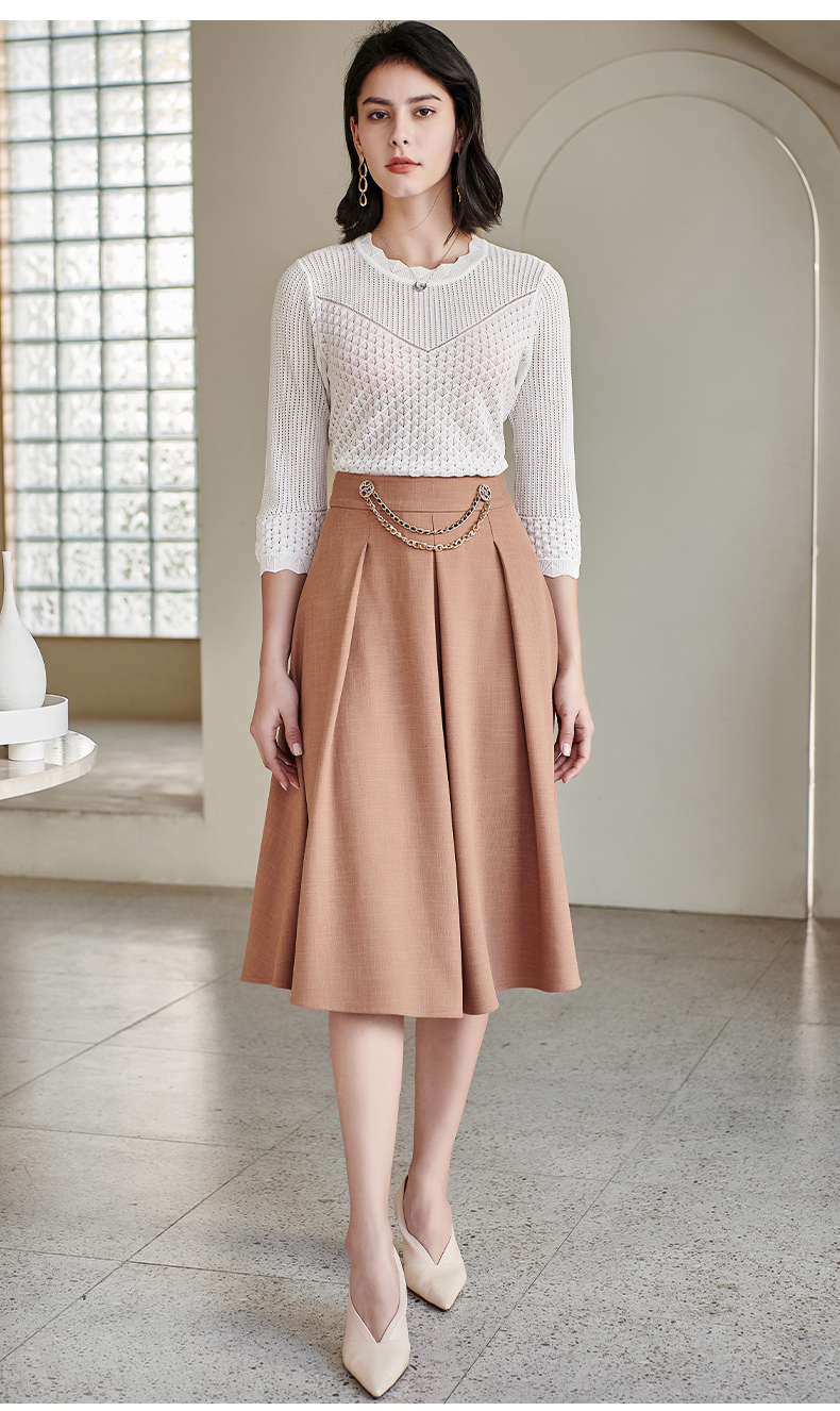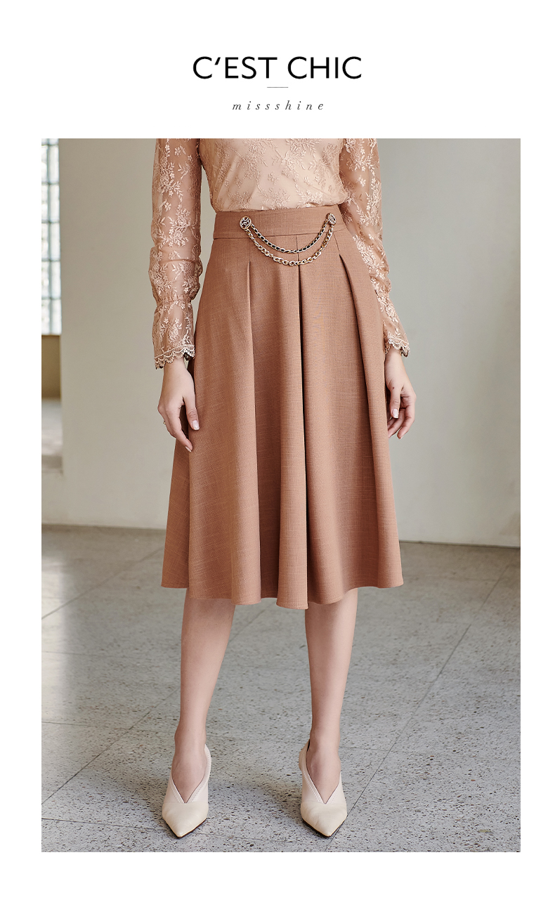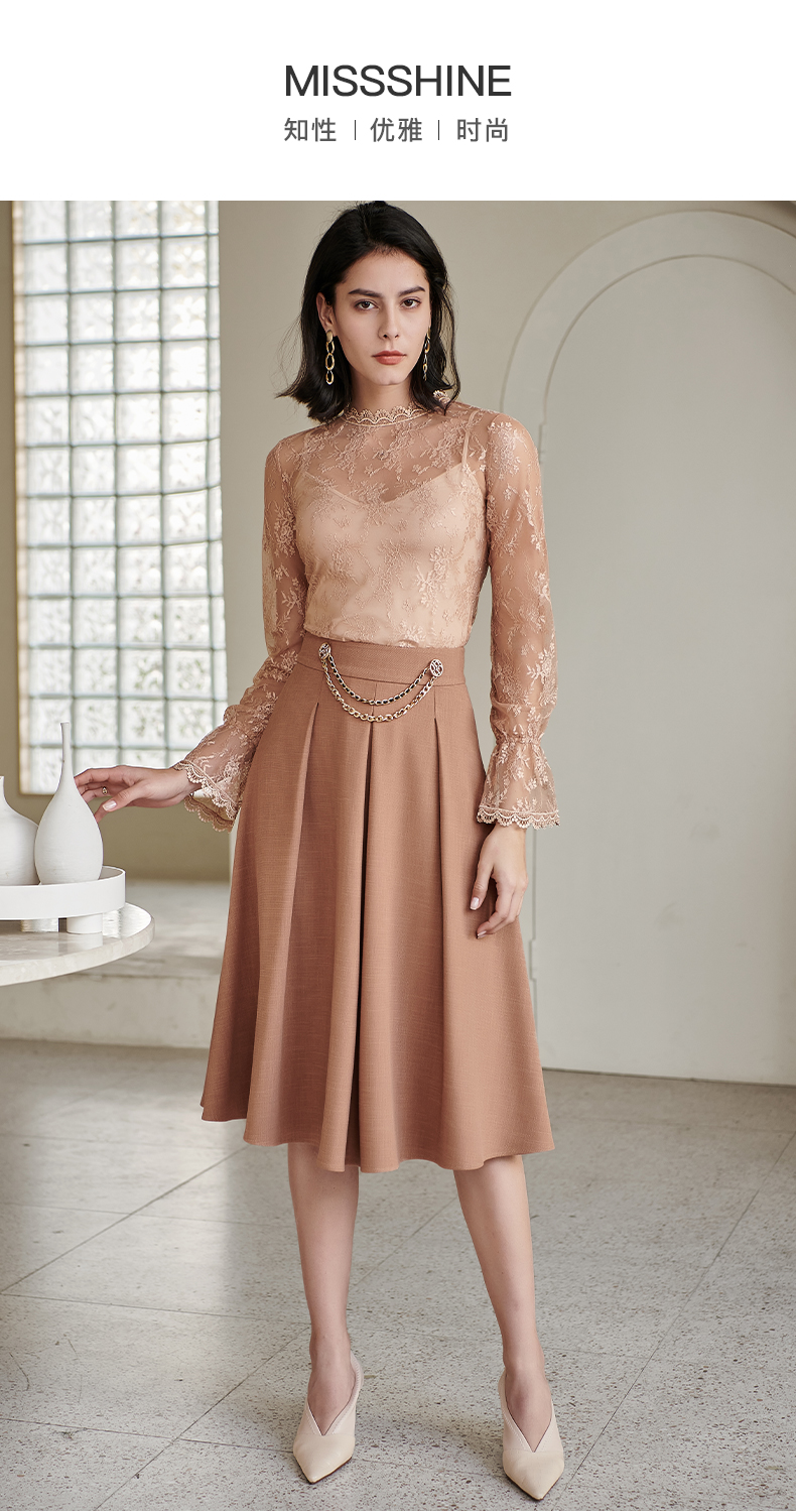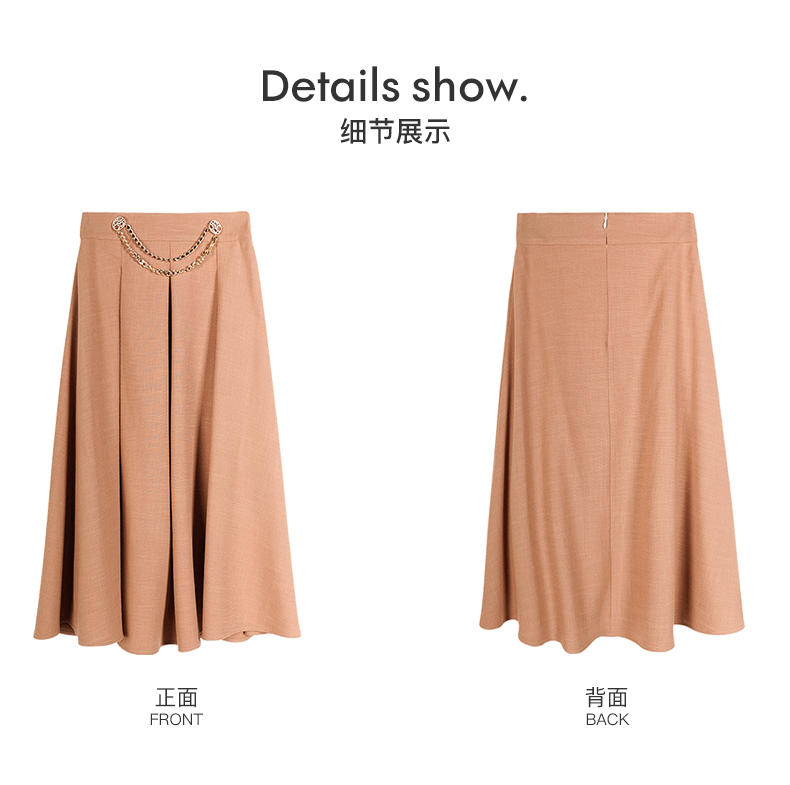 剩S 米思阳气质温柔杏色高腰半身裙春秋新款收腰显瘦A字大摆裙子0518