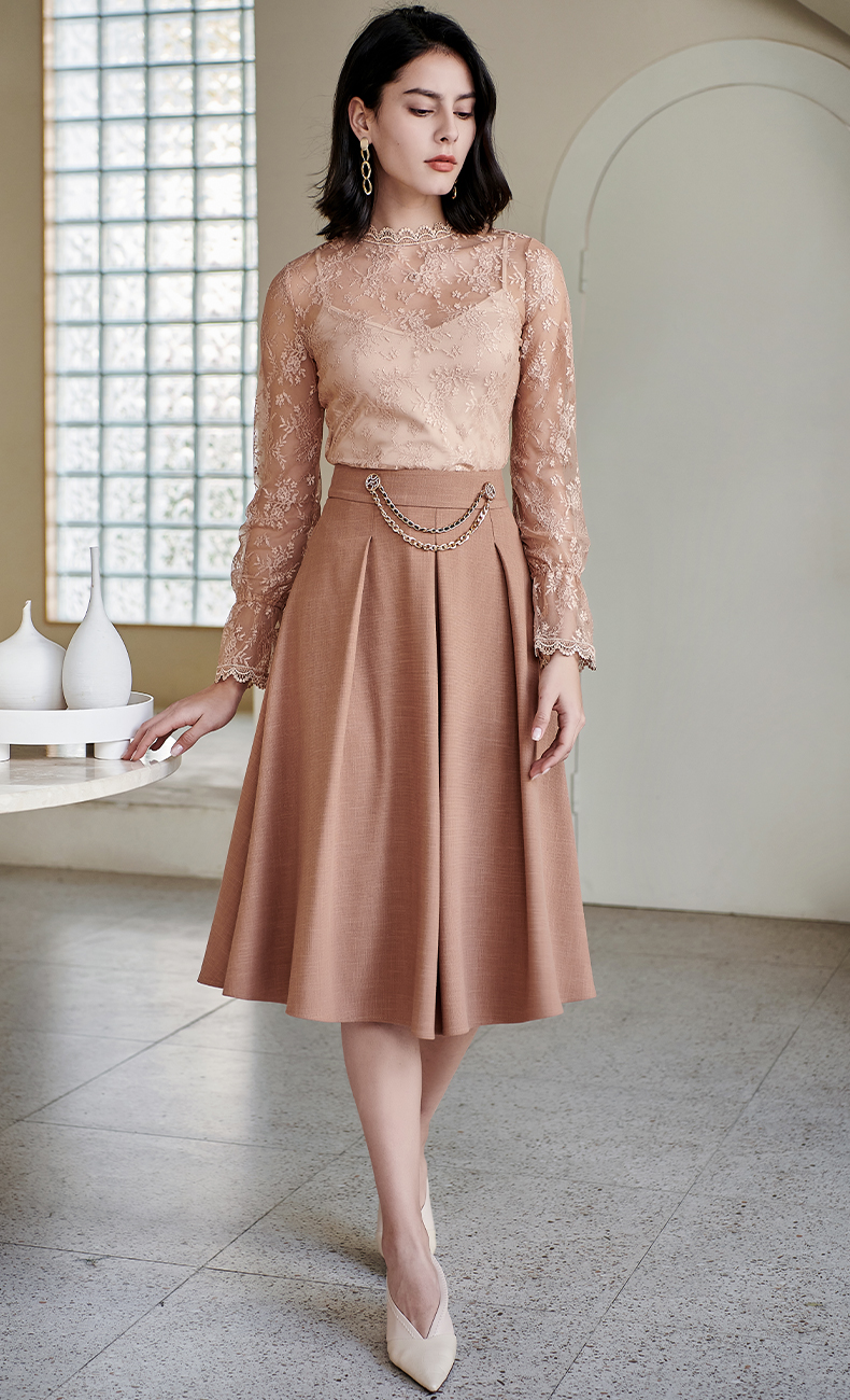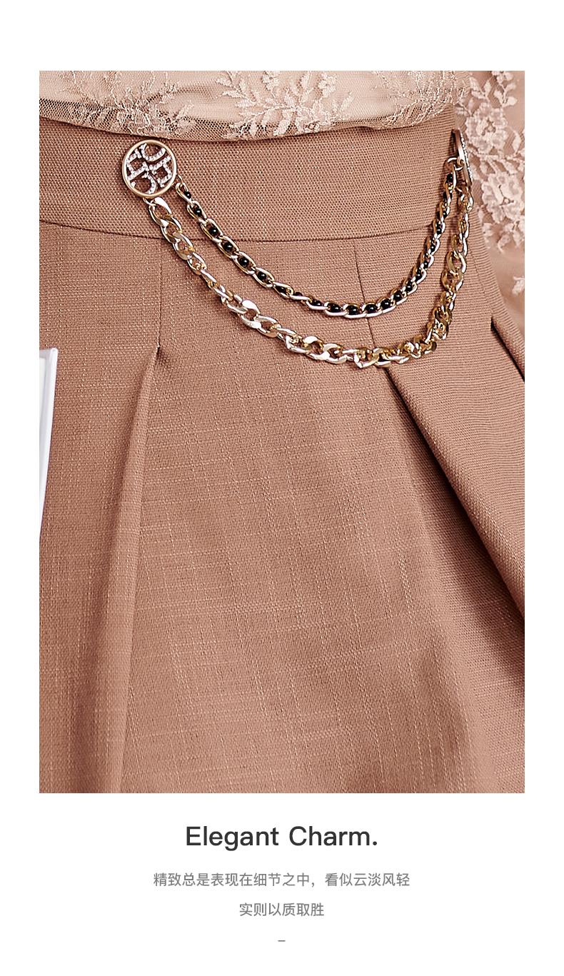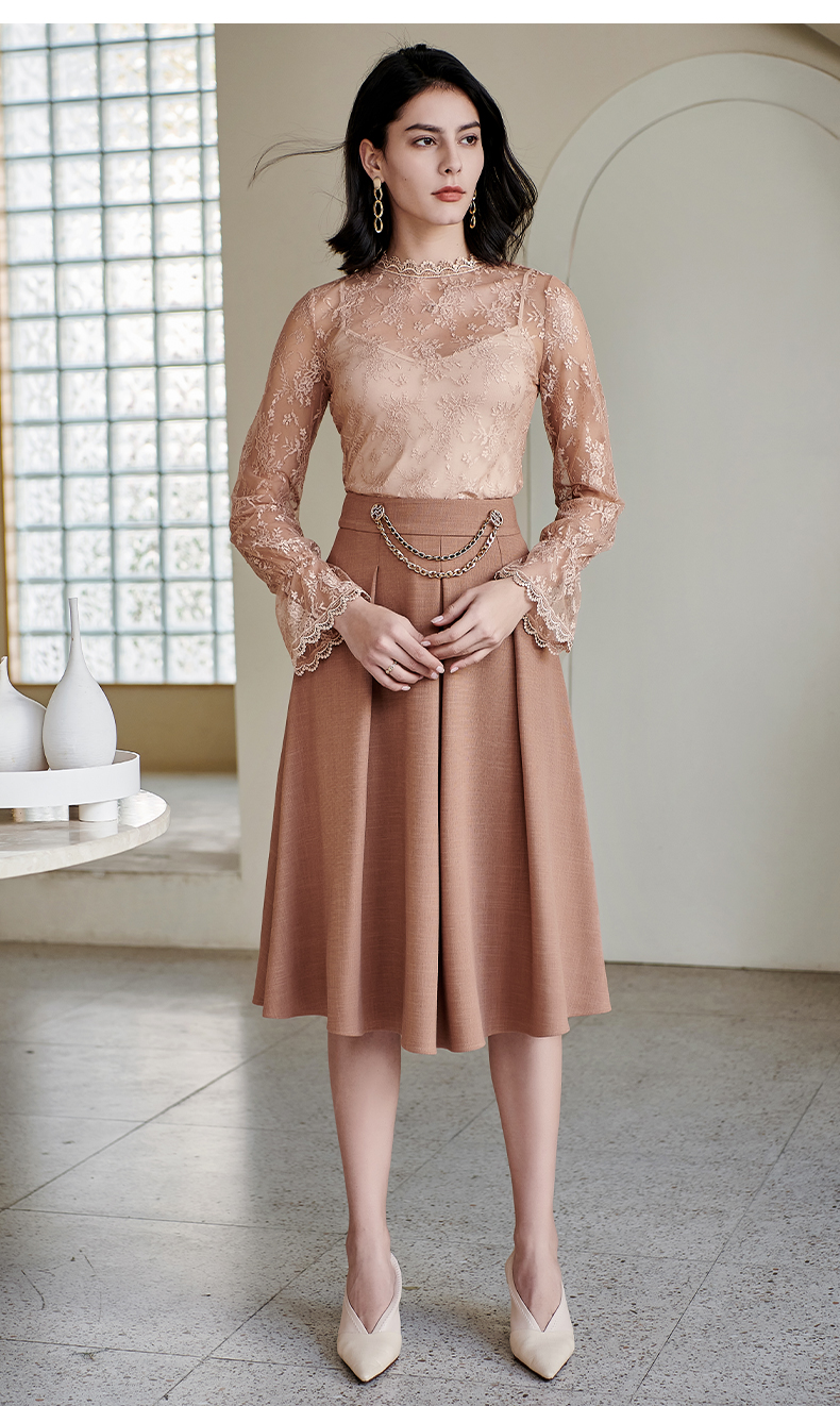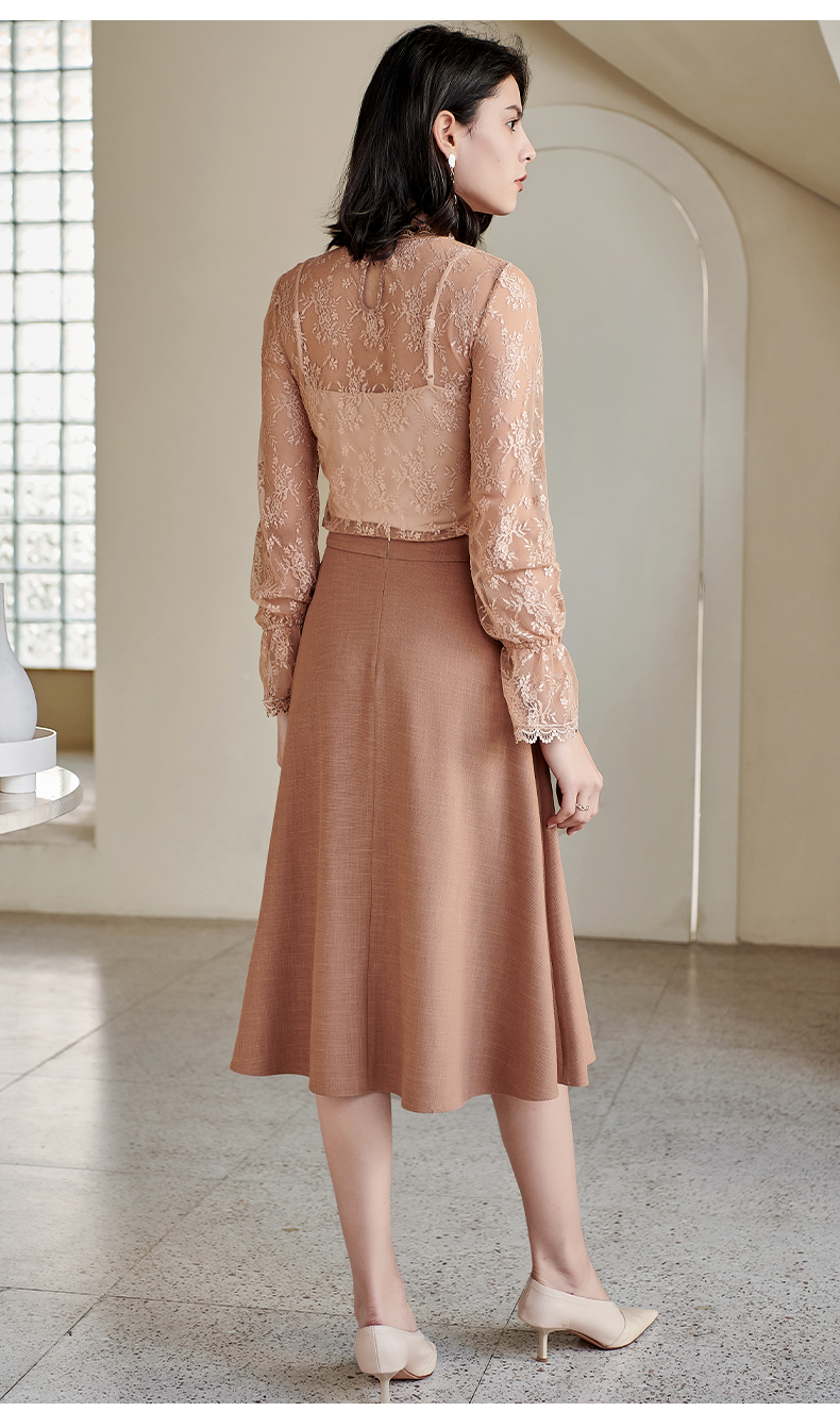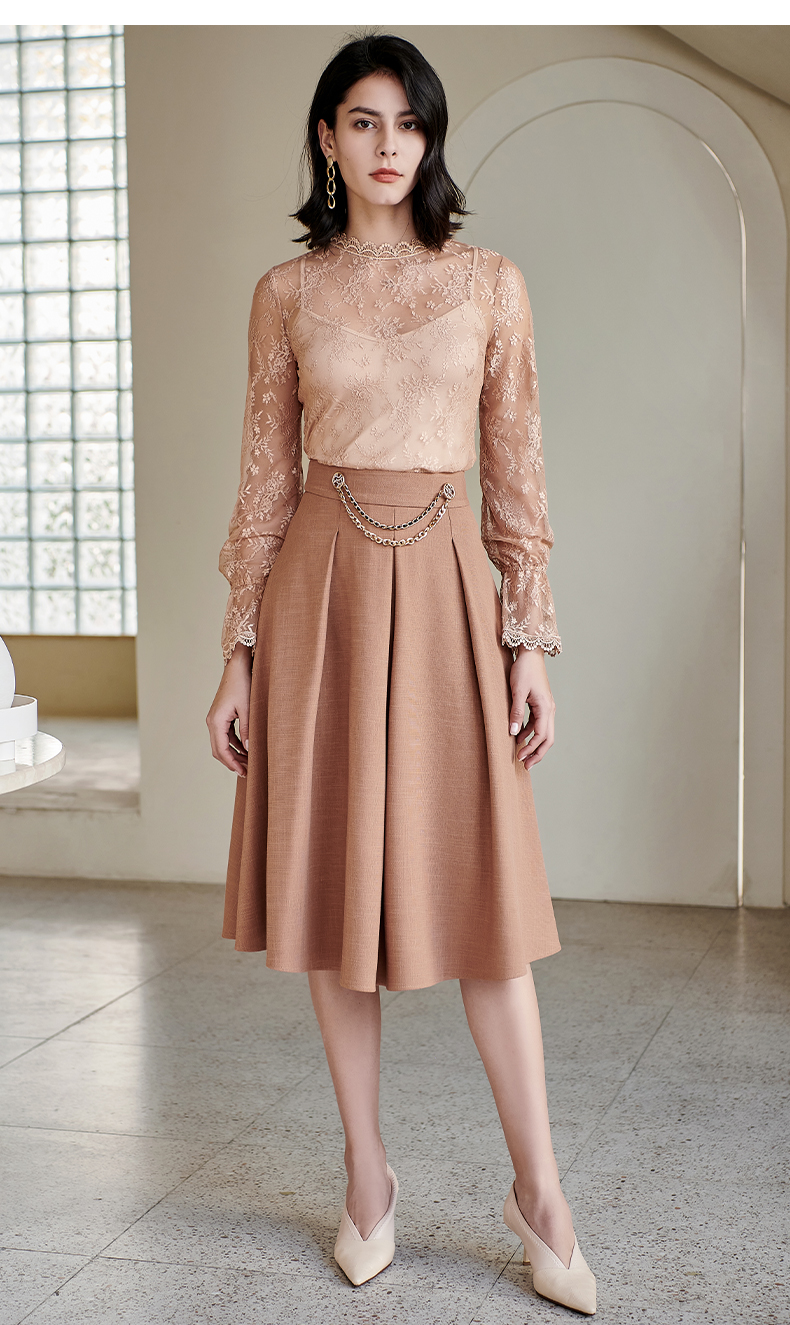 剩S 米思阳气质温柔杏色高腰半身裙春秋新款收腰显瘦A字大摆裙子0518