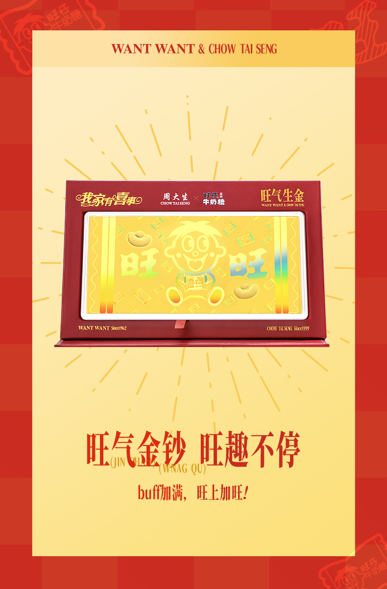 【特价金】联名旺气生财足金1克金条节日红包礼送家人送朋友生日礼物送女朋友礼物