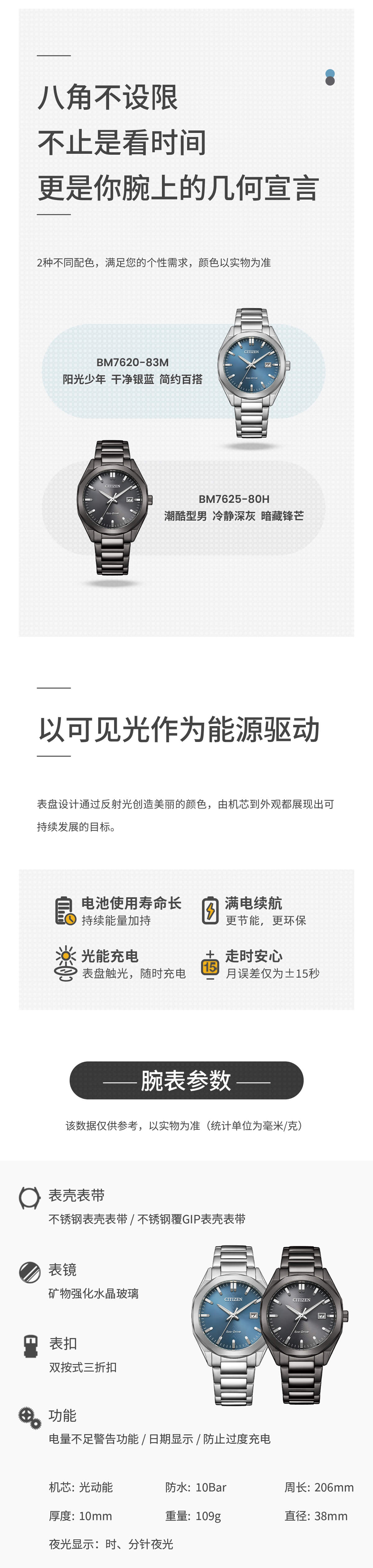 西铁城/CITIZEN 光动能男表BM7620-83M