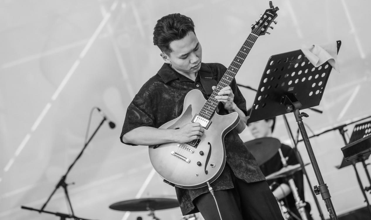 大黑,青年爵士吉他演奏家,先后毕业于上海音乐学院与美国新英格兰音乐学院,师从于爵士吉他演奏家张雄关,爵士小号演奏家Jason Palmer,爵士萨克斯大师Jerry Bergonzi等众多爵士音乐家,曾参演上海爵士音乐节,秀岸生活音乐节,辰山草地音乐节,宁波爵士音乐节等各大音乐节活动,并多次参与上音歌剧院,南昌大剧院,德州大剧院等剧院活动,2022年参与录制首张上海音乐学院爵士吉他专辑,2024年于波⼠顿著名录音室Wellspring录制个人原创爵士乐专辑。