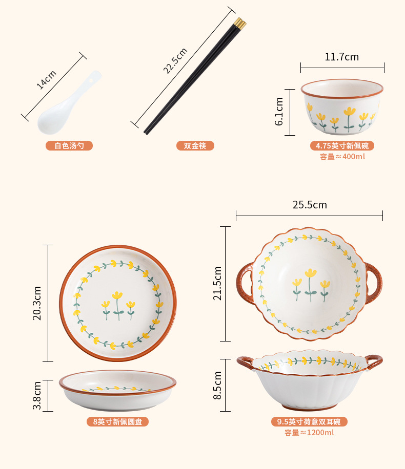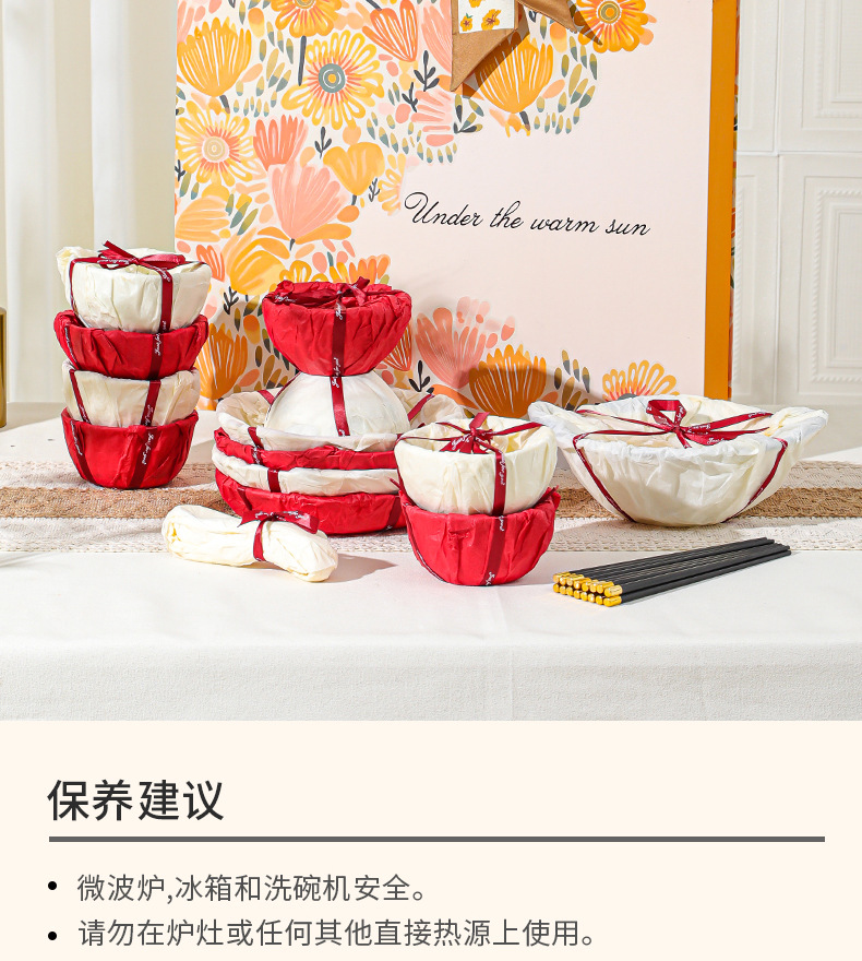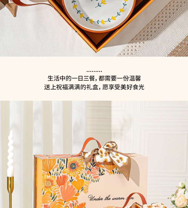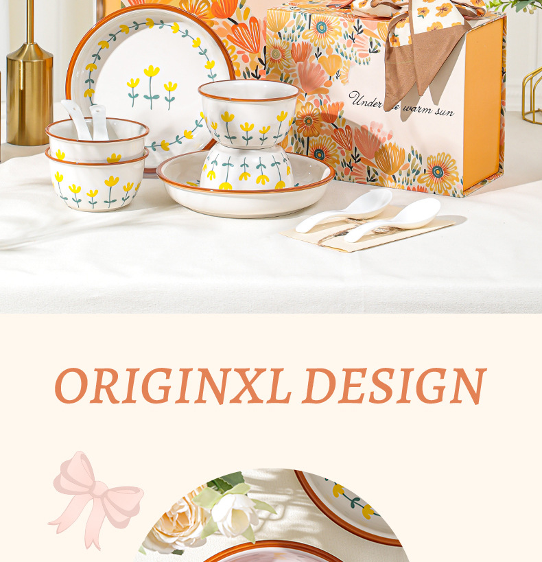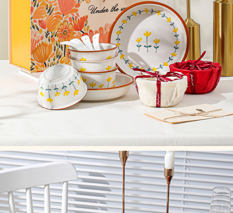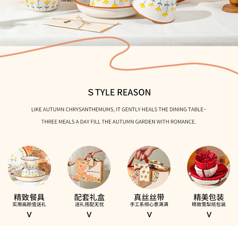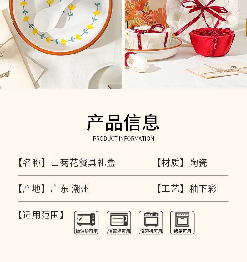 「礼盒装!数套可选」陶瓷釉下彩山菊花中式餐具套装 家用乔迁礼品碗厨房用品餐饮用具