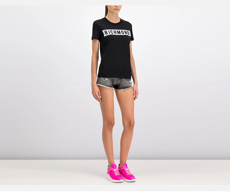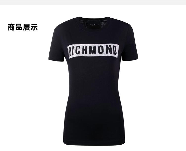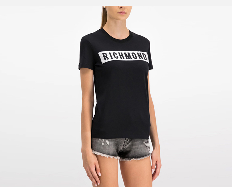 RICHMOND 女士棉质铆钉字母圆领短袖T恤 黑色 RWP19028TS BLACK