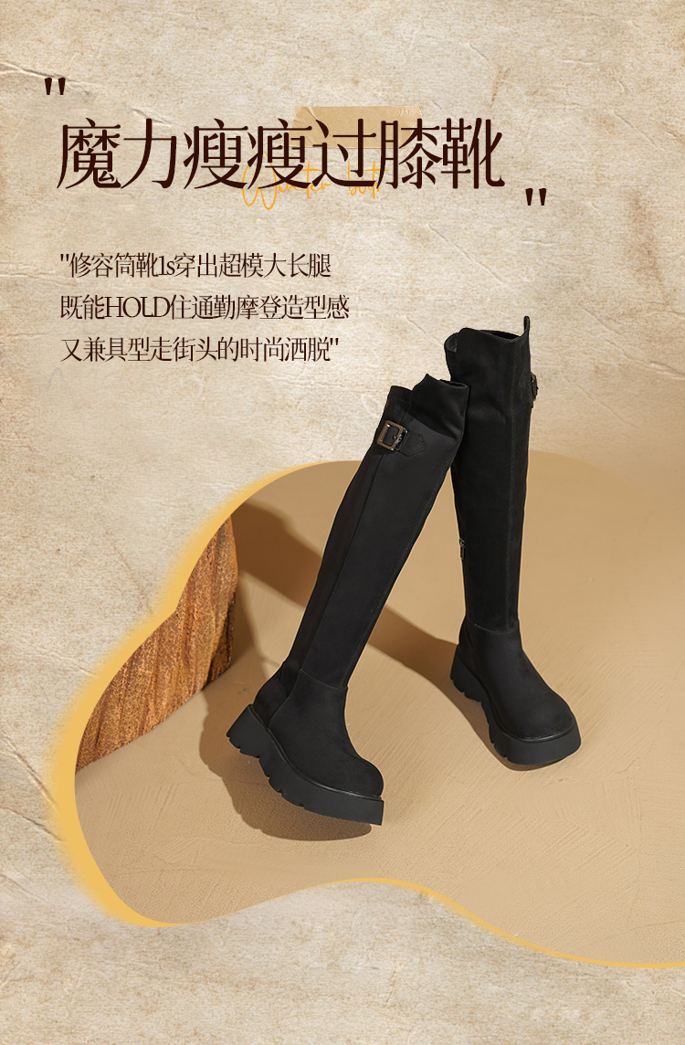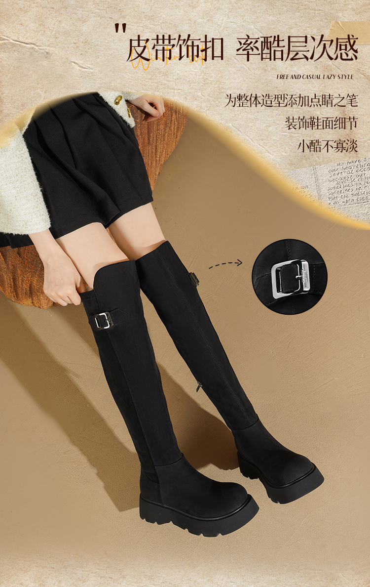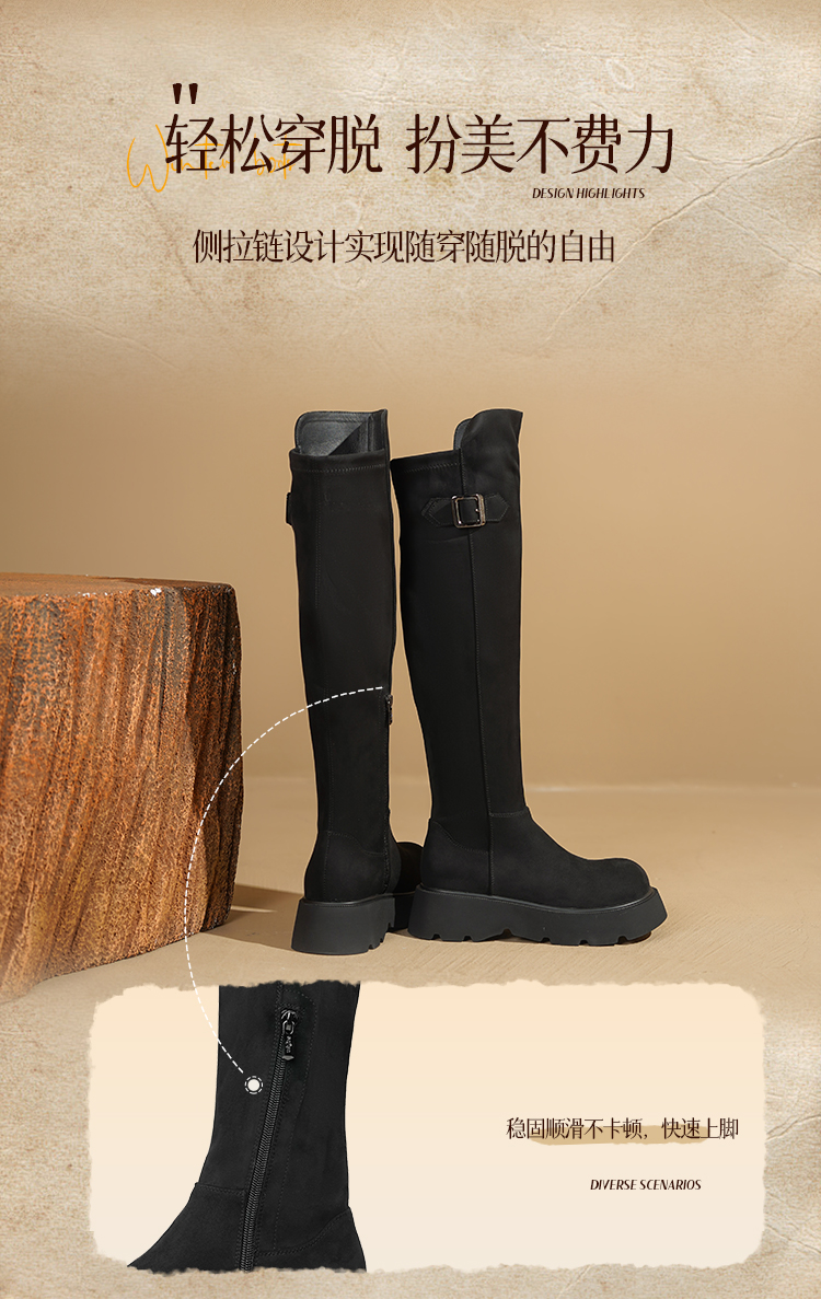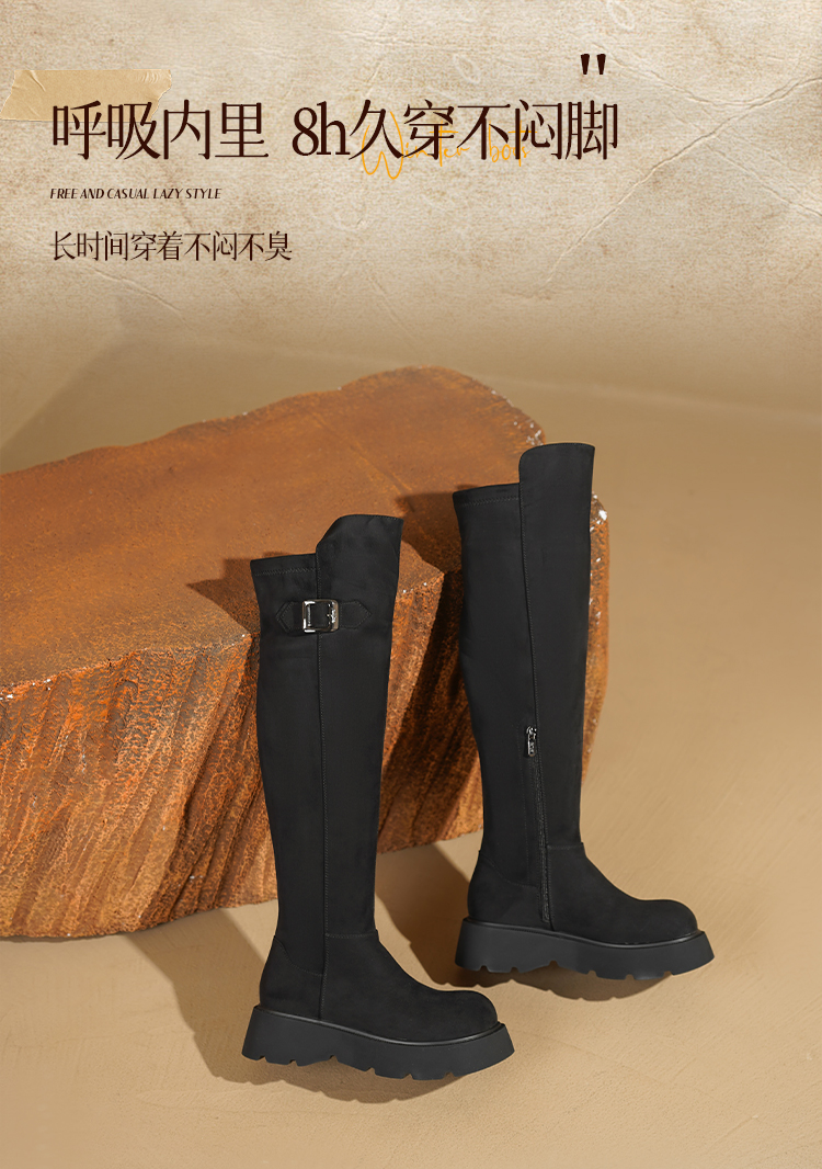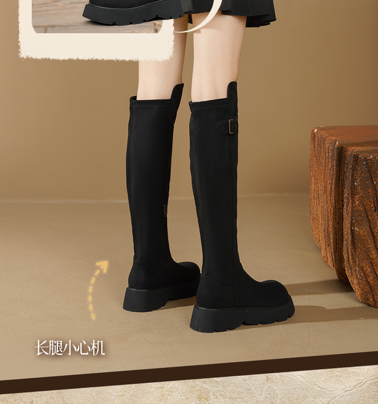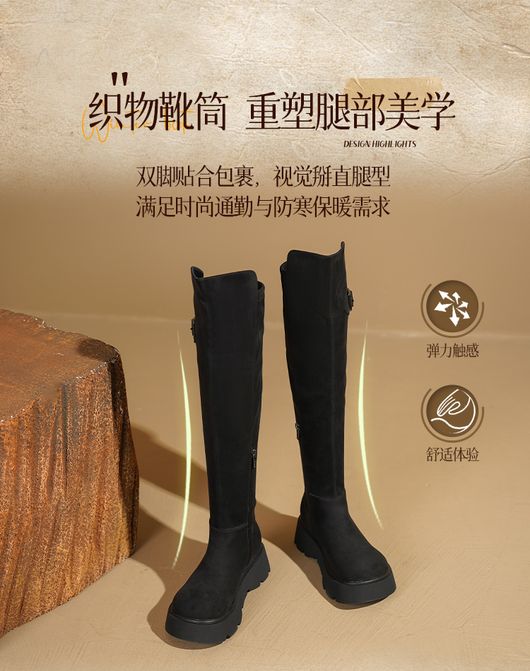 Safiya/索菲娅2025英伦风过膝不掉筒百搭粗跟增高弹力瘦瘦长靴SFD4117275