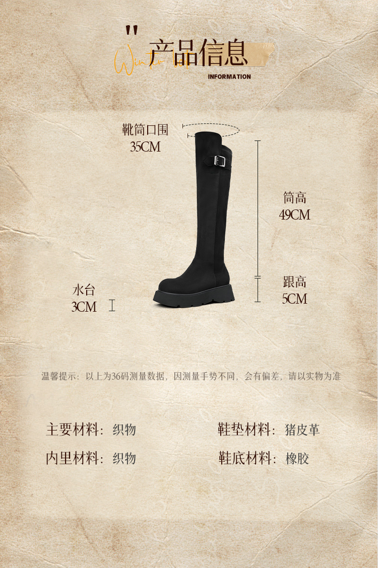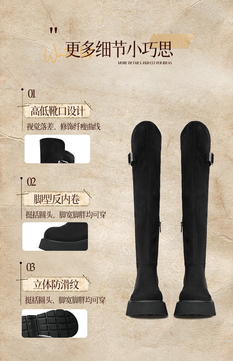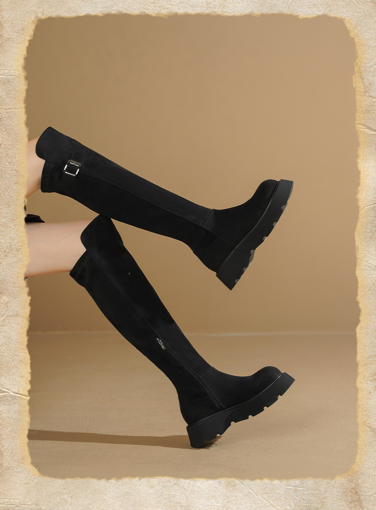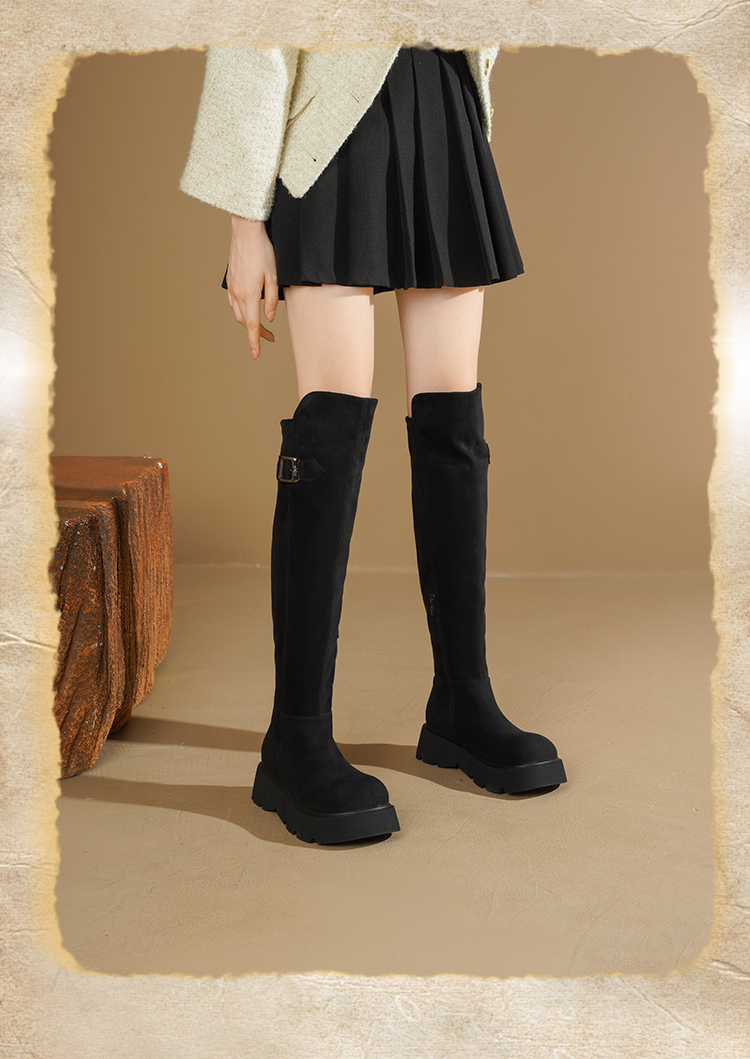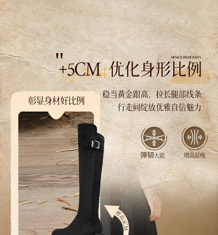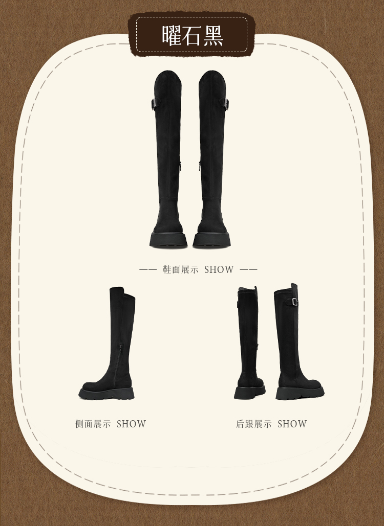 Safiya/索菲娅2025英伦风过膝不掉筒百搭粗跟增高弹力瘦瘦长靴SFD4117275