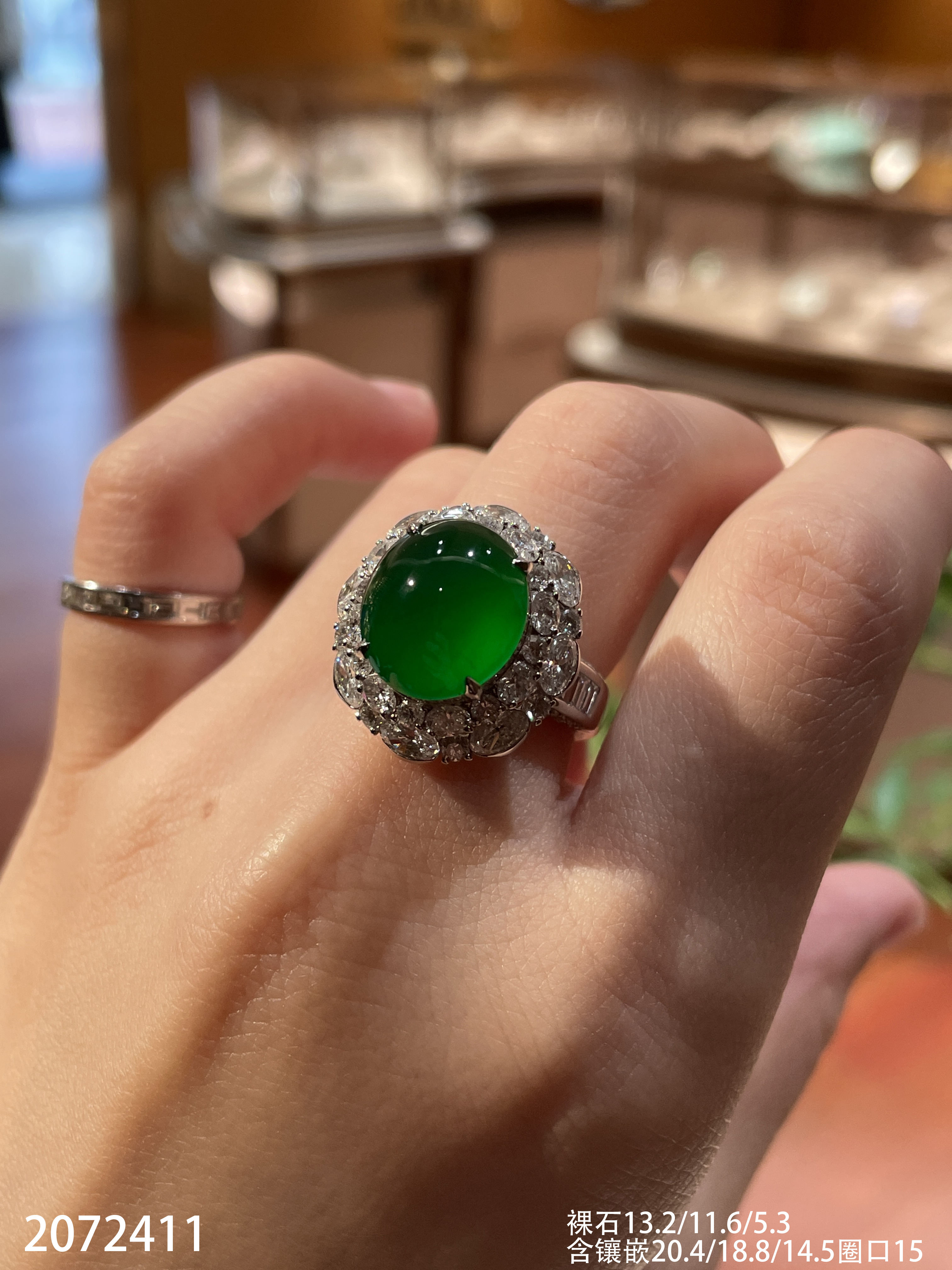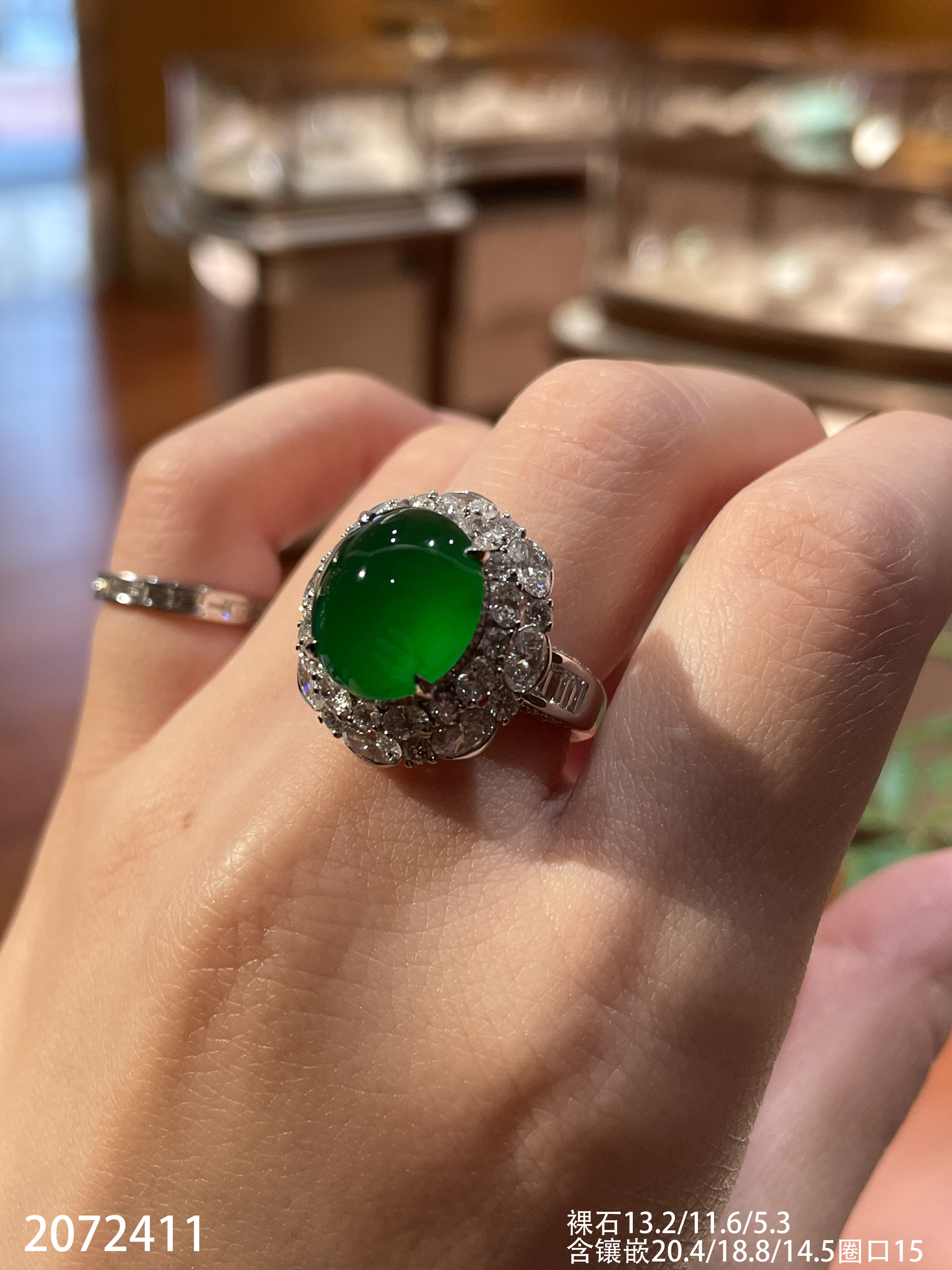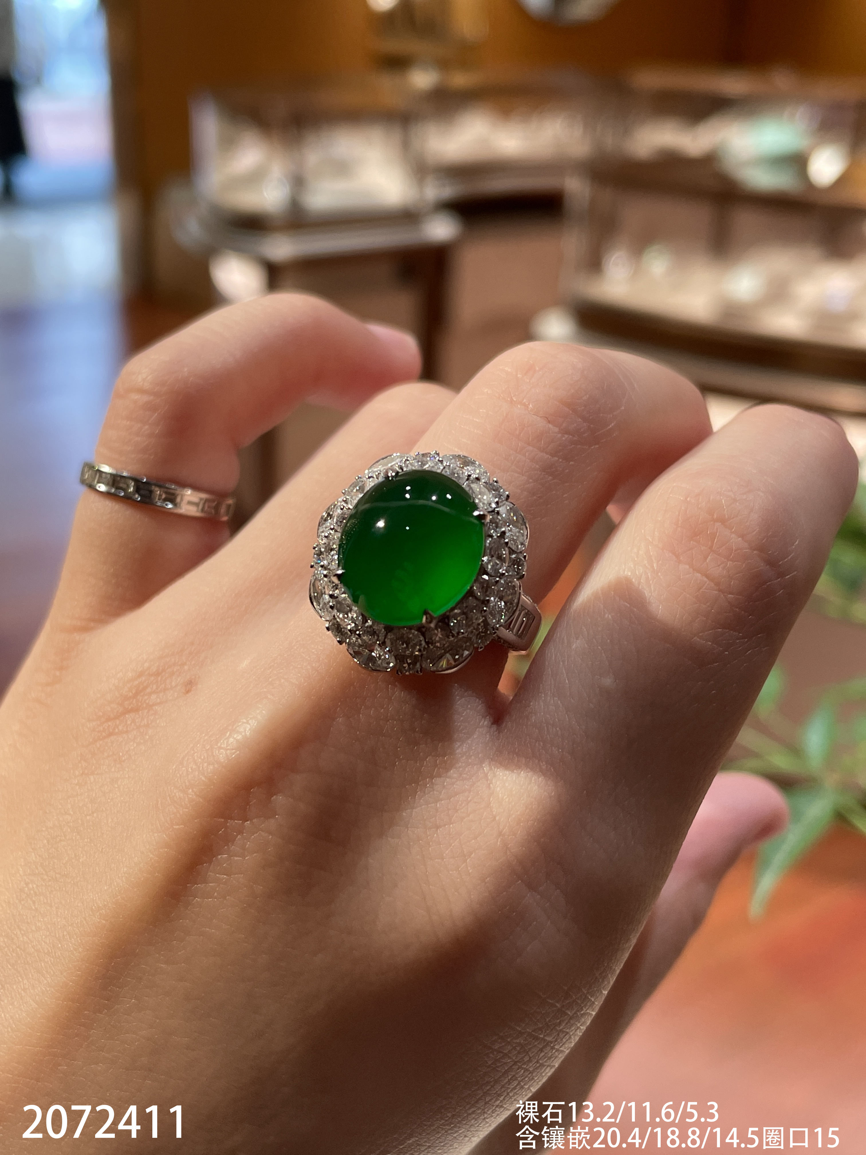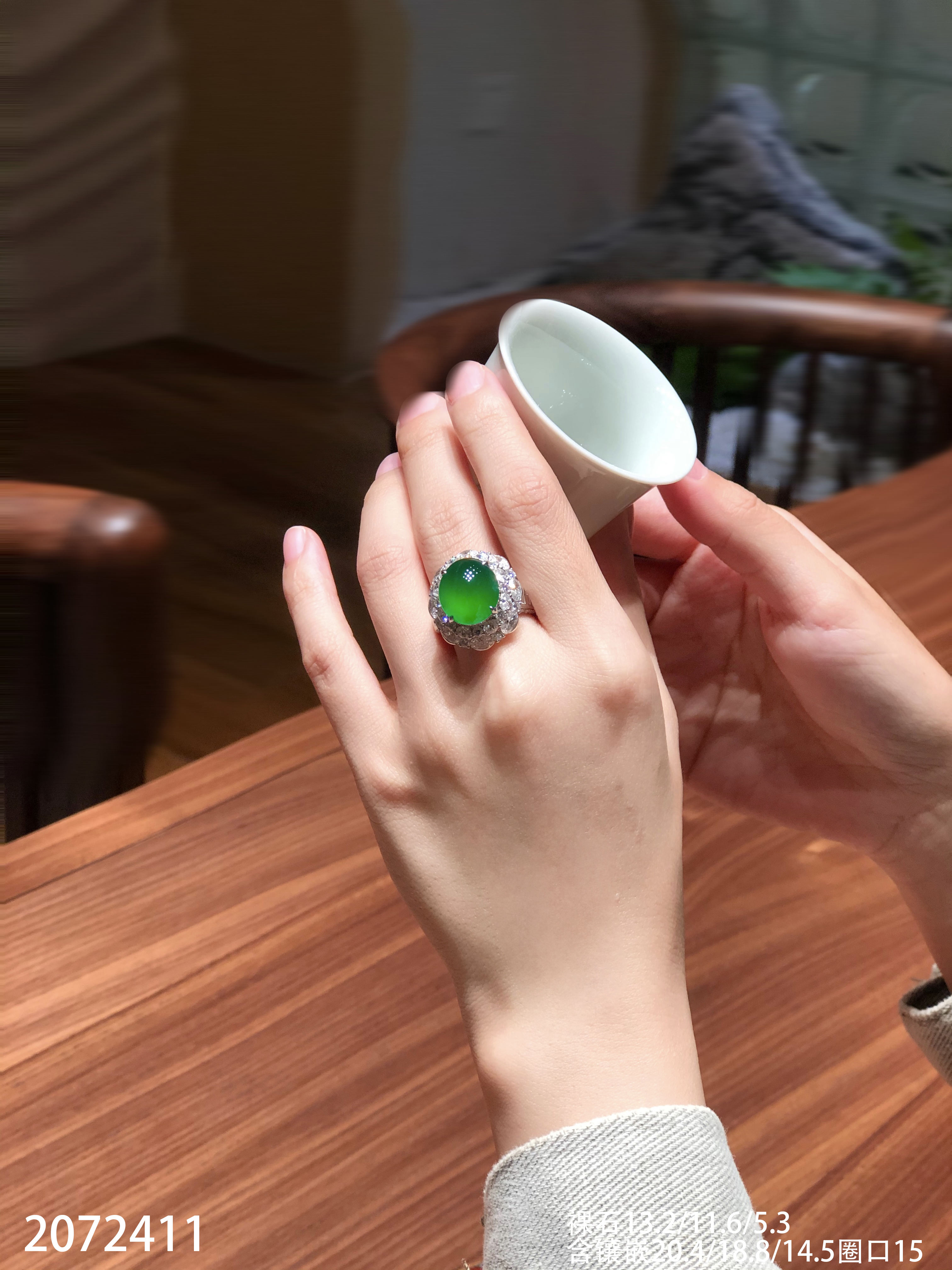 老坑高冰帝王绿蛋面戒指【2072411】具体价格微信咨询