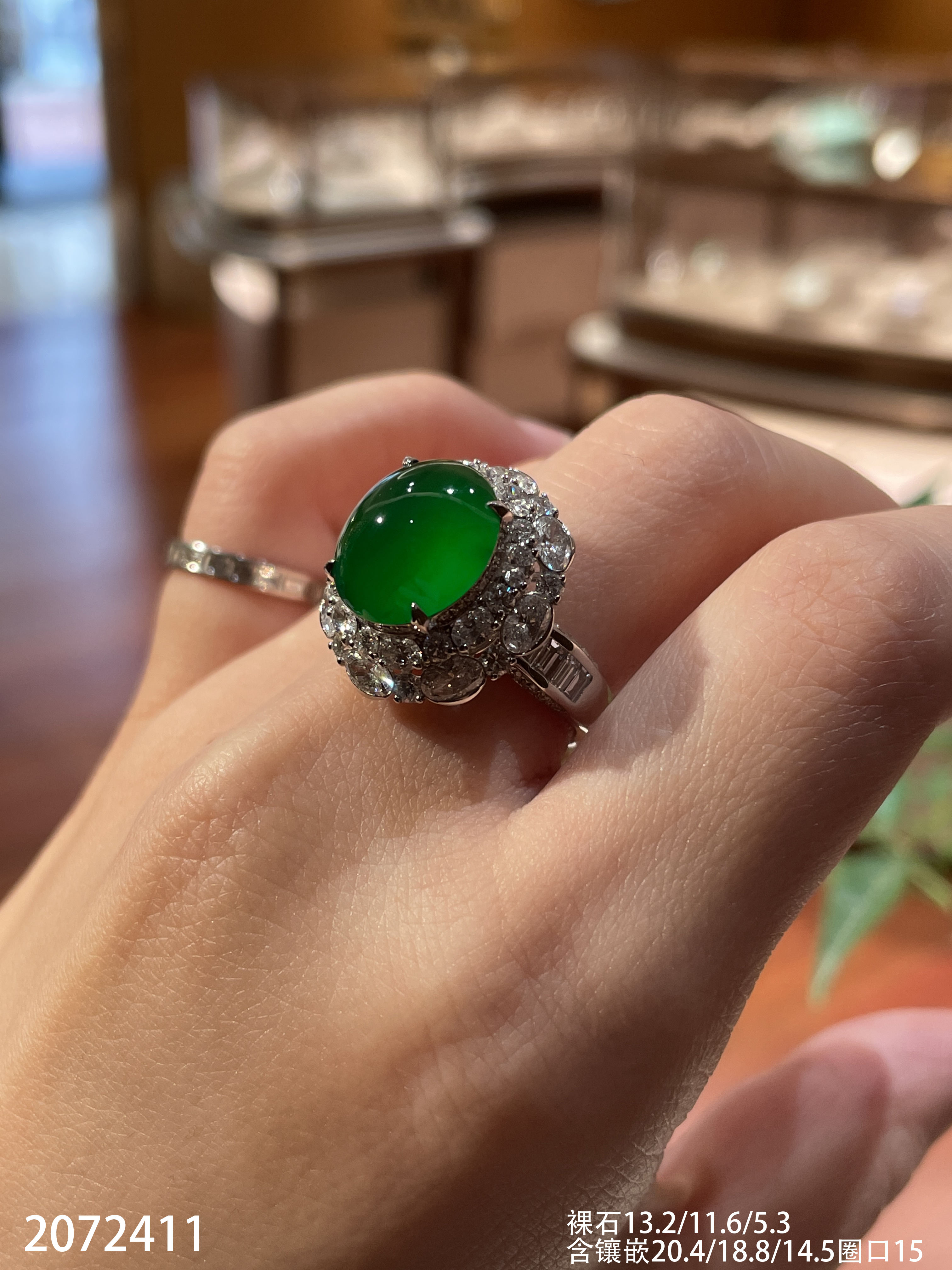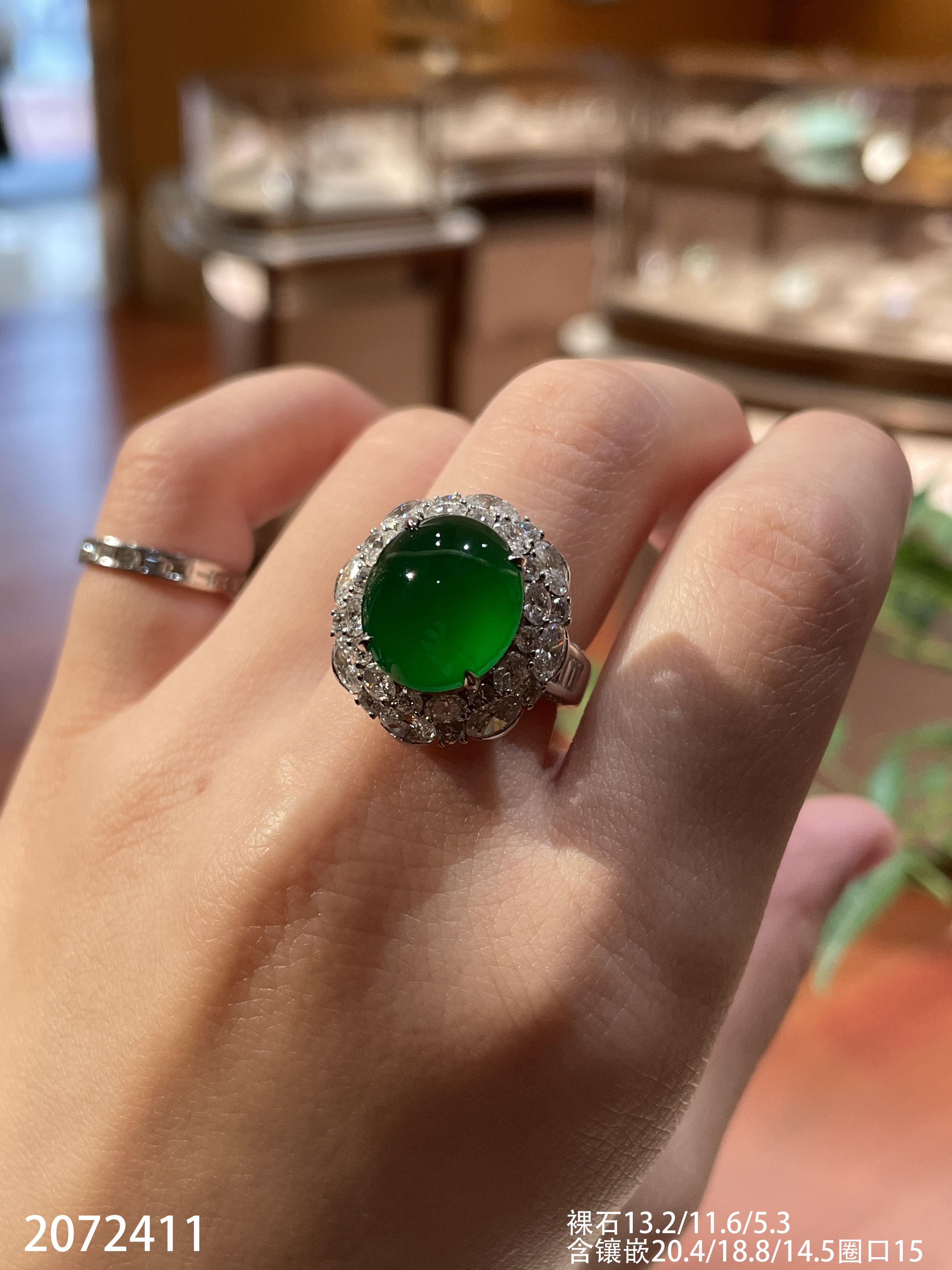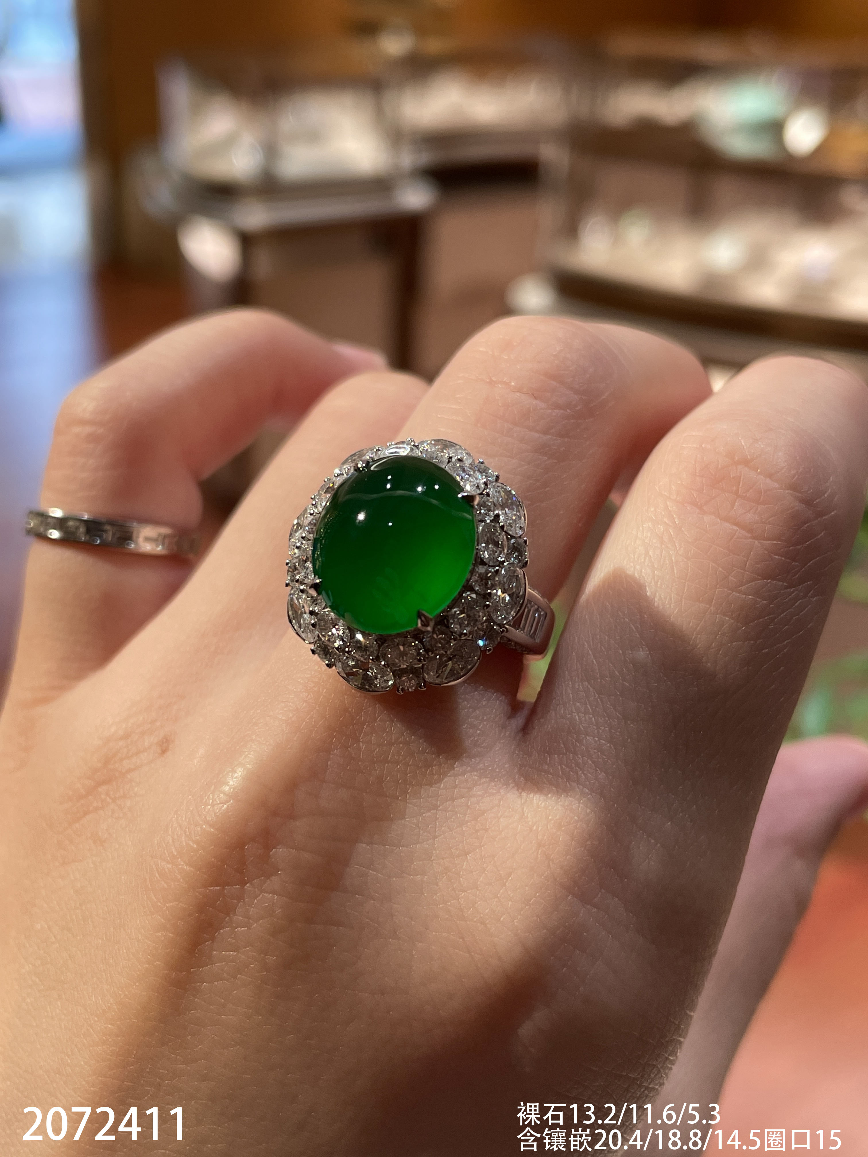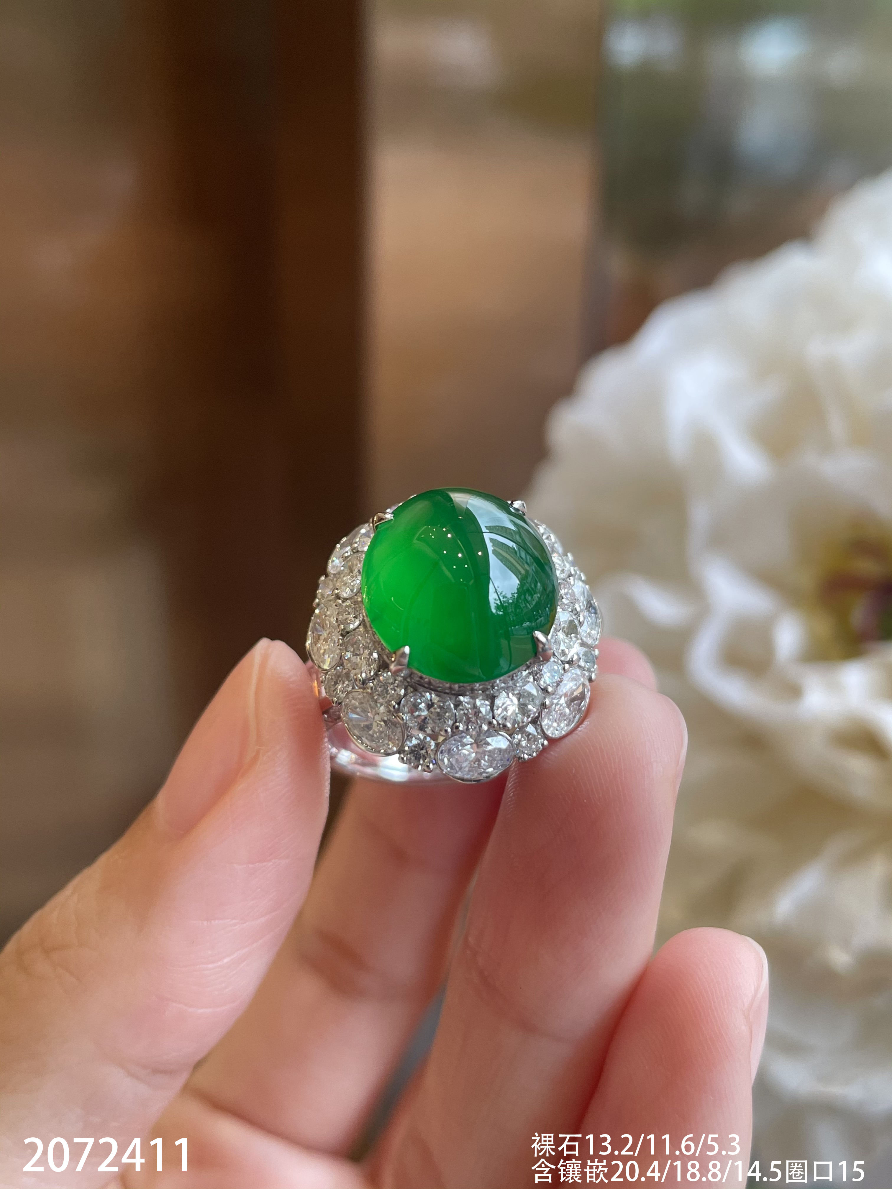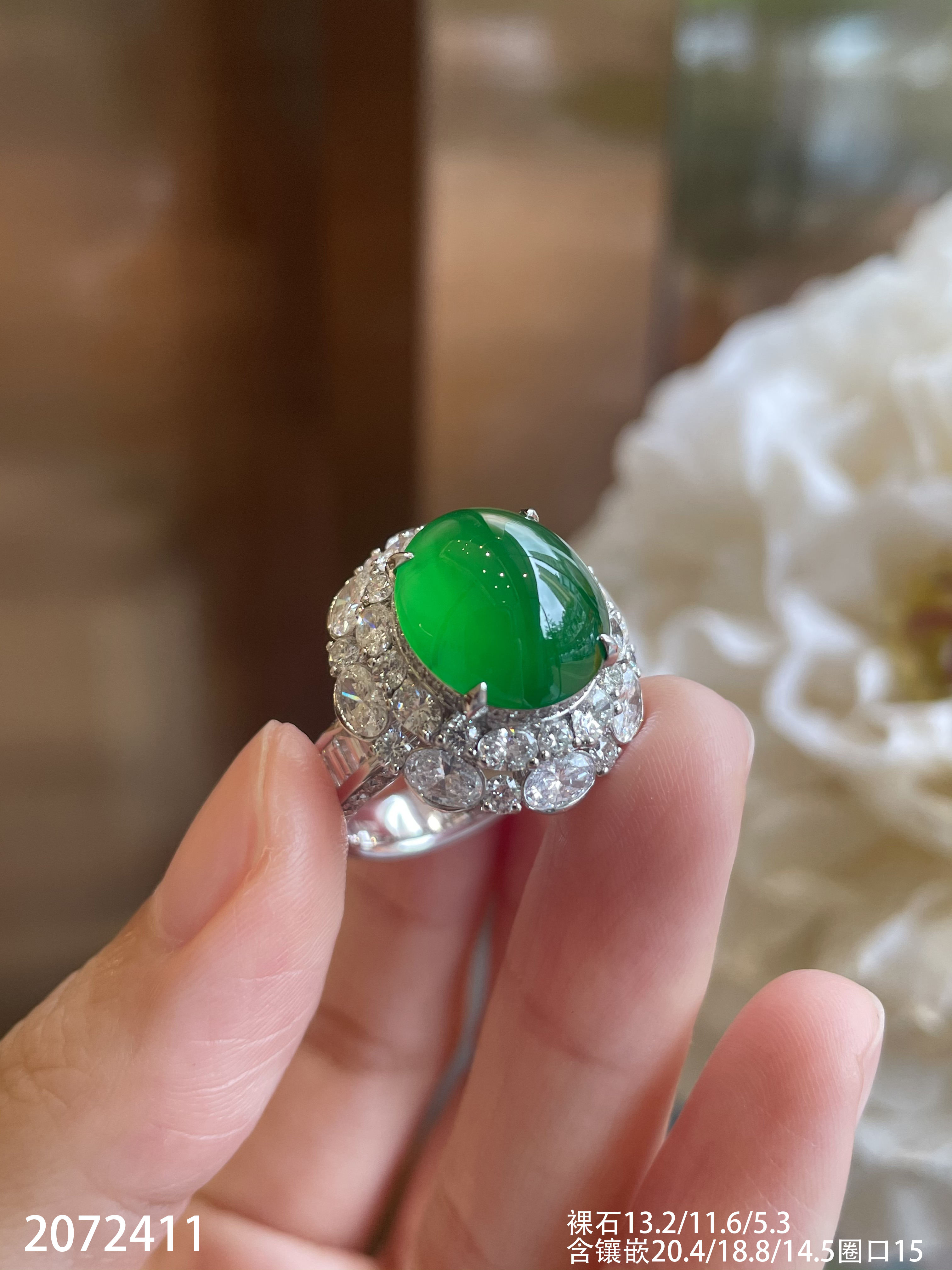 老坑高冰帝王绿蛋面戒指【2072411】具体价格微信咨询