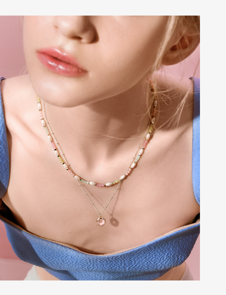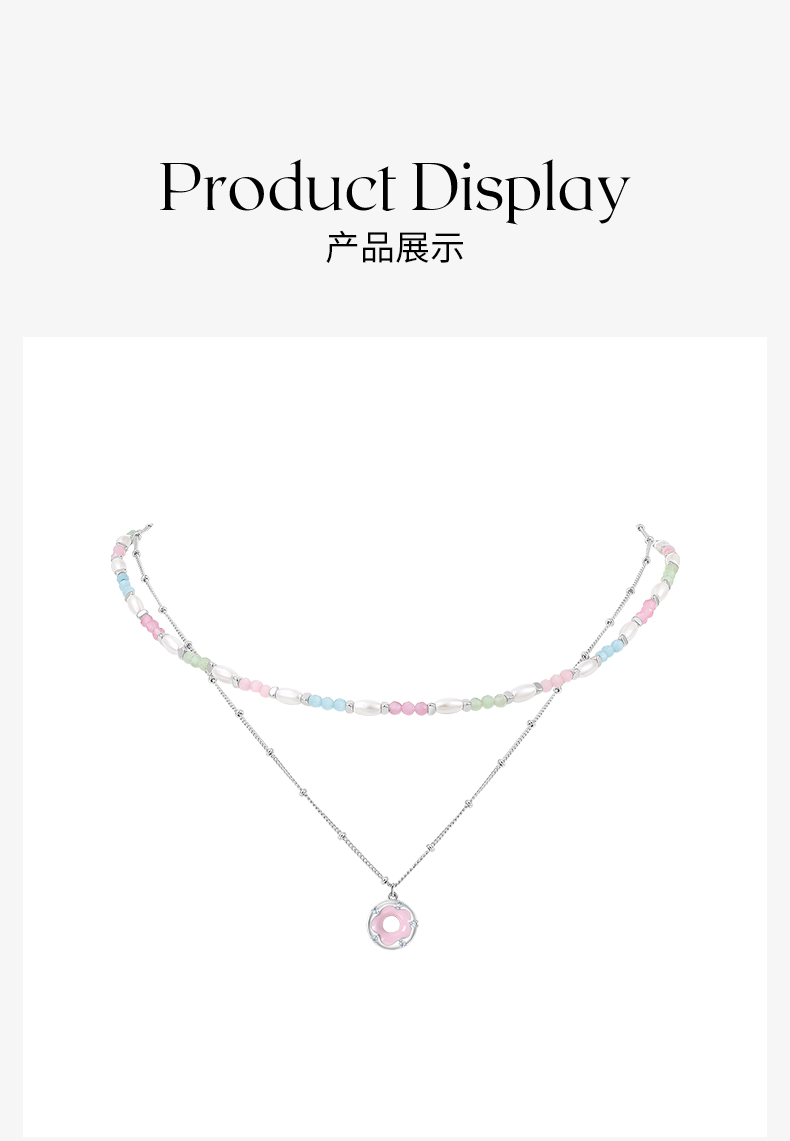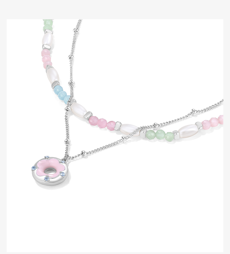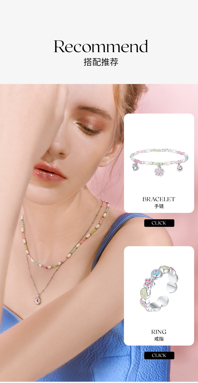 ZEGL设计师樱花小彩串彩色叠戴项链女款夏日多巴胺穿搭甜酷锁骨链