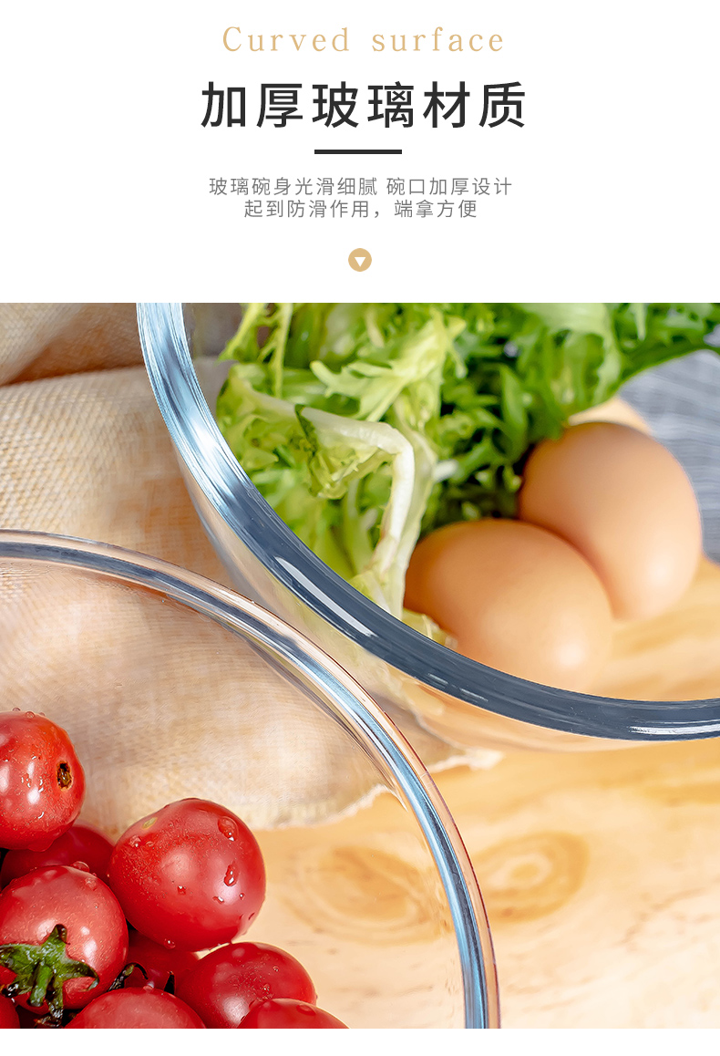 圆形玻璃烤碗打蛋盆 分料碗沙拉碗调馅料 玻璃碗 多规格