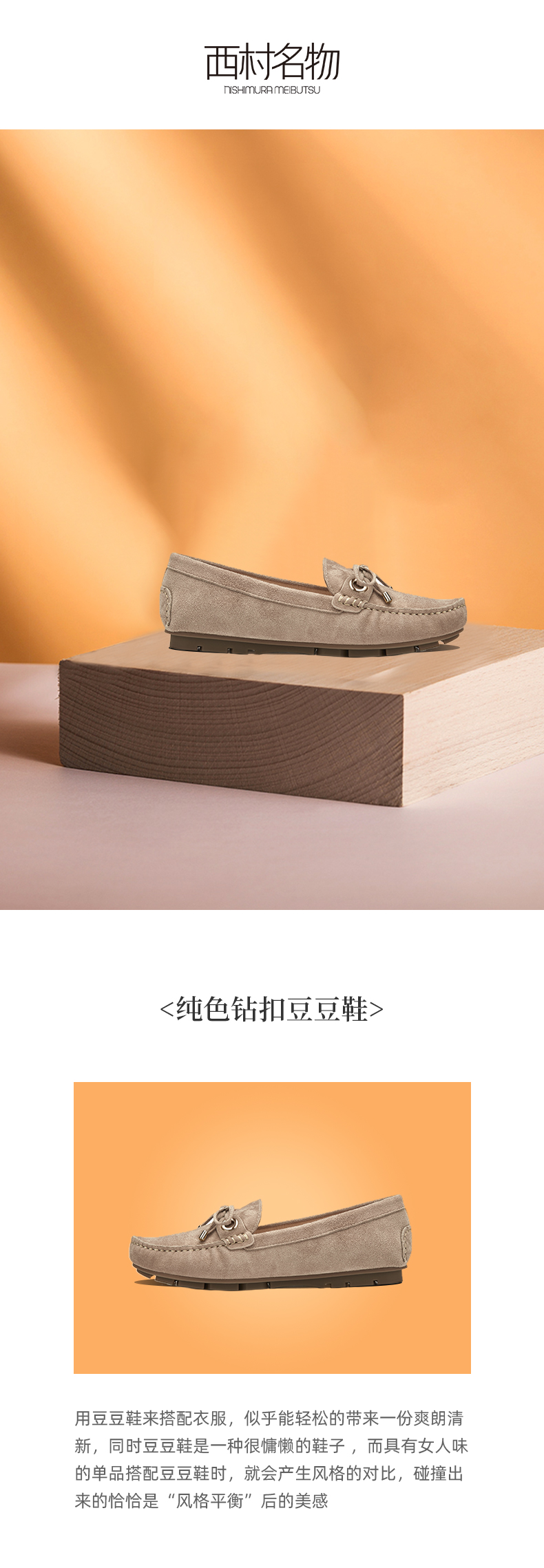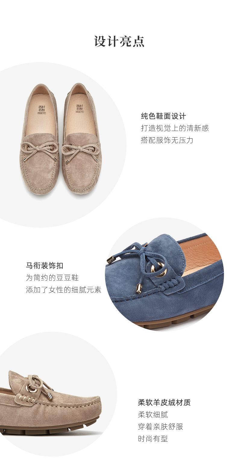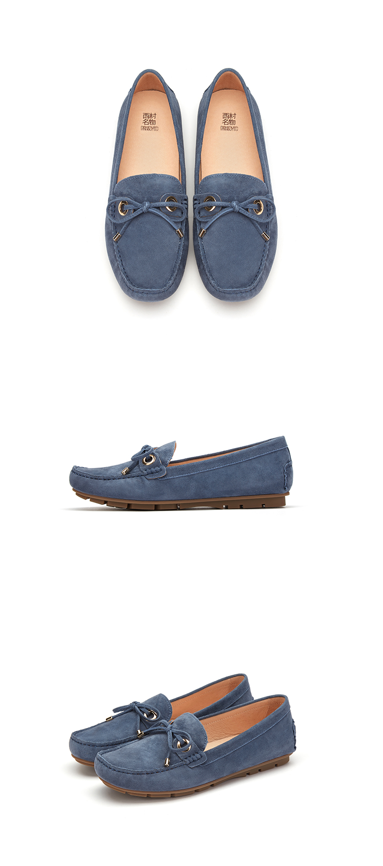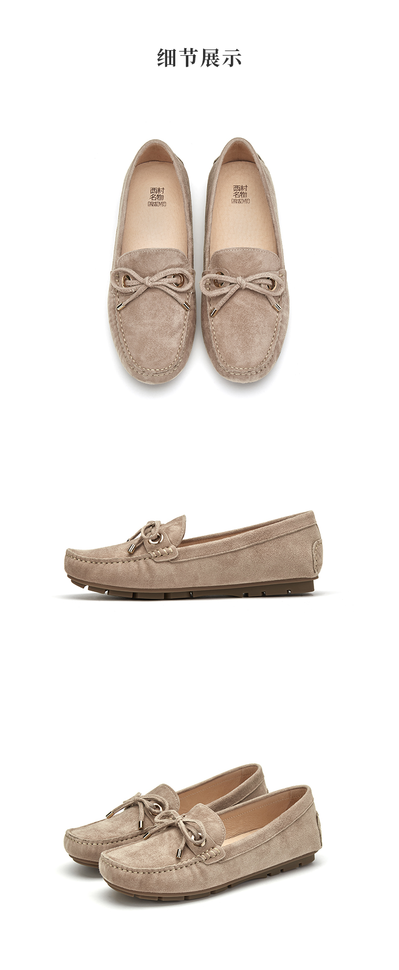 西村名物2021秋季新款女士休闲蝴蝶结系带款乐福鞋一脚蹬鞋X21CM33001