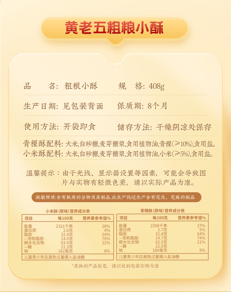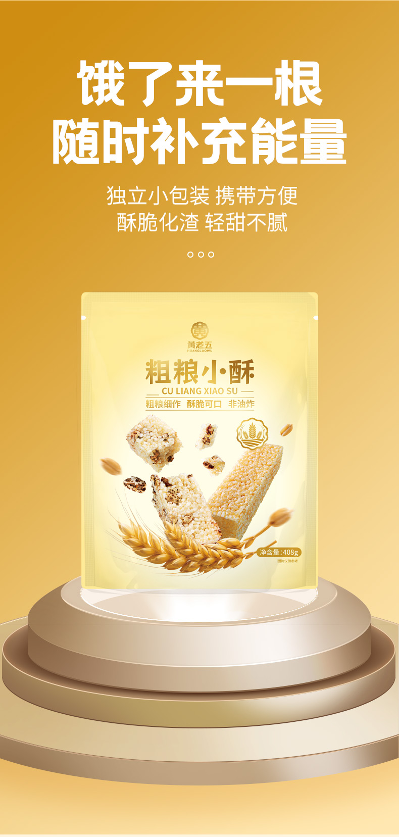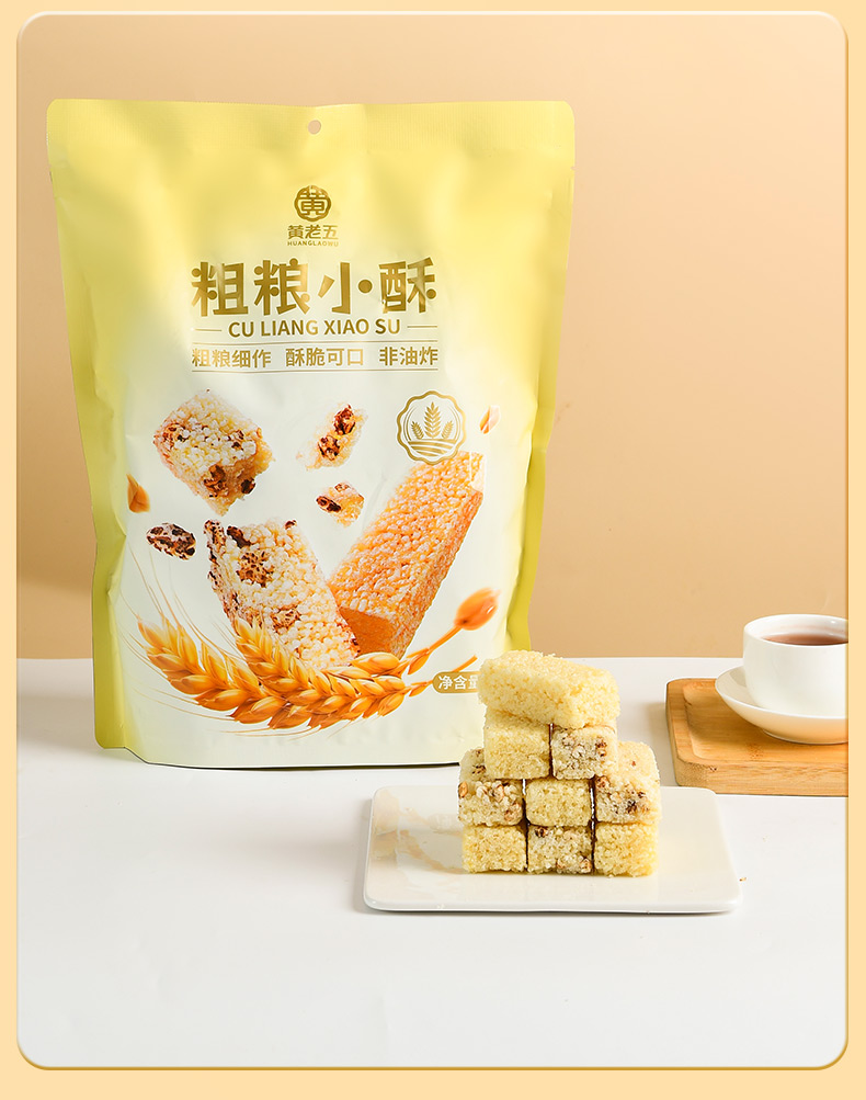 【爆款新品】黄老五粗粮小酥408g*2袋装,粗粮小酥非油炸放心吃!