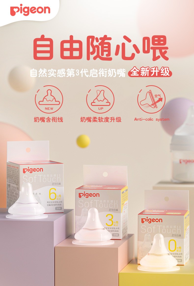 贝亲自然实感第3代宽口奶嘴 双个装
