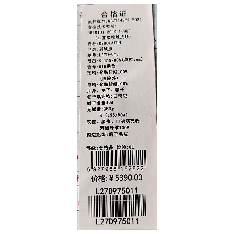 戴布拉芬羽绒服L27D975