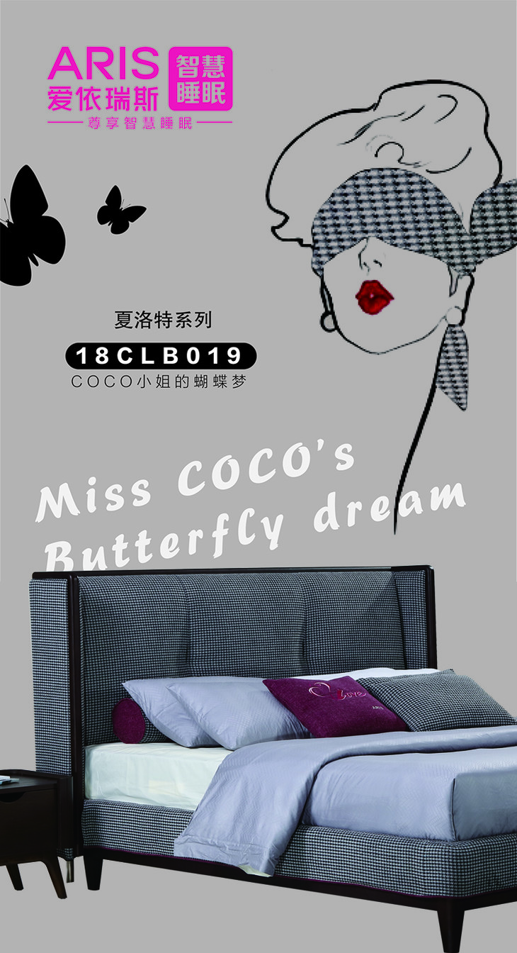 爱依瑞斯 智慧睡眠 布艺软床 18CLB019黑白之吻