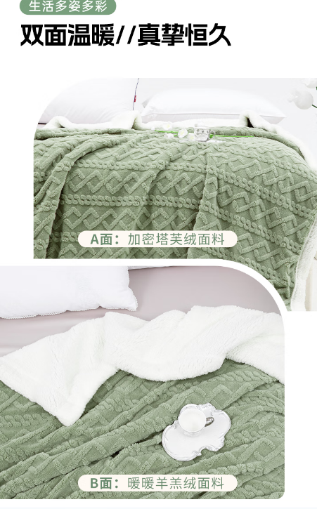 多喜爱-羊羔绒双层暖暖毯-豆绿