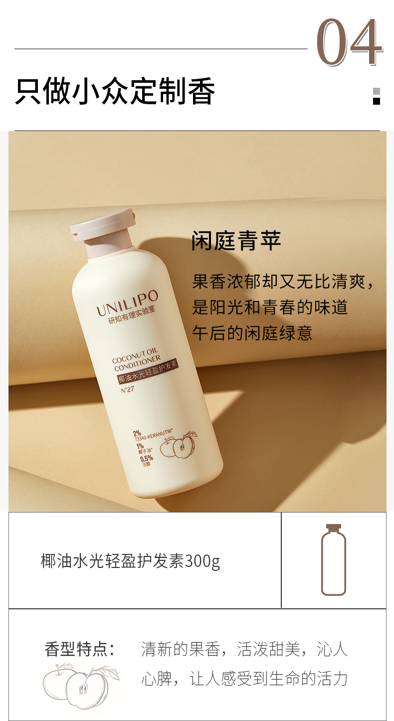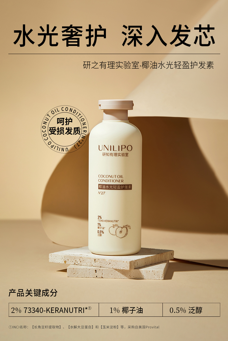 UNILIPO研知有理 椰油水光轻盈护发素300g