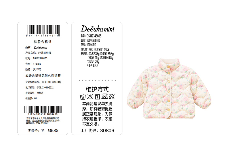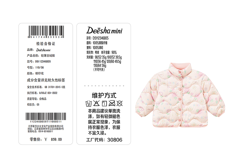 笛莎女童羽绒服2022冬季新款童趣立体两穿羽绒服