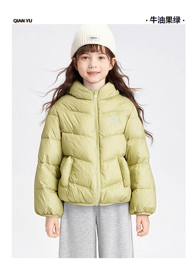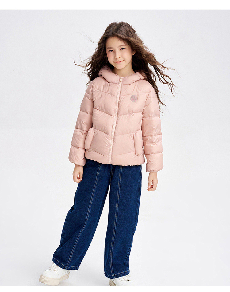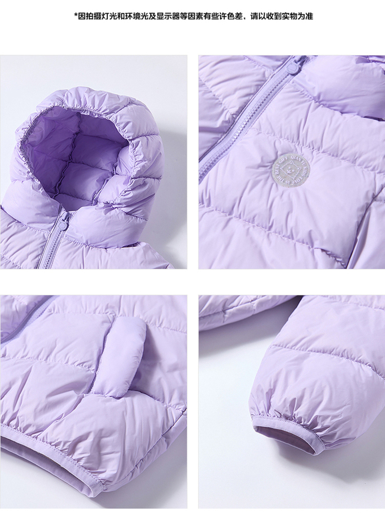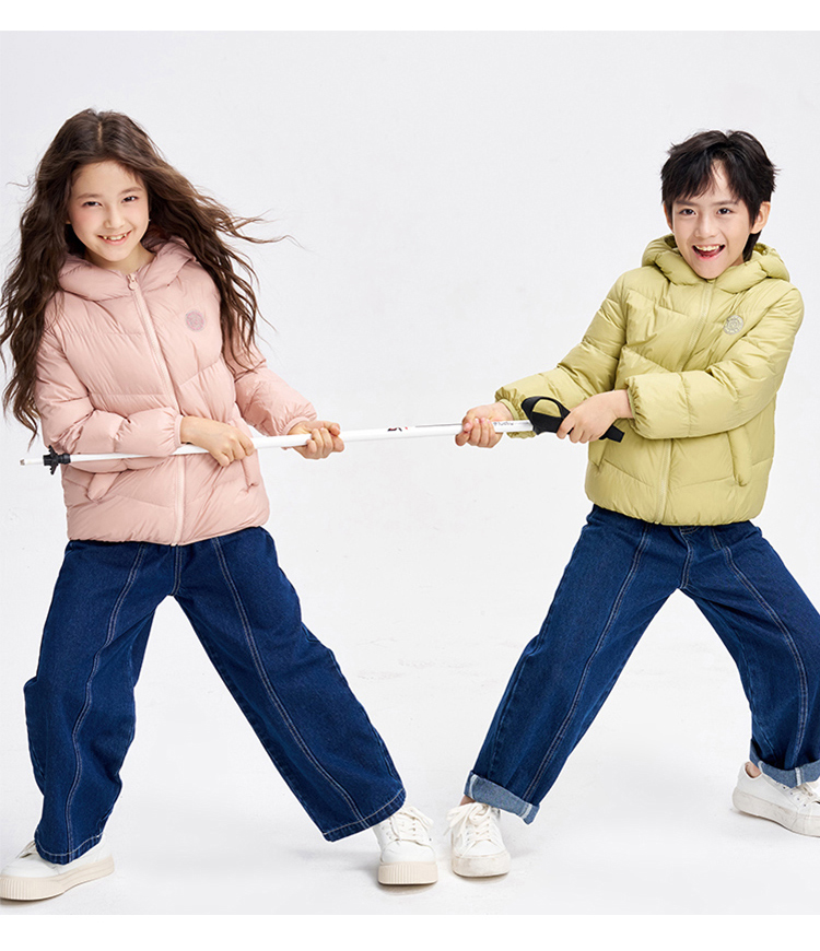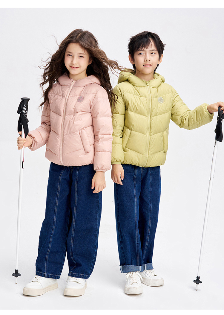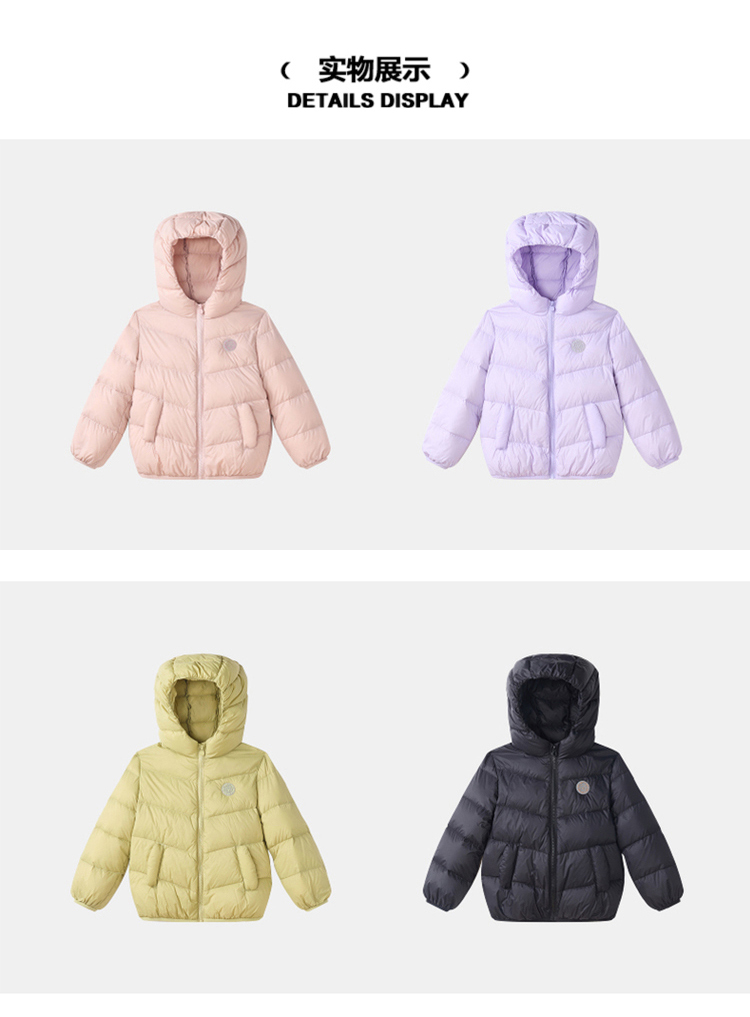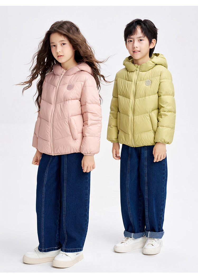 笛莎千与 2025冬季新款男女童连帽轻薄羽绒服