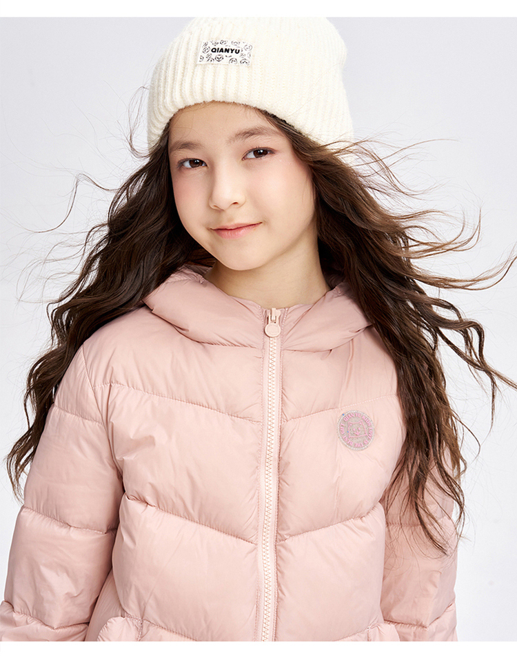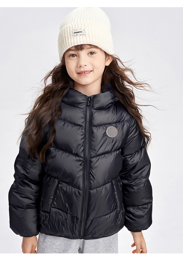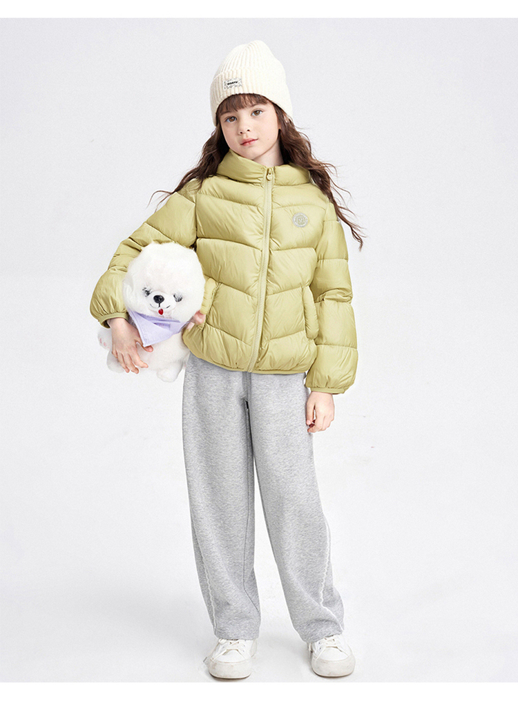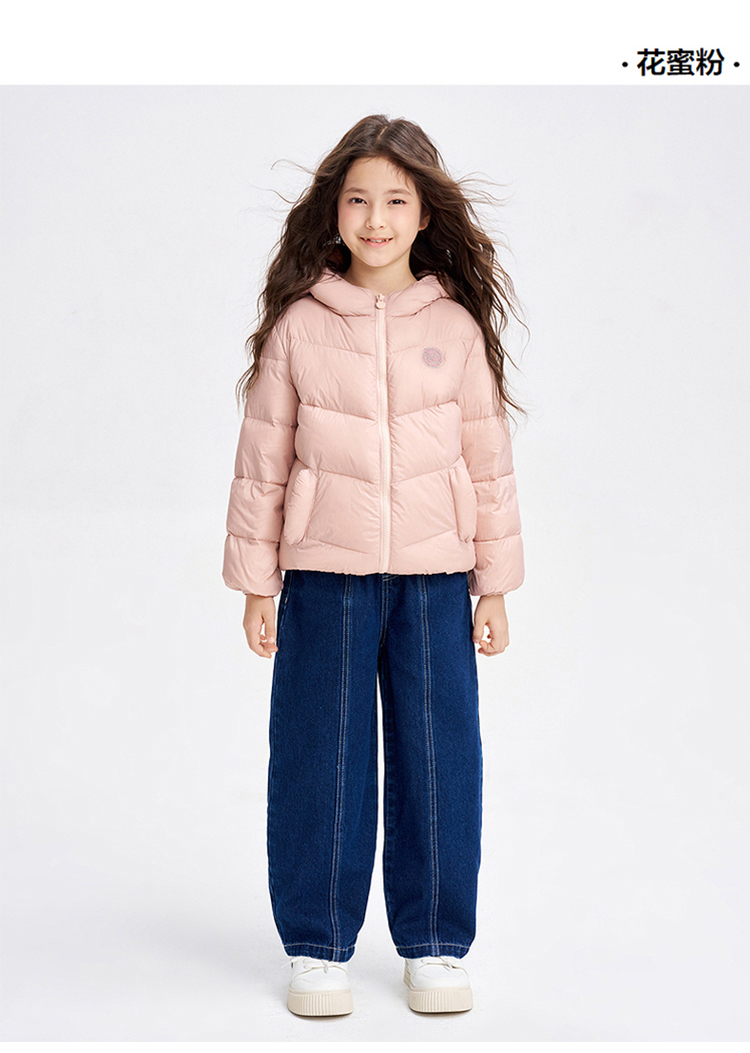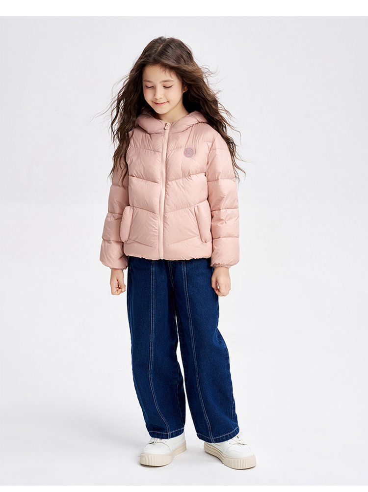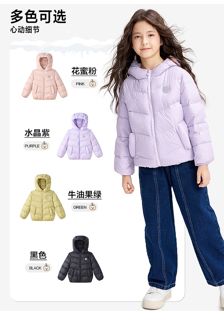 笛莎千与 2025冬季新款男女童连帽轻薄羽绒服