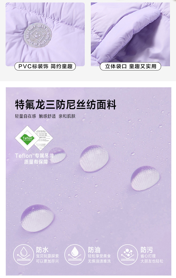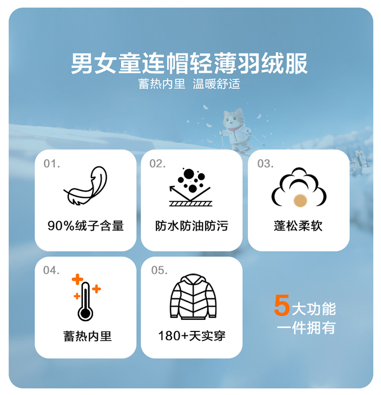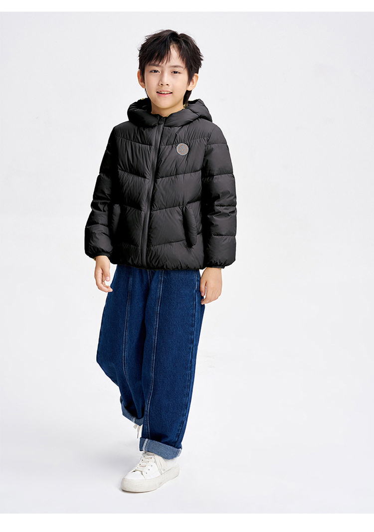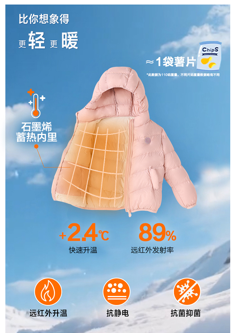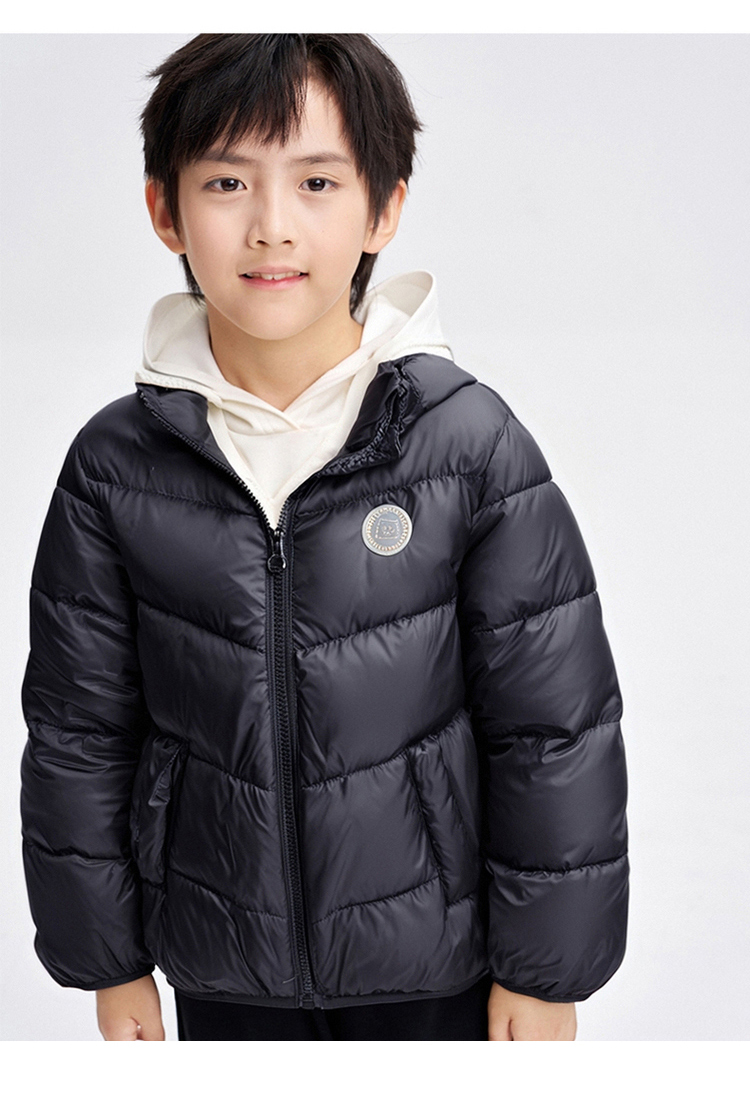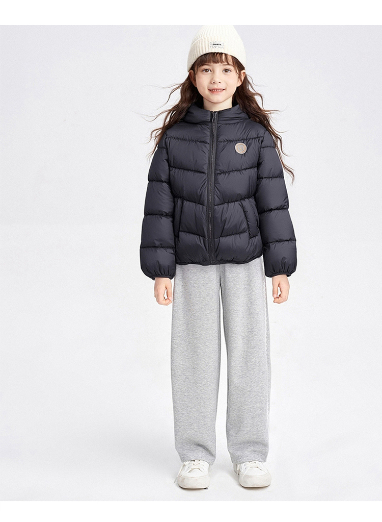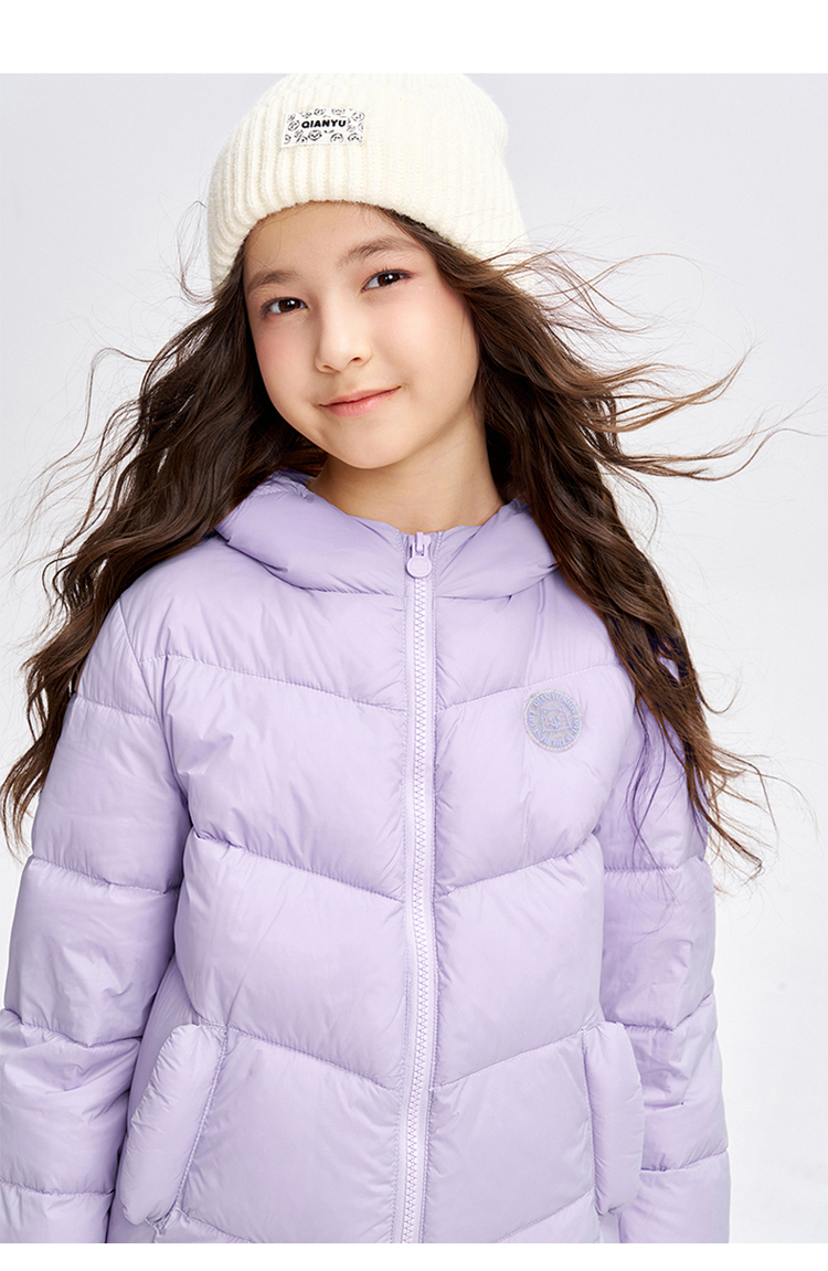 笛莎千与 2025冬季新款男女童连帽轻薄羽绒服
