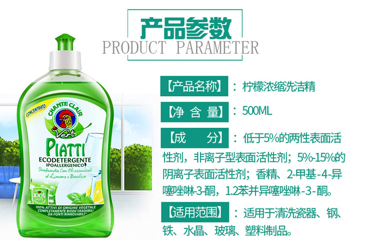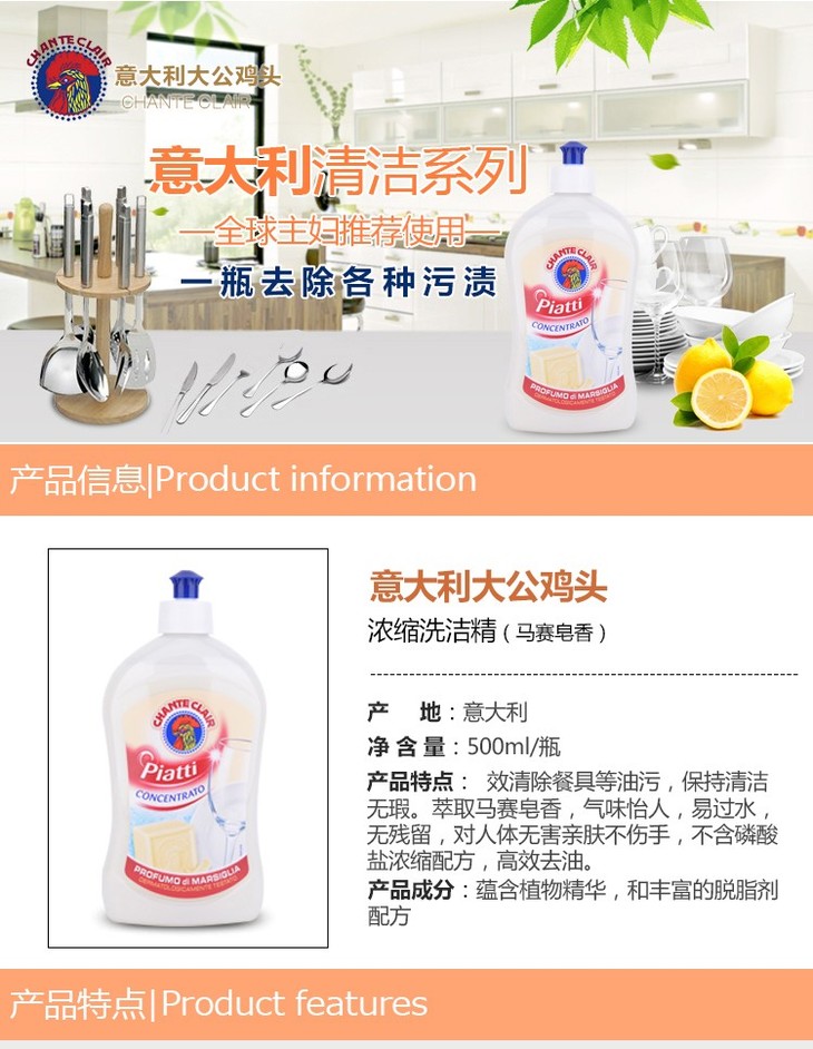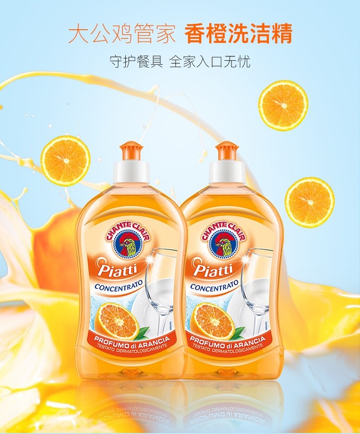 【一般贸易】大公鸡管家 浓缩洗洁精(马赛味/香橙味/柠檬味/石榴味)500ml*2瓶/4瓶