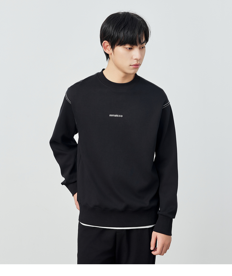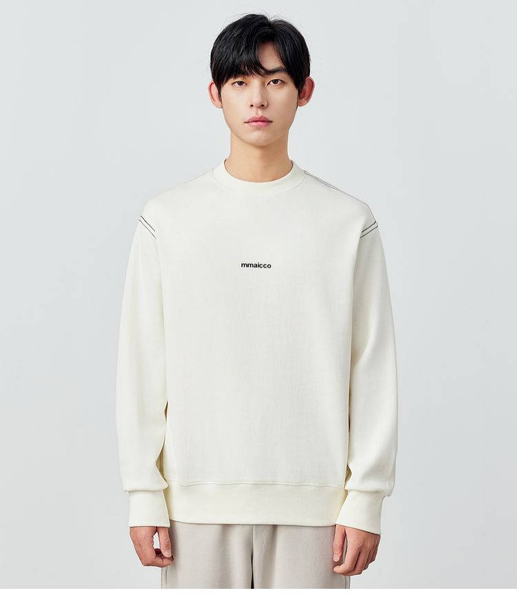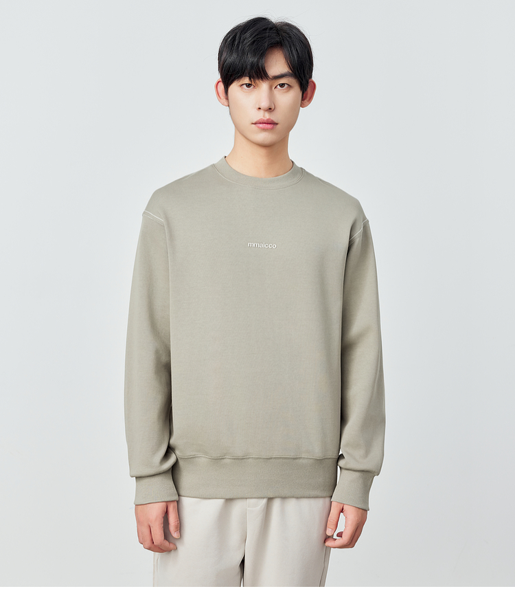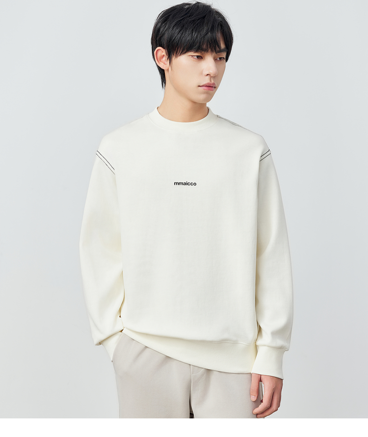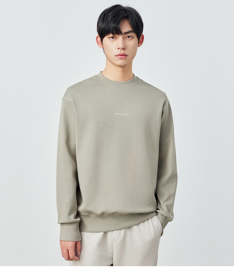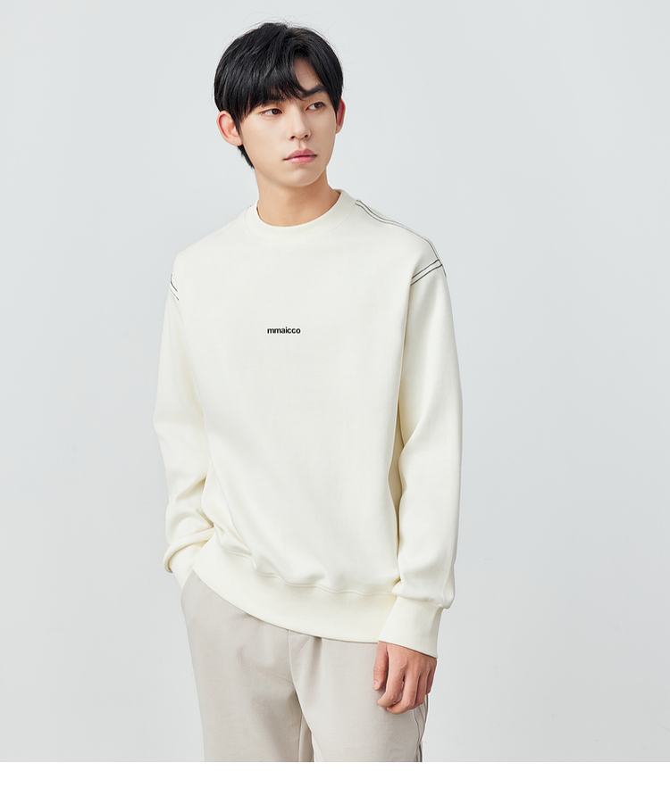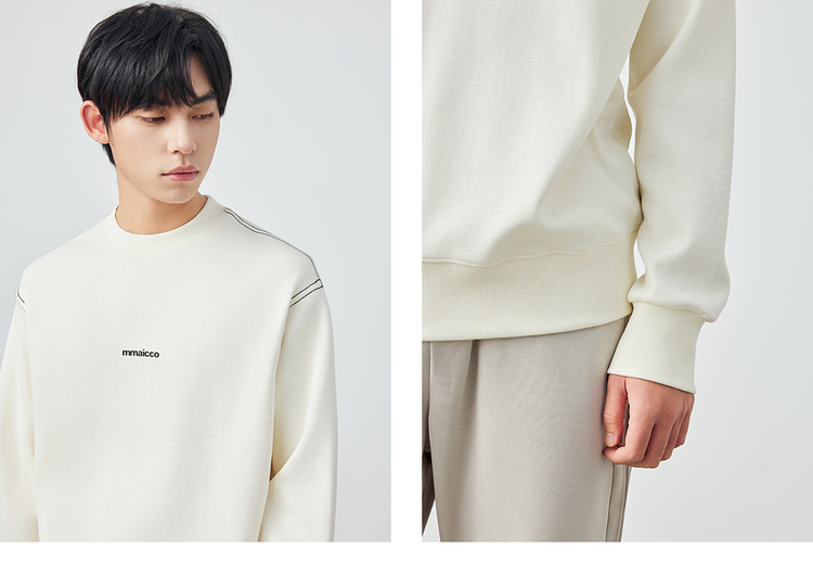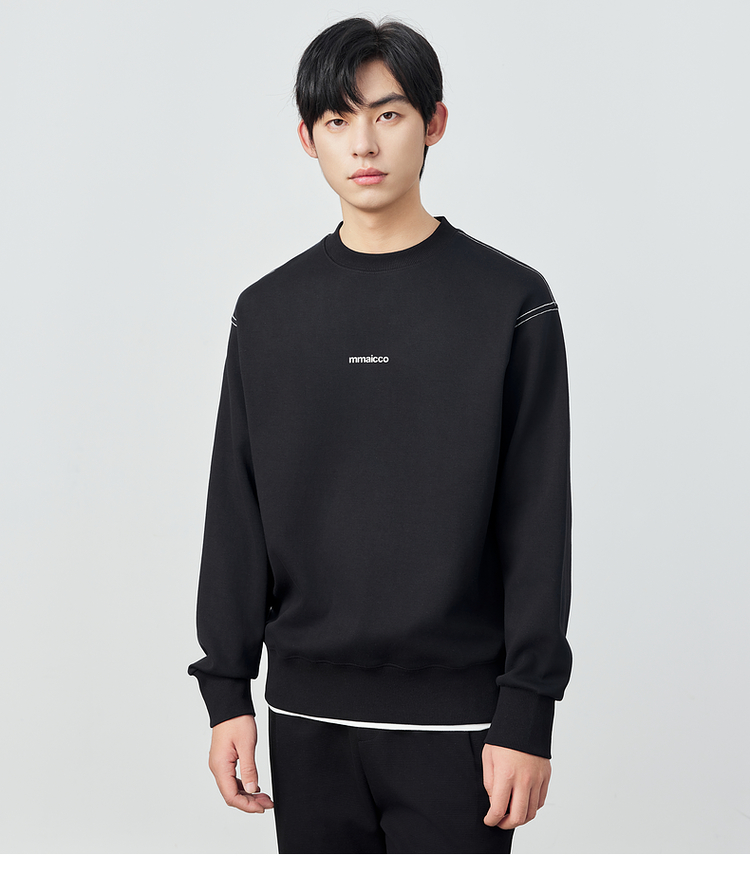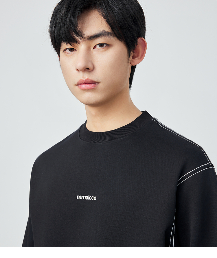 墨麦客男装重磅双面纹圆领卫衣春季新款立体胶印宽松上衣男55497