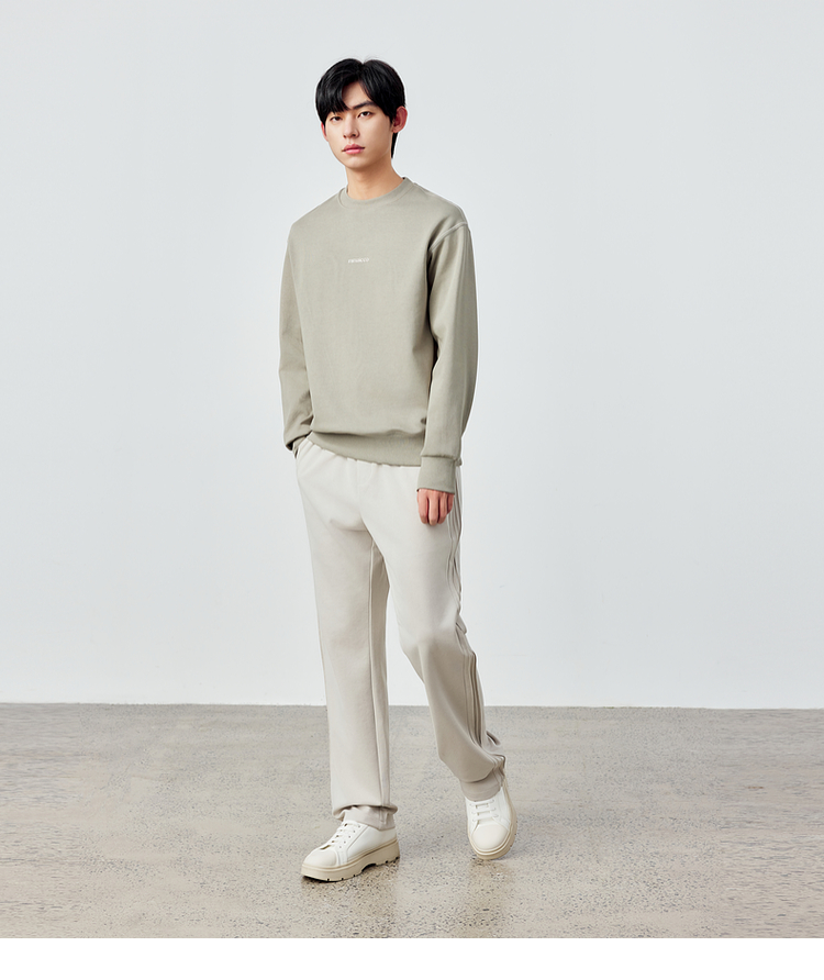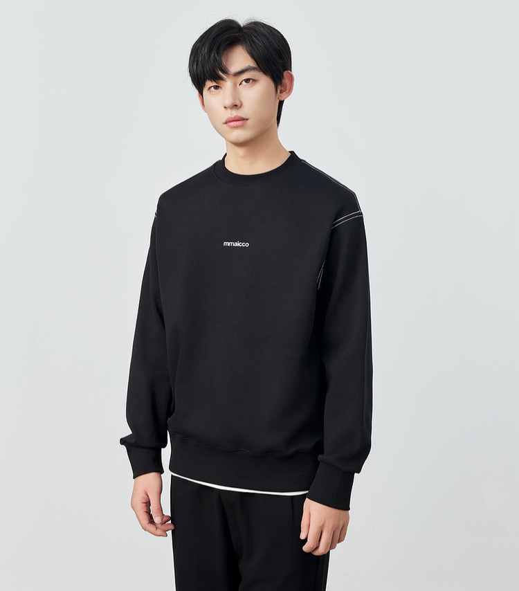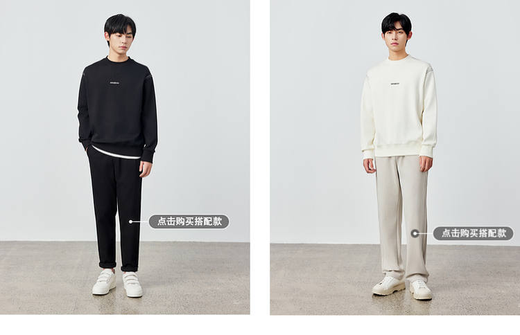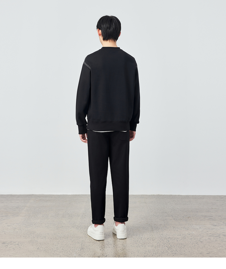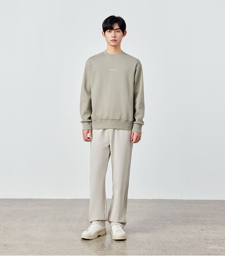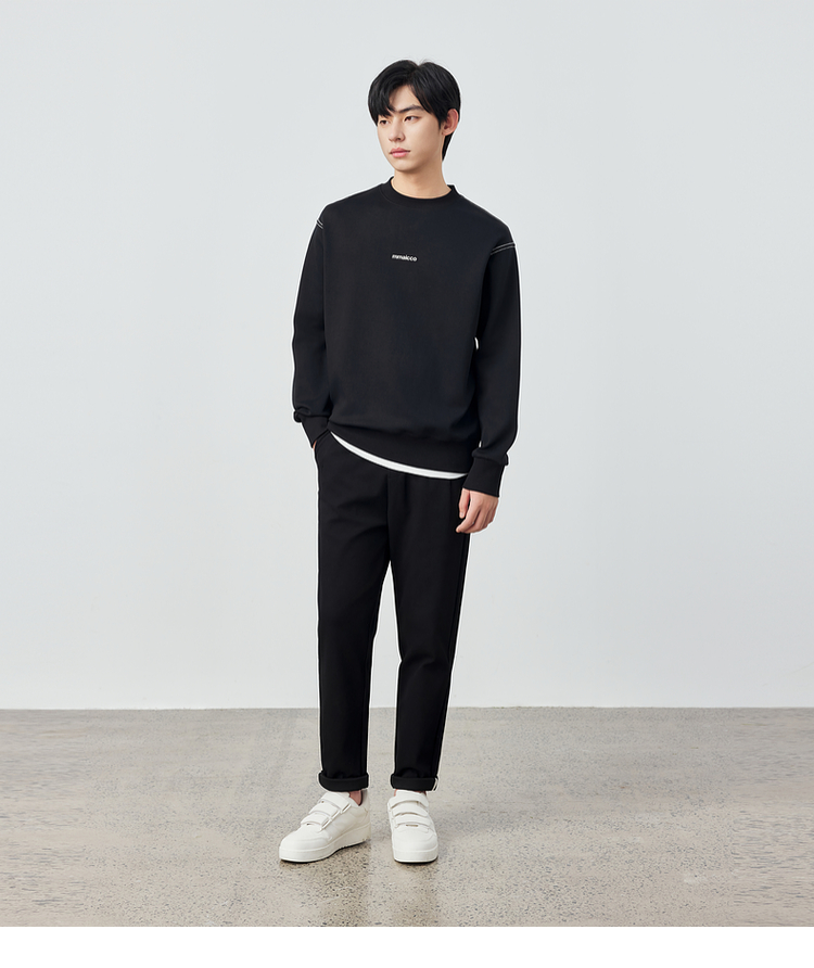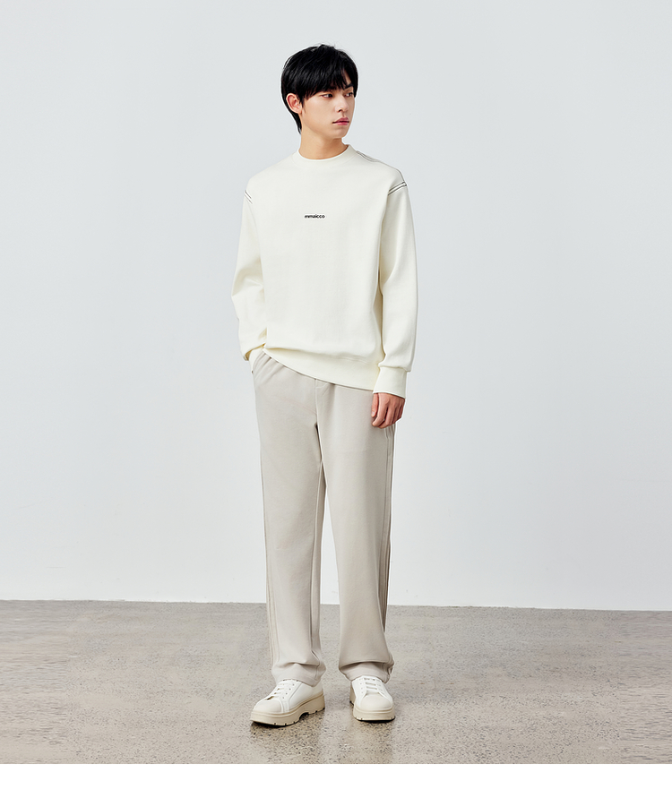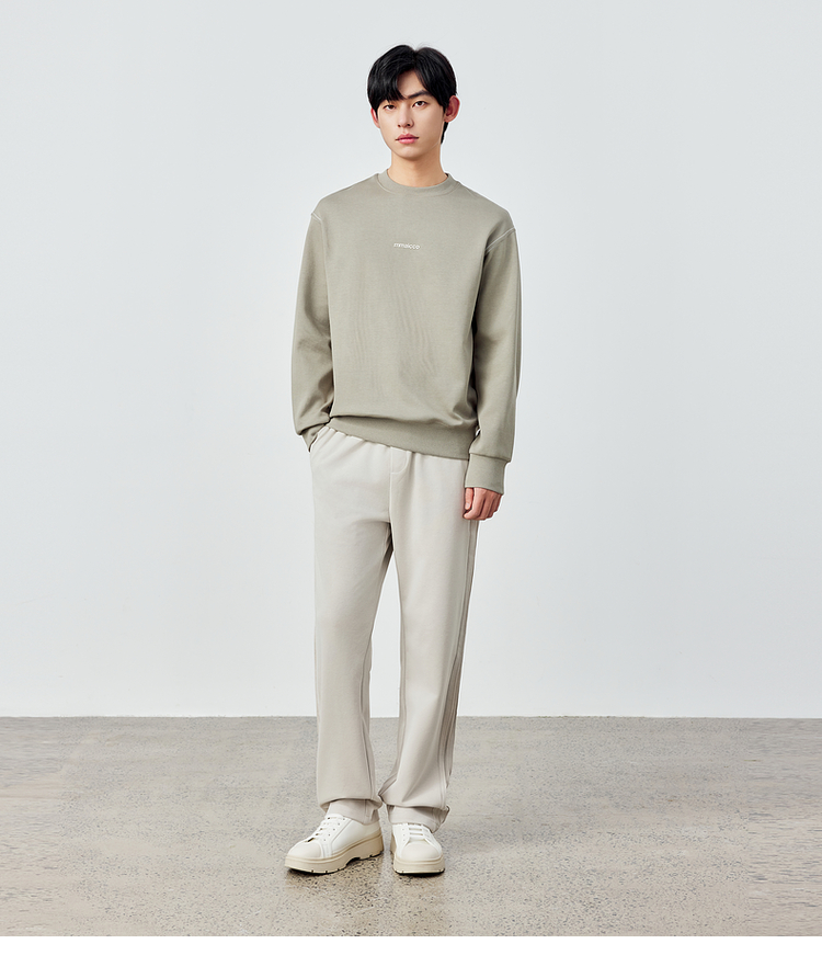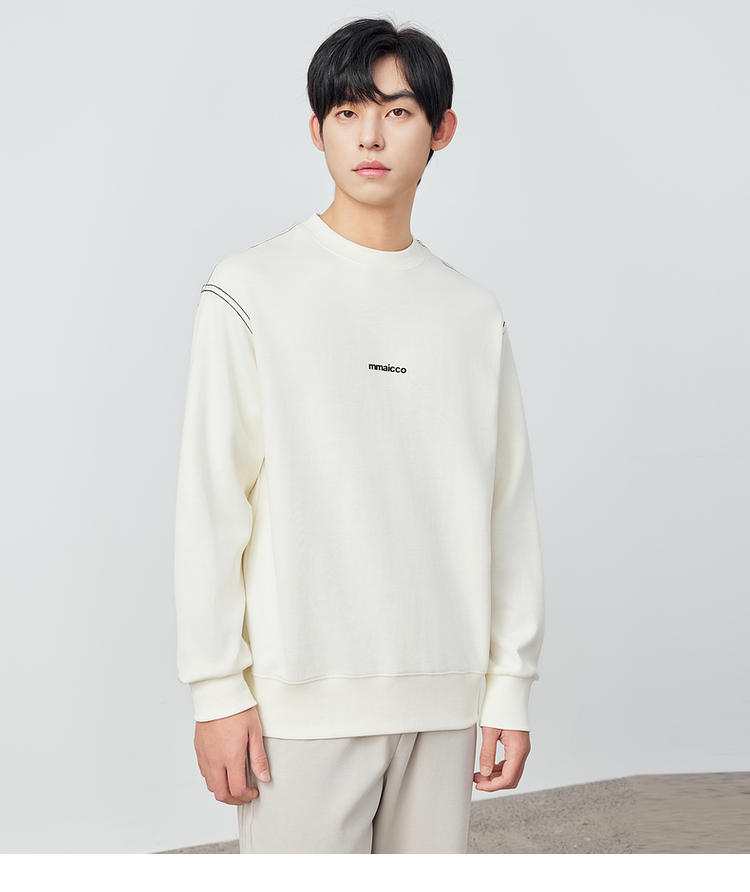 墨麦客男装重磅双面纹圆领卫衣春季新款立体胶印宽松上衣男55497