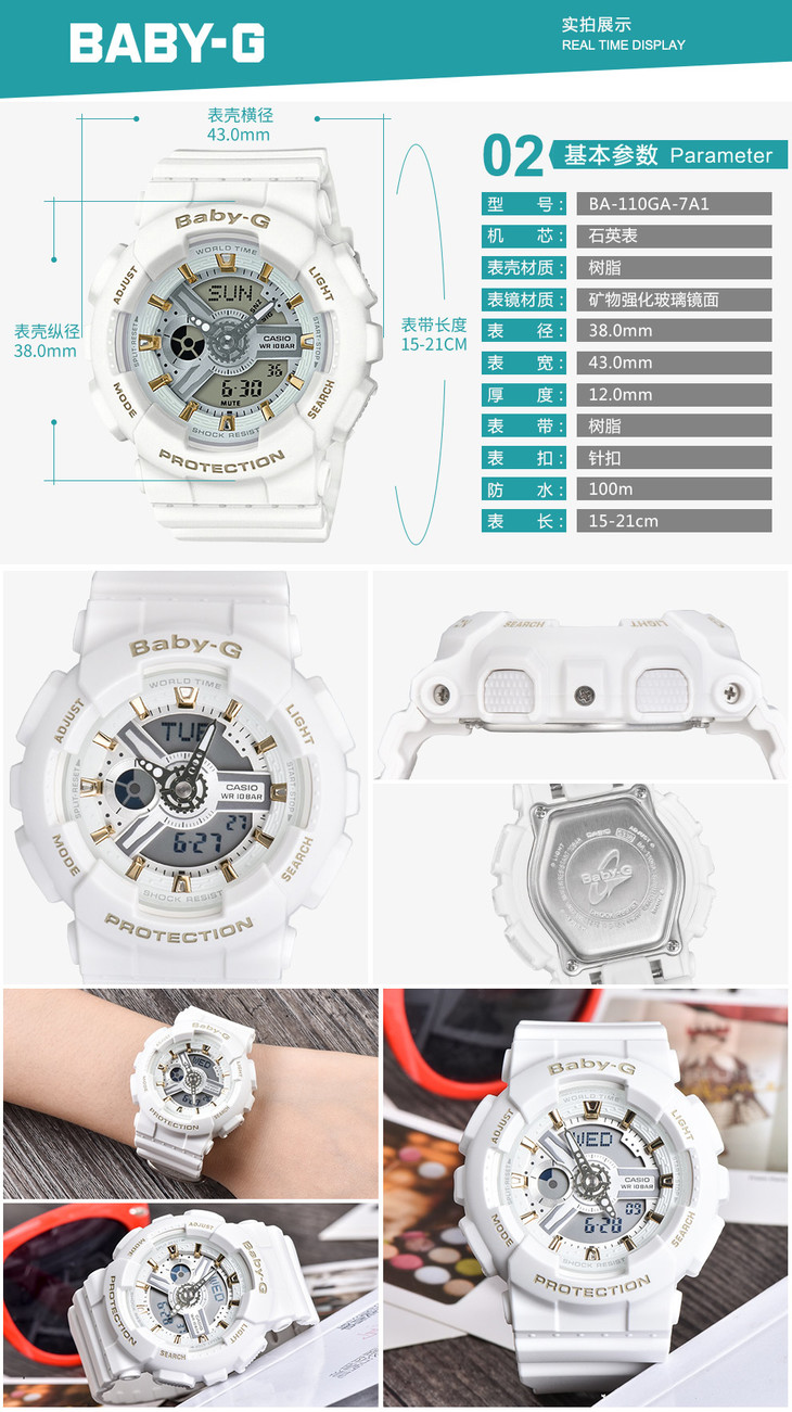卡西欧(CASIO)手表 BABY-G系列马卡龙潮流夜跑防水防震运动女表 BA-110GA-7A1