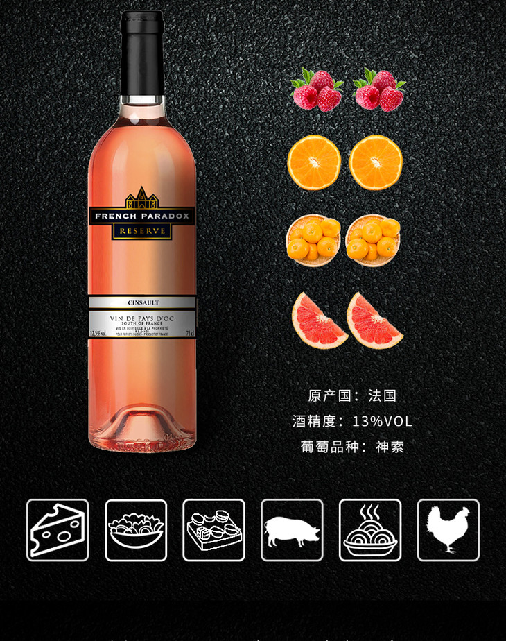 整箱特惠装 法国原瓶进口葡萄酒 茗酊古堡-桃红葡萄酒 French Paradox Rose 750ml*6