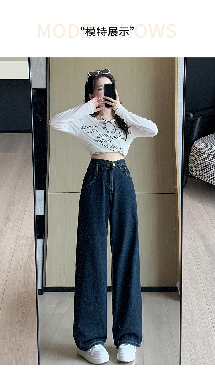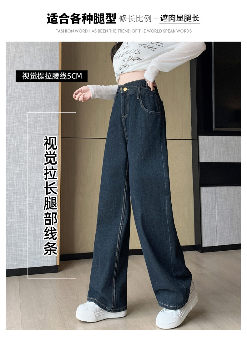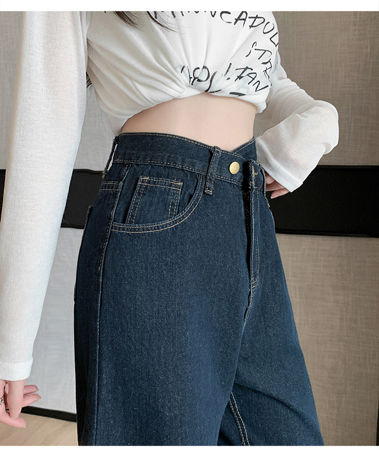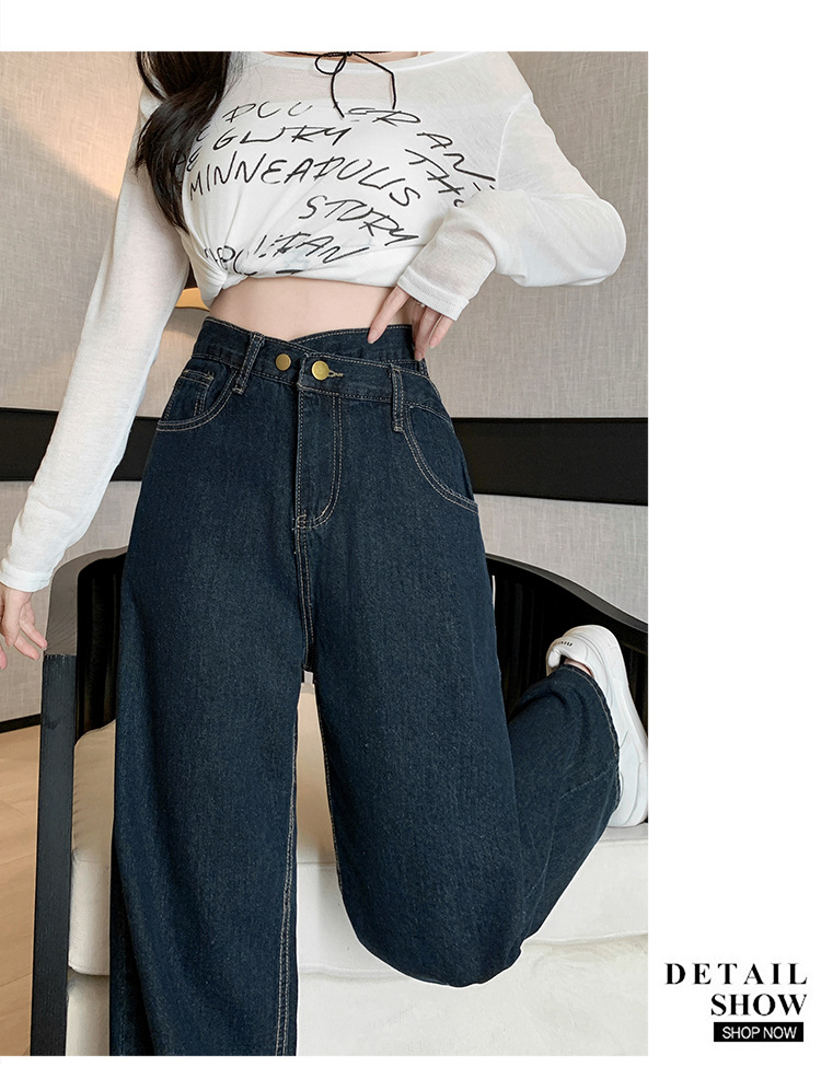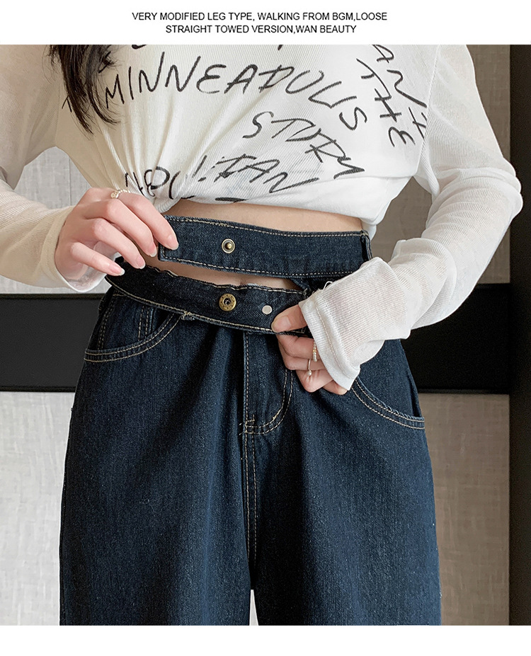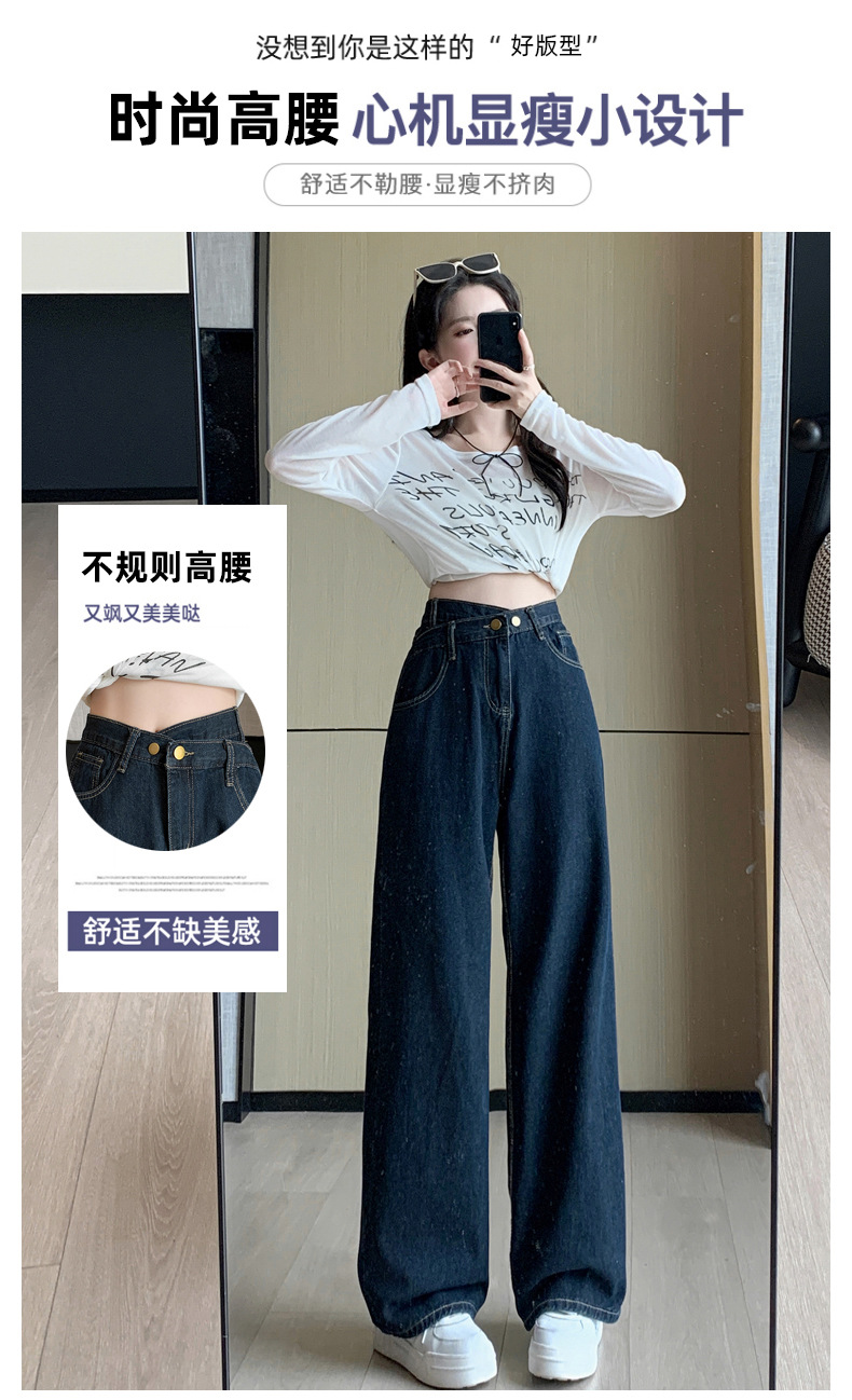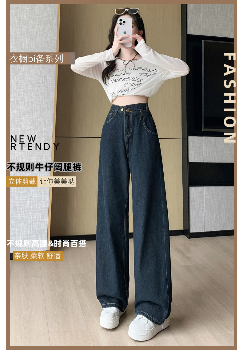 春季新款2025韩版大码胖妹妹宽松不规则高腰显瘦阔腿牛仔裤女